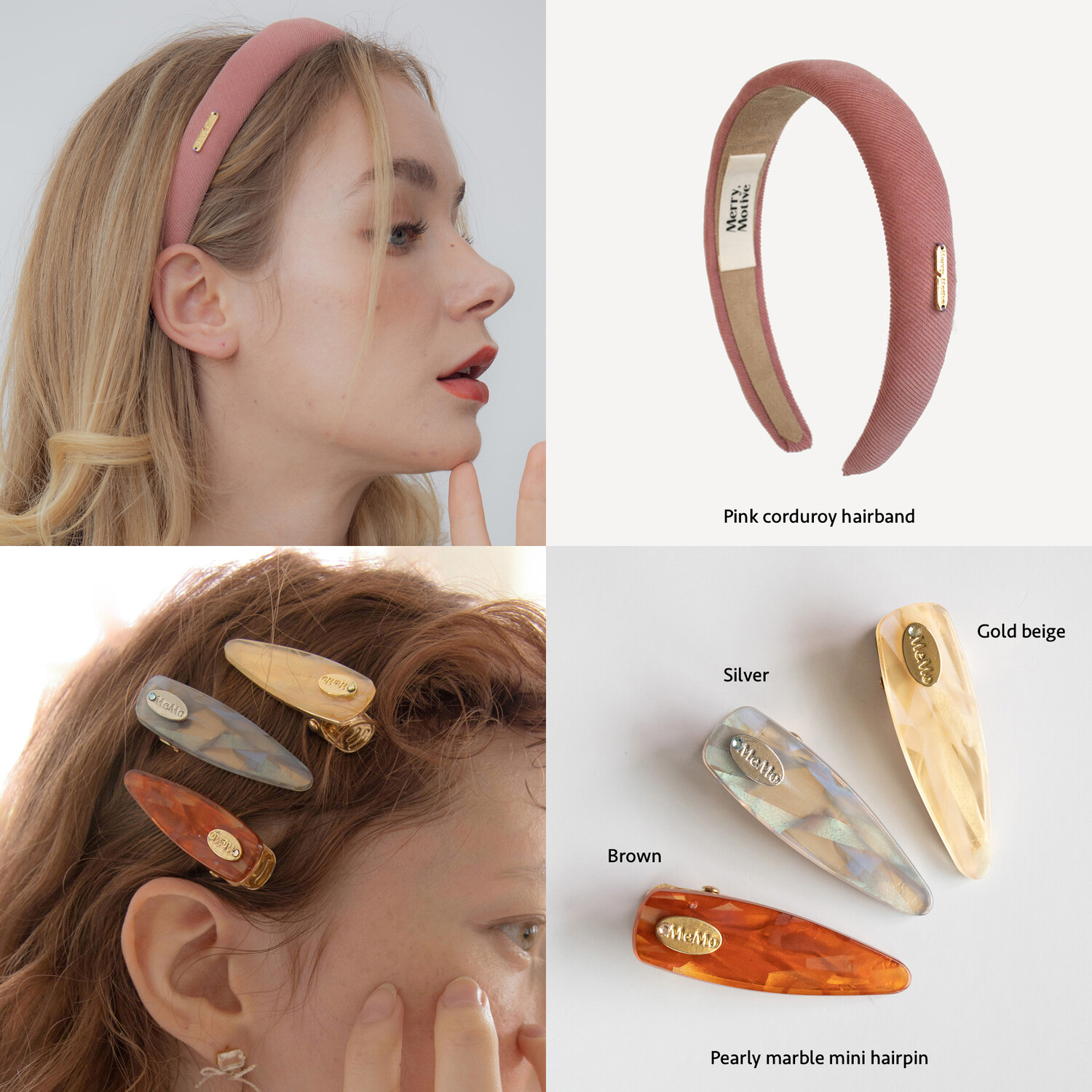 [Pink corduroy hairband + Pearly marble mini hairpin(1color)]
