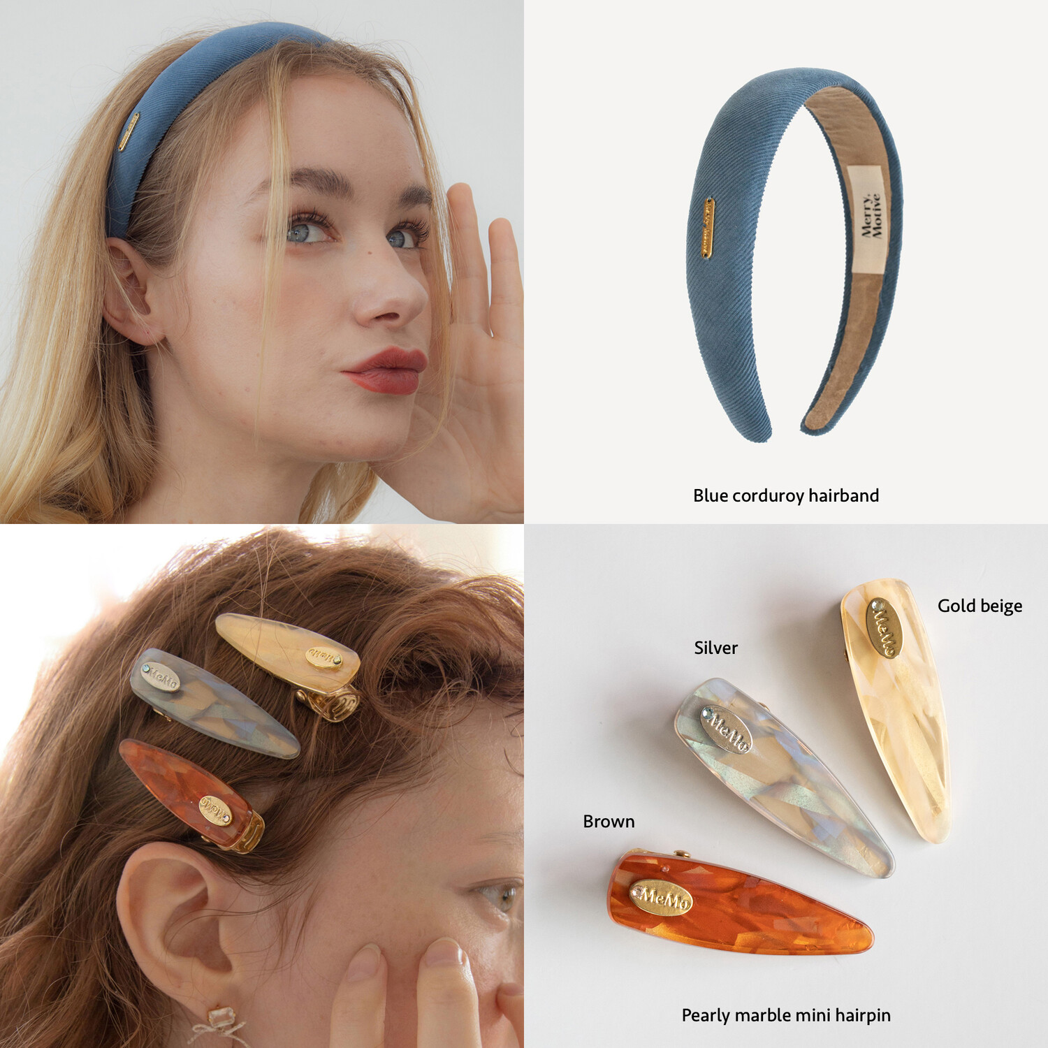 [Blue corduroy hairband + Pearly marble mini hairpin(1color)]
