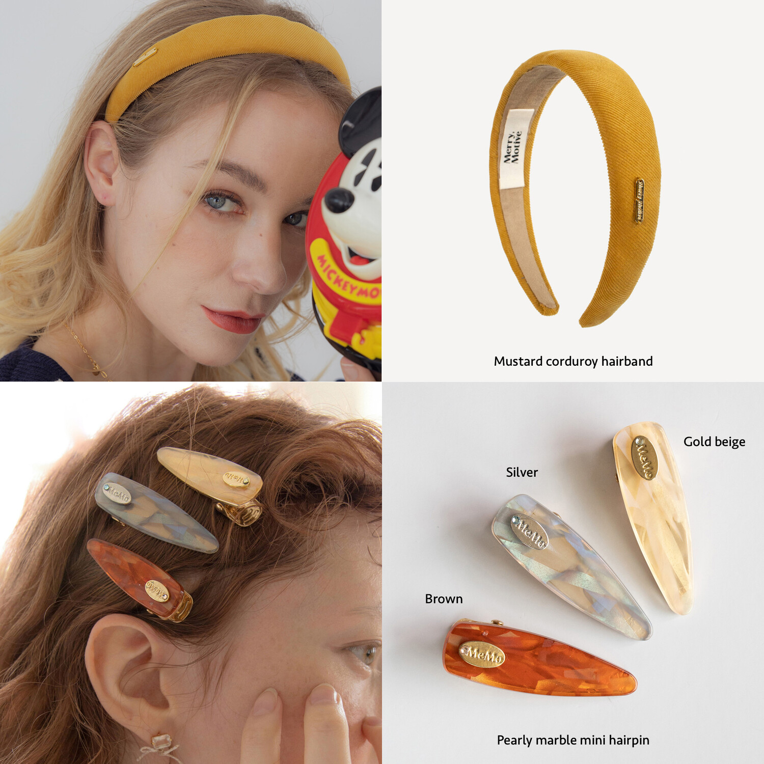 [Mustard corduroy hairband + Pearly marble mini hairpin(1color)]