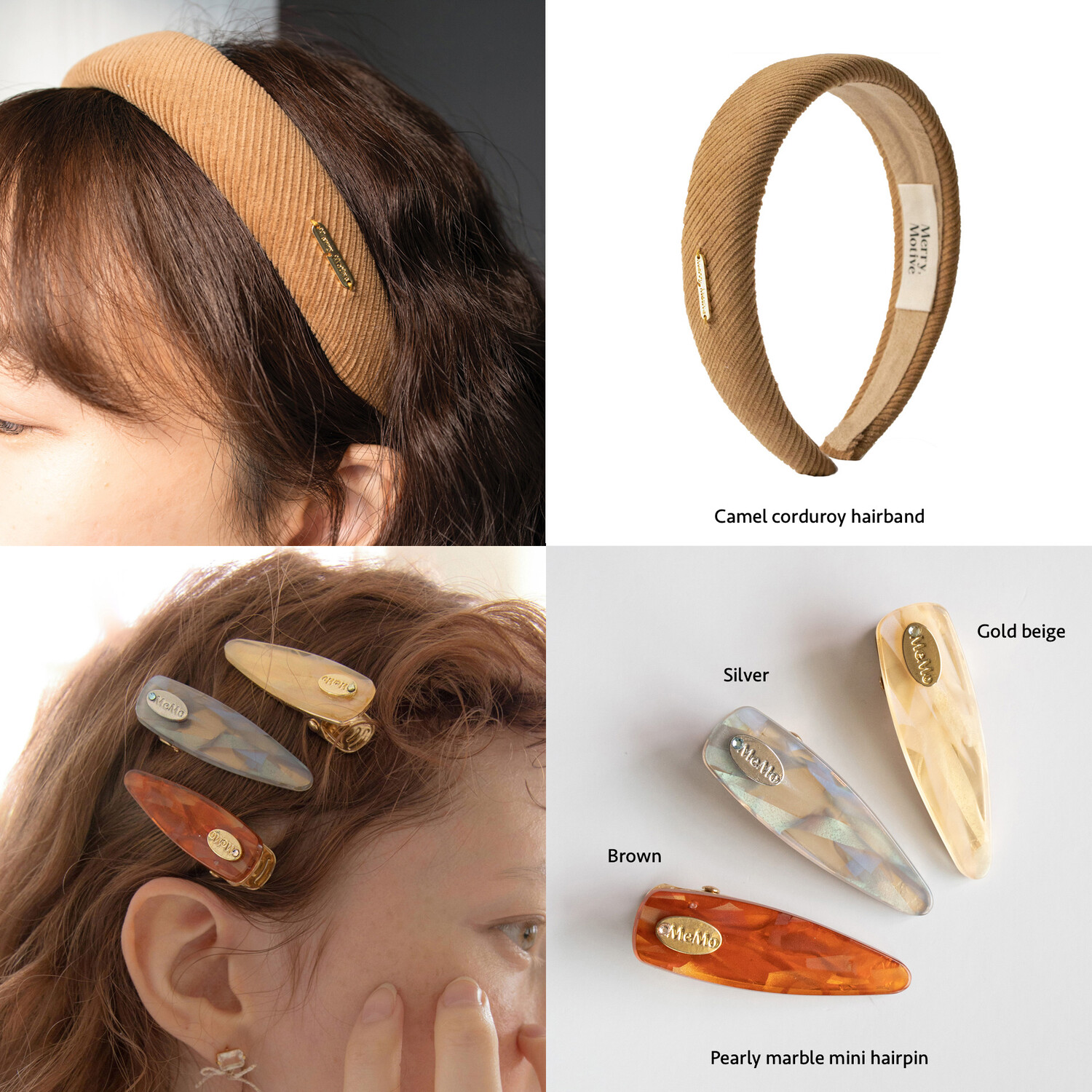 [Camel corduroy hairband + Pearly marble mini hairpin(1color)]