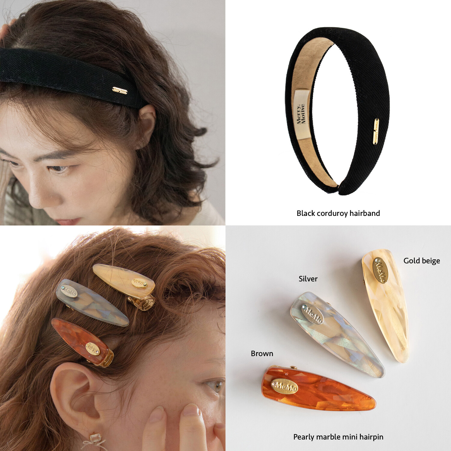 [Black corduroy hairband + Pearly marble mini hairpin(1color)]