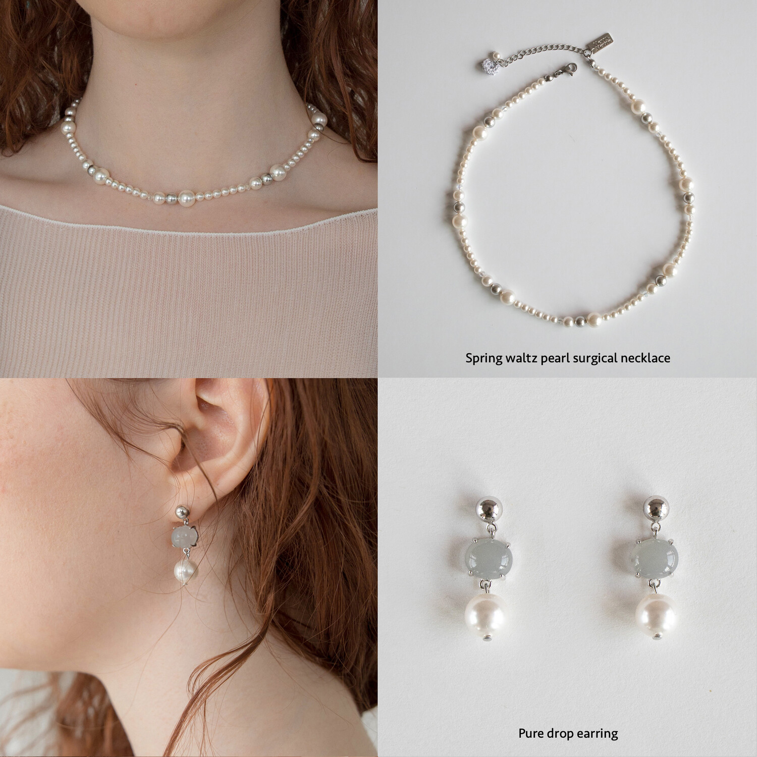 [Spring waltz pearl surgical necklace + Pure drop earring]