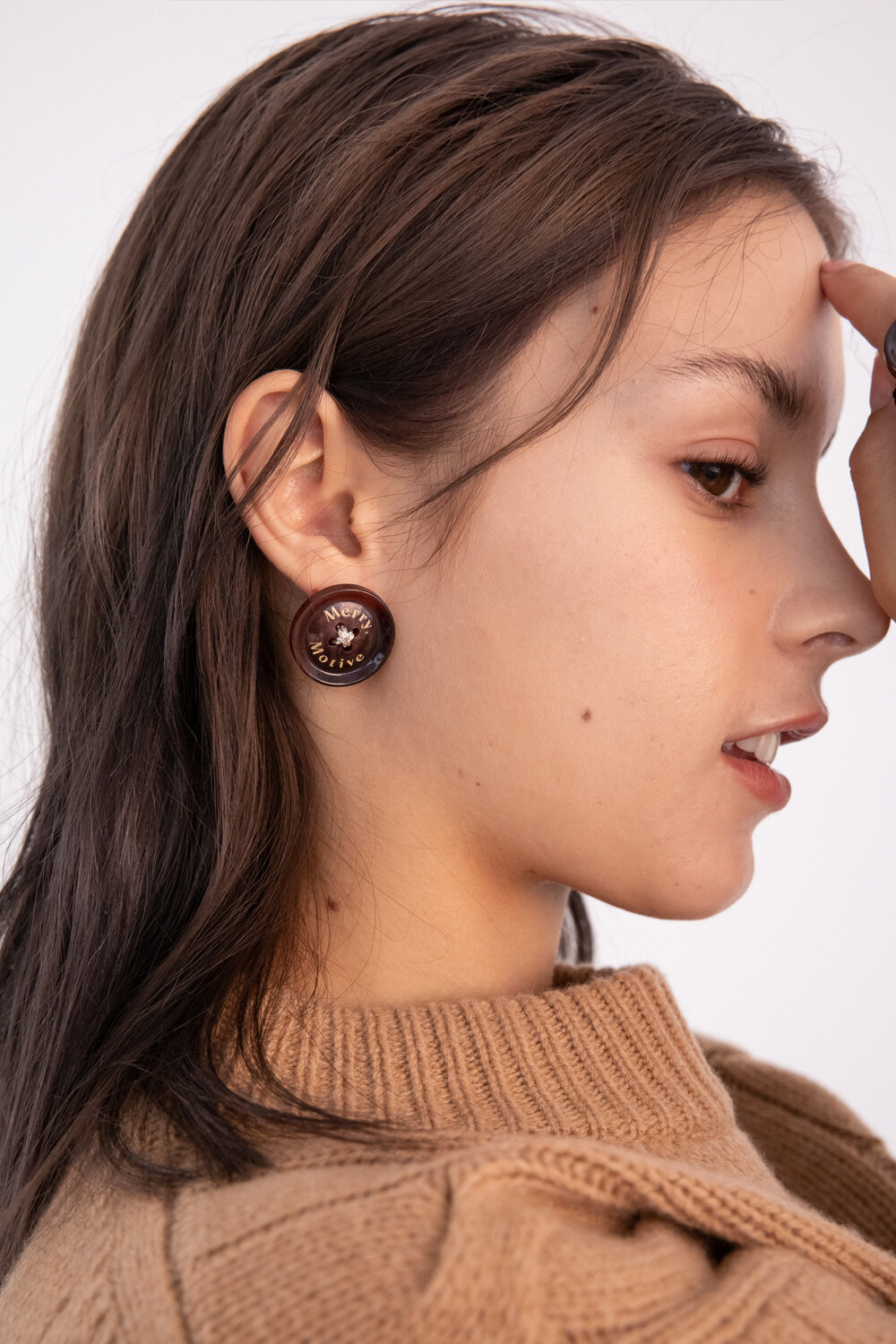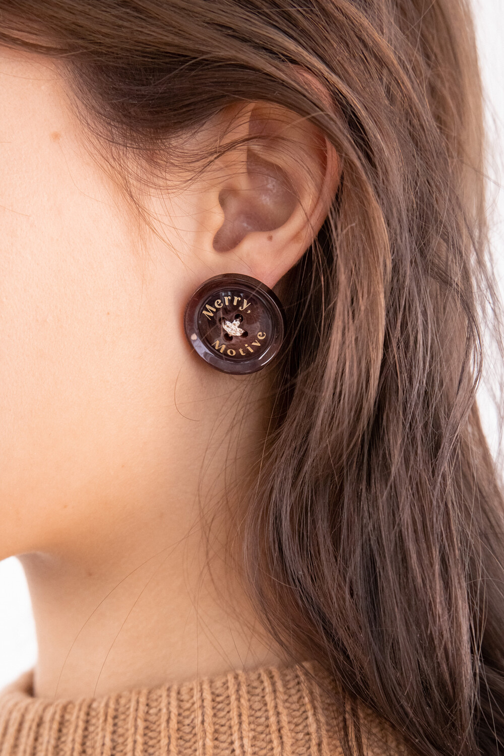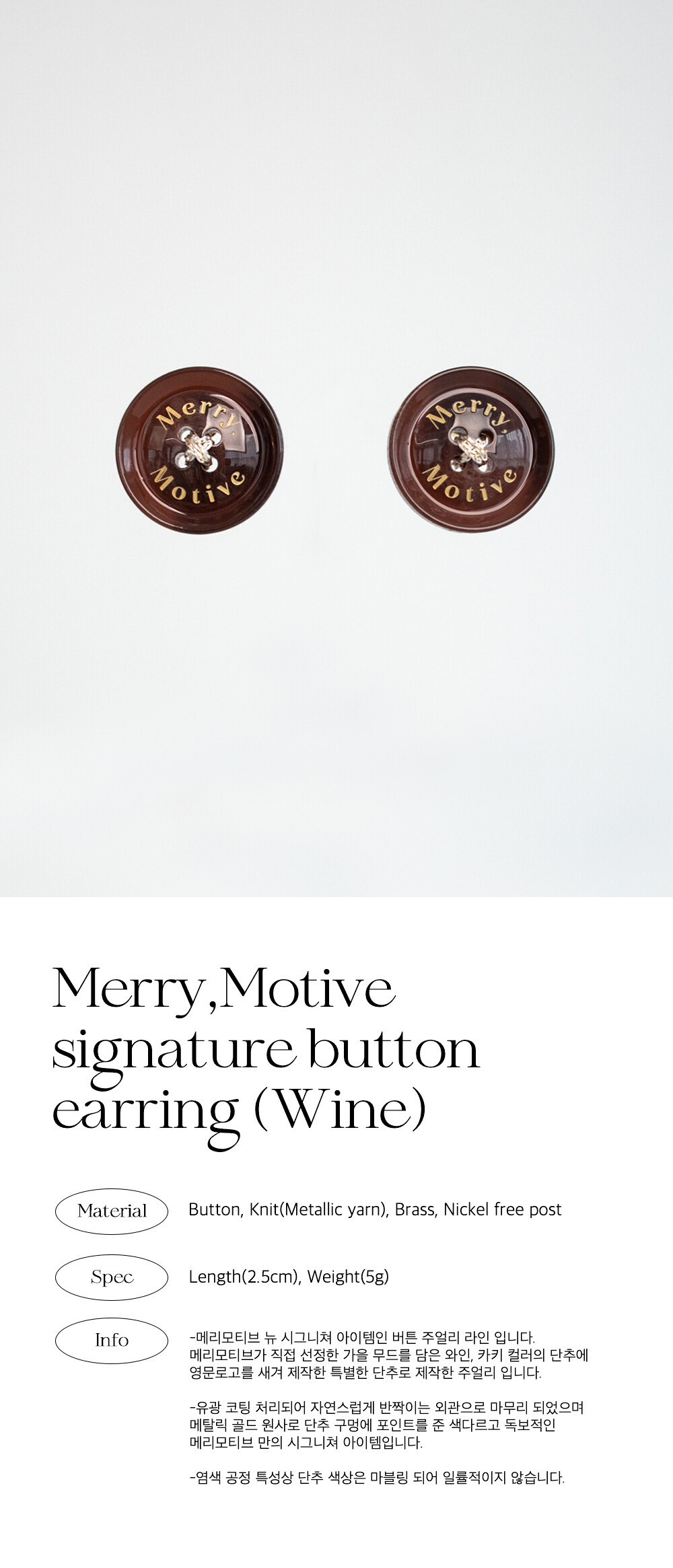 Merry,Motive signature button earring (Wine)