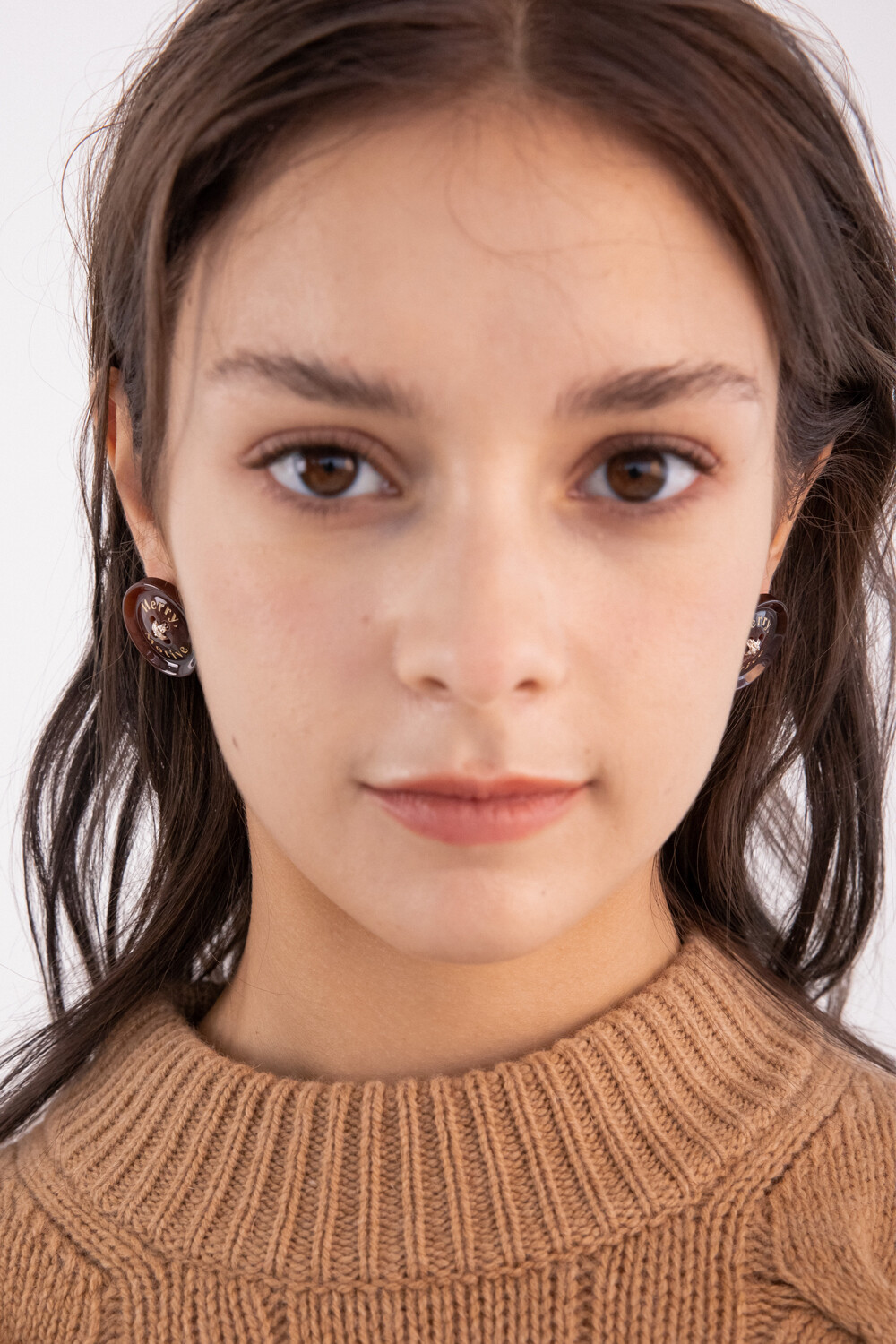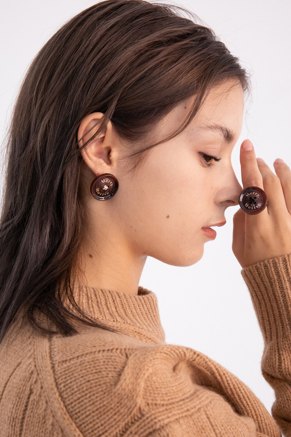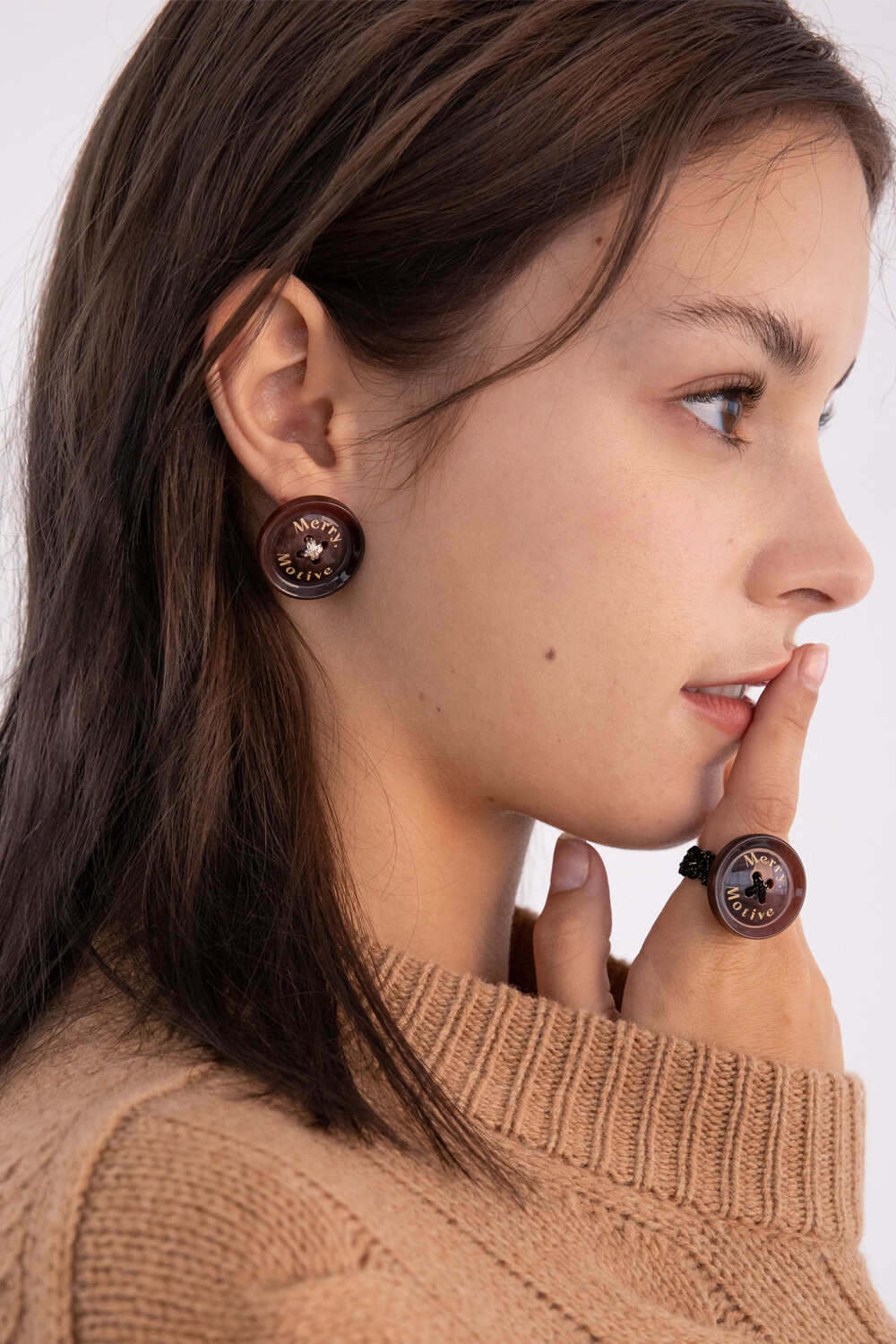 Merry,Motive signature button earring (Wine)