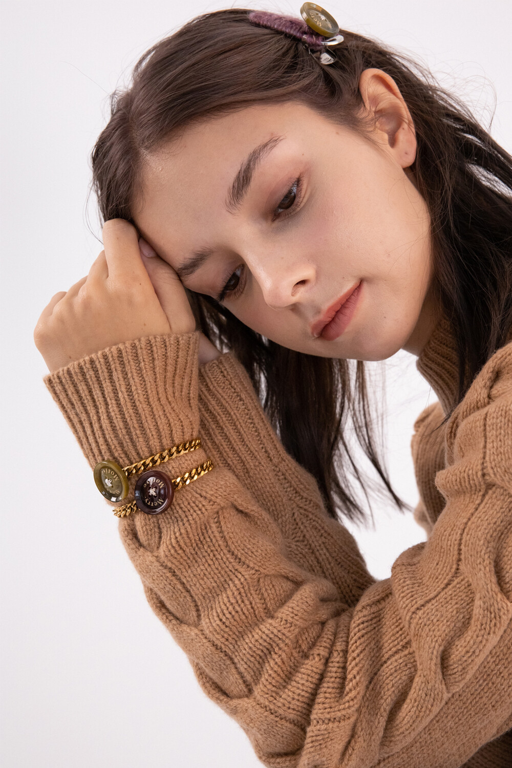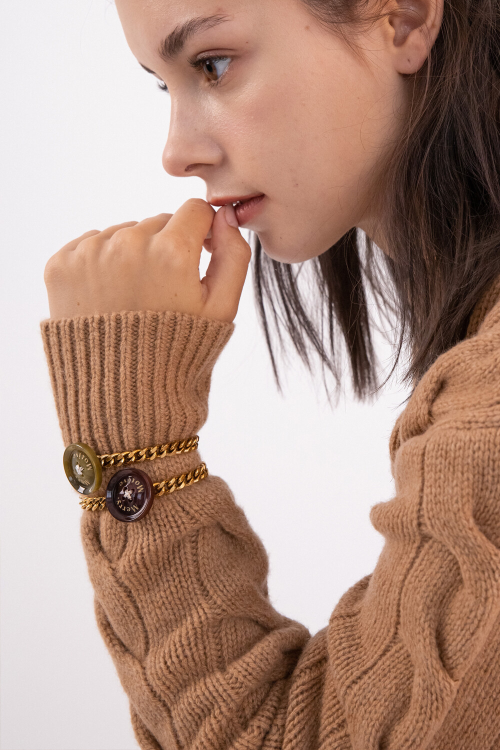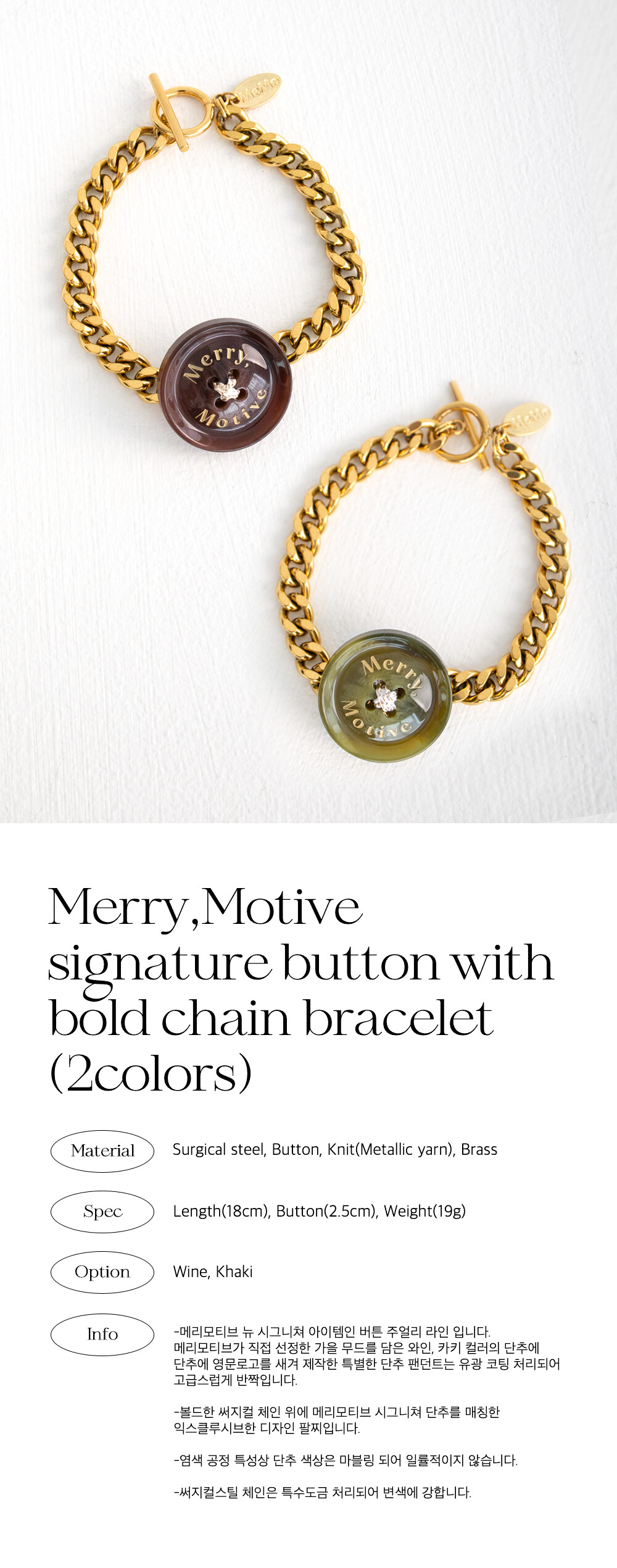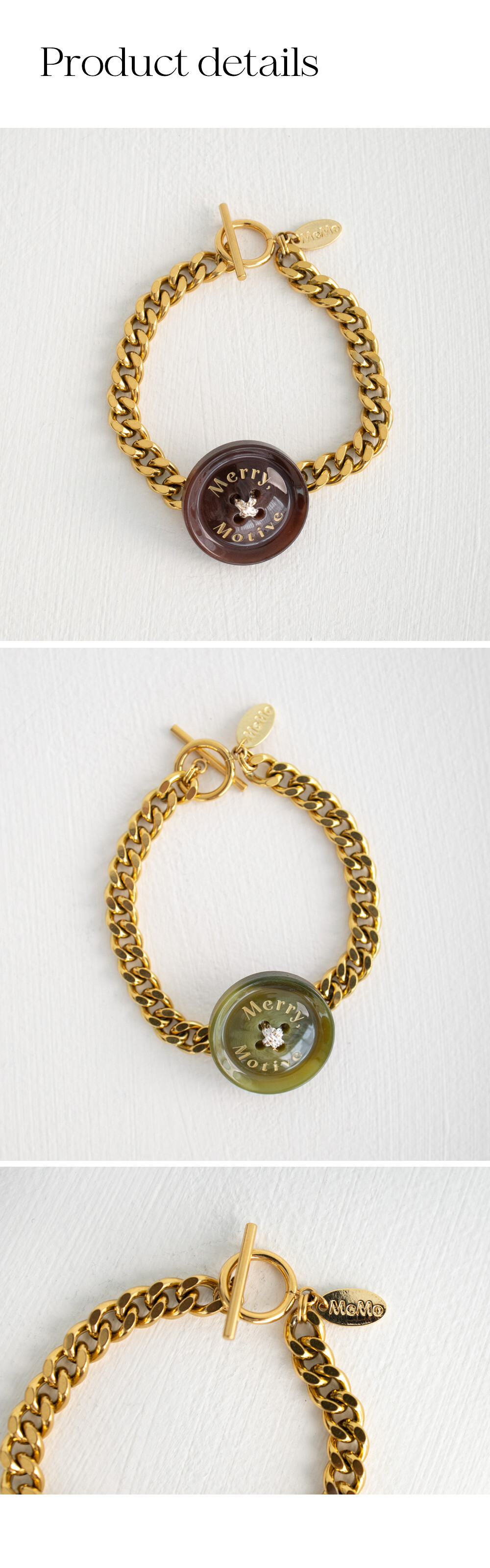 Merry,Motive signature button with bold chain bracelet (2colors)