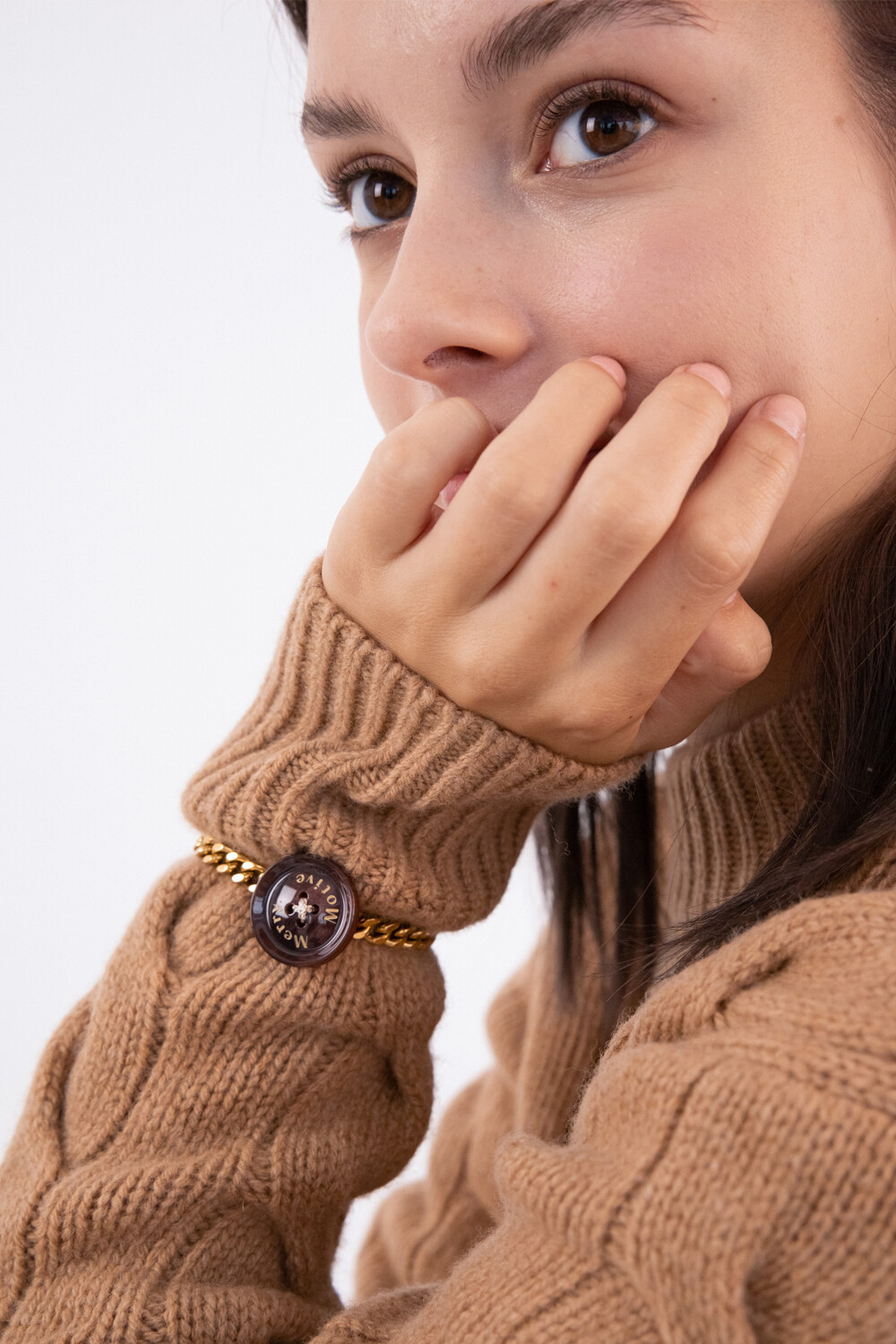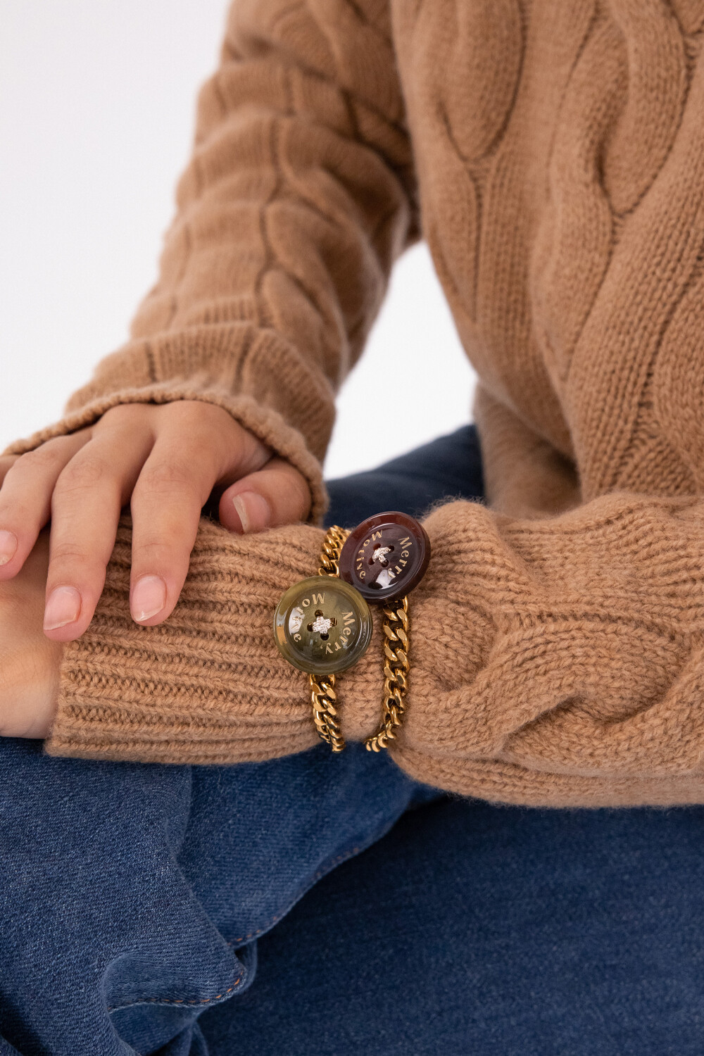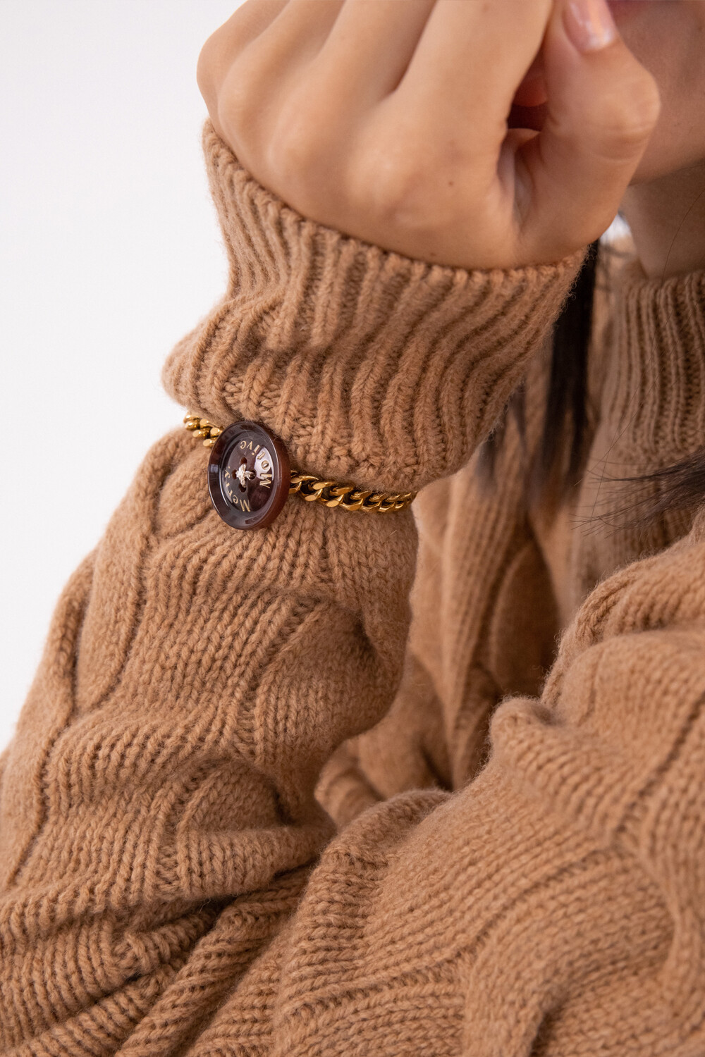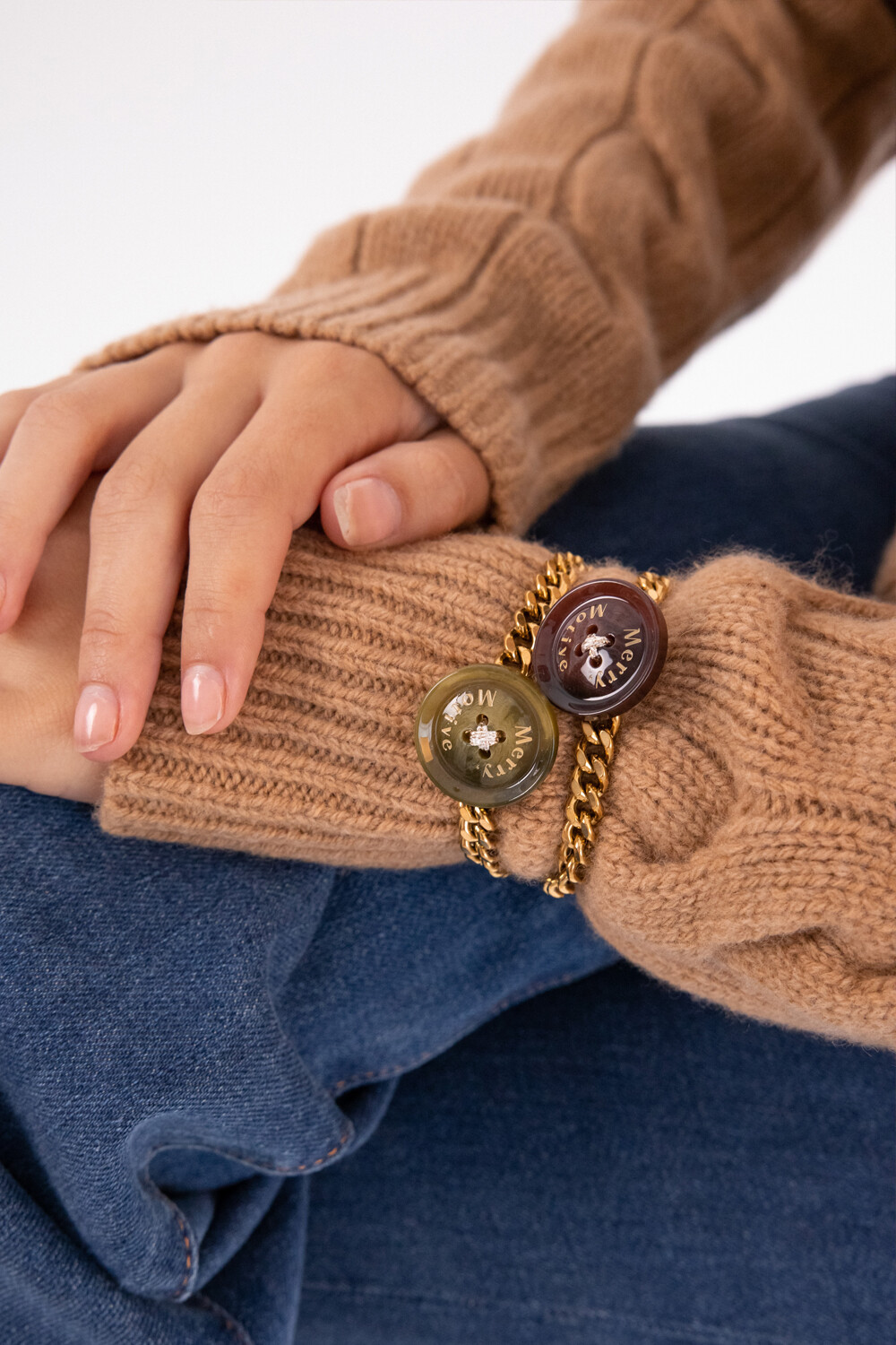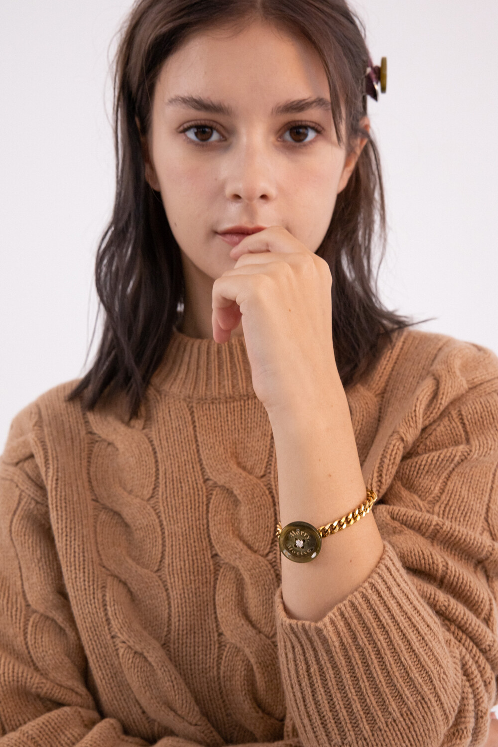 Merry,Motive signature button with bold chain bracelet (2colors)