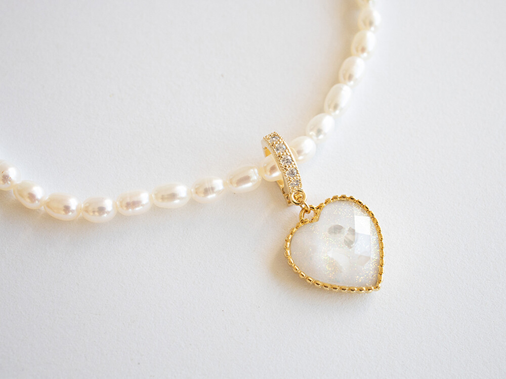 Pearly heart pendant (White)