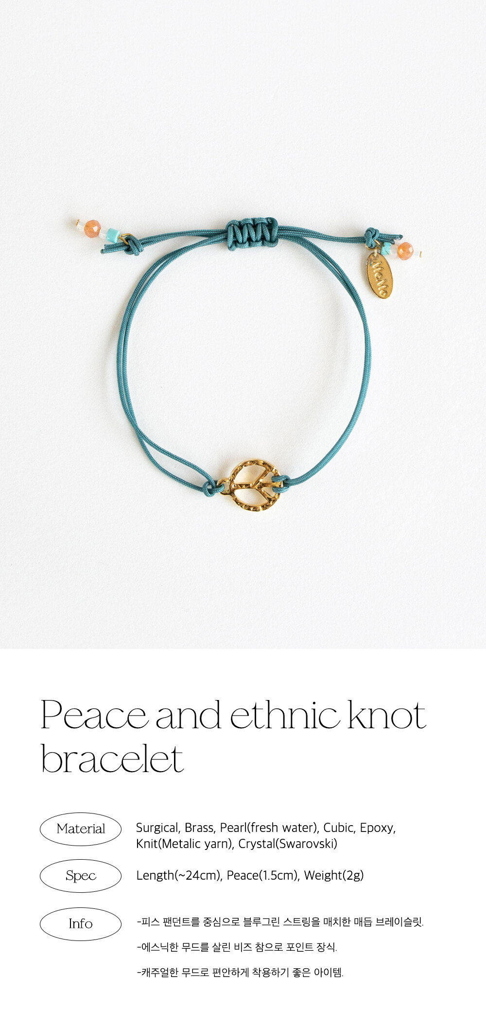 Peace and ethnic knot bracelet