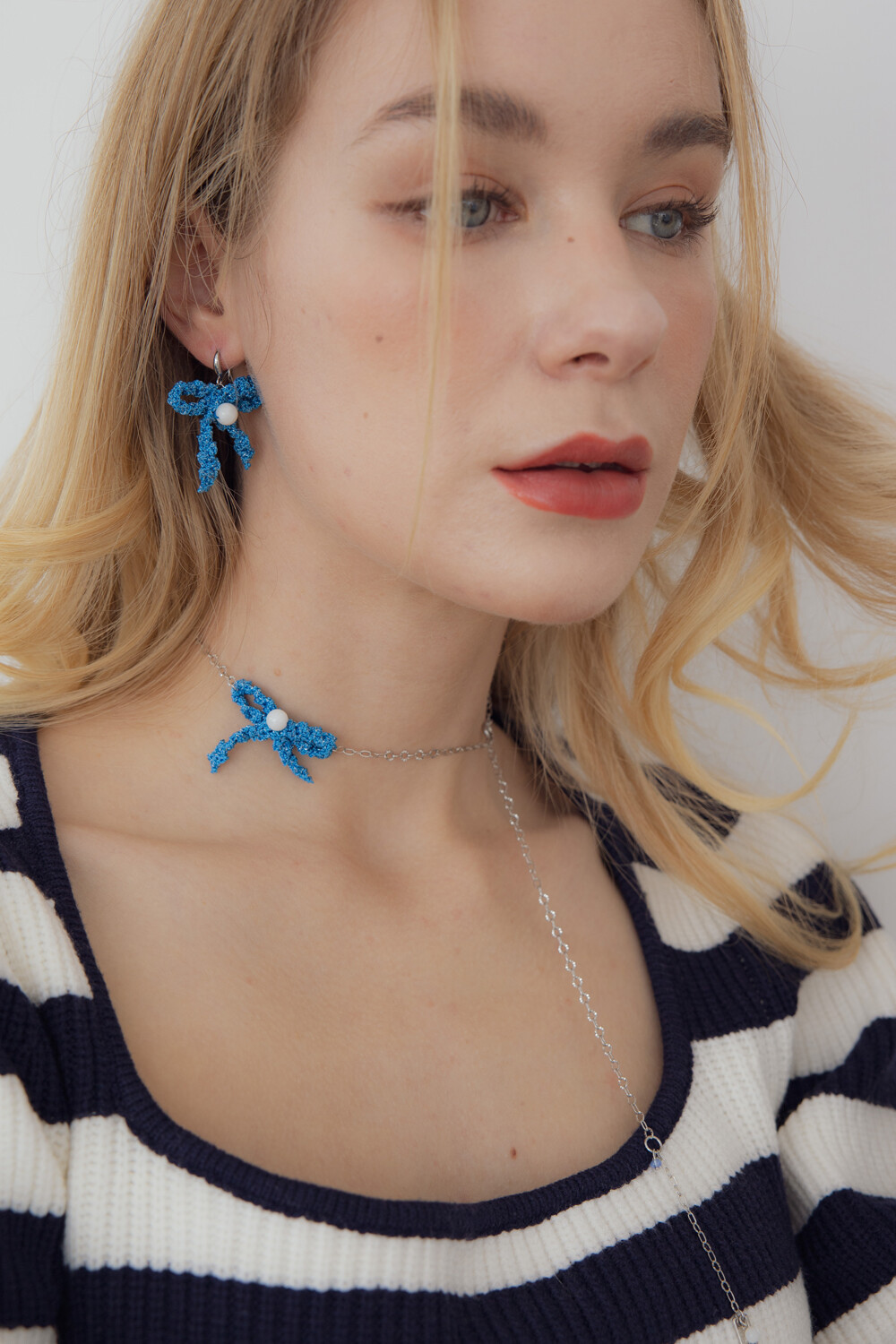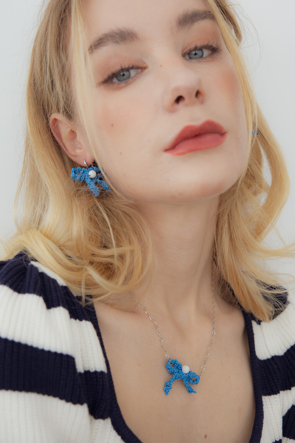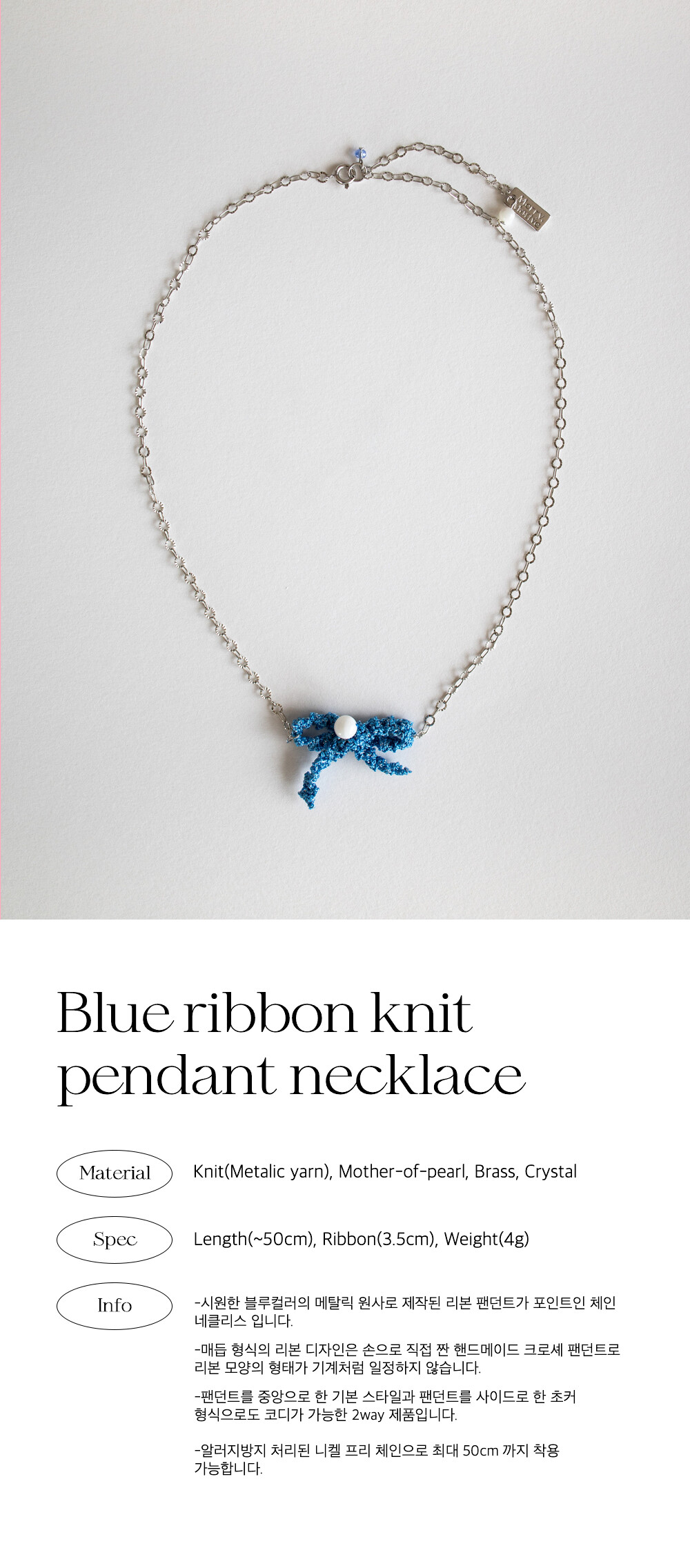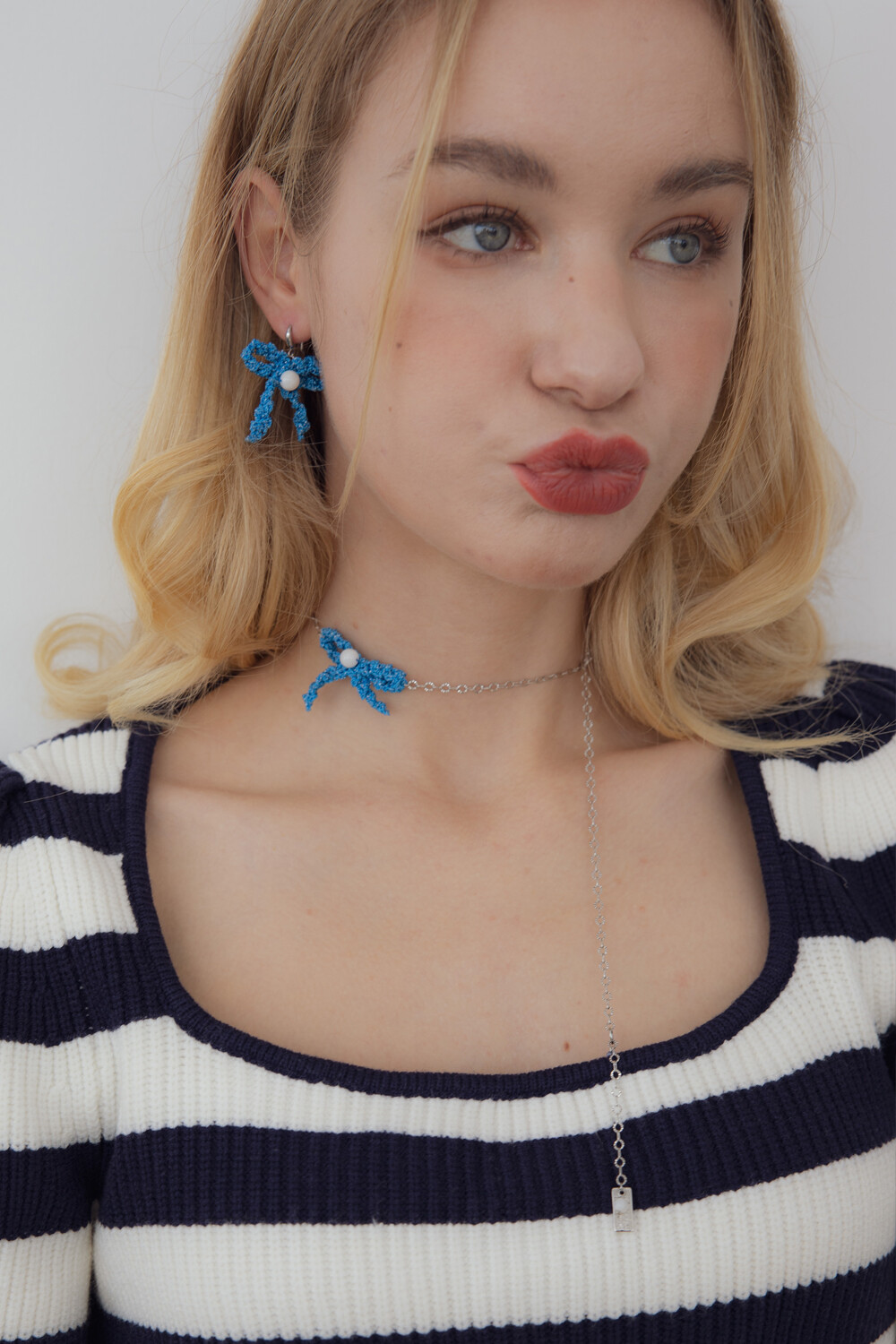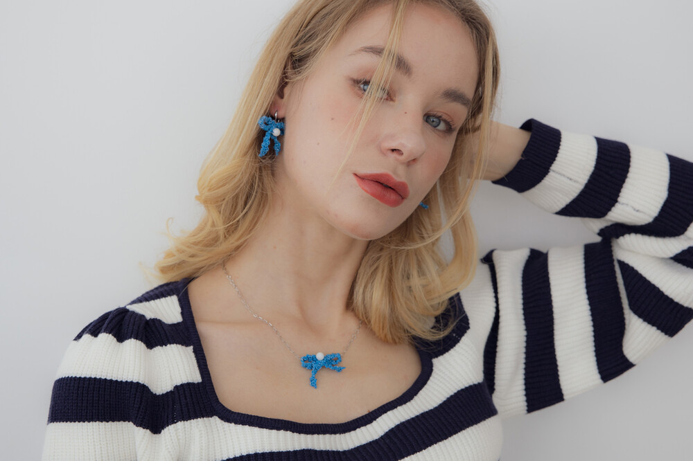 Blue ribbon knit pendant necklace