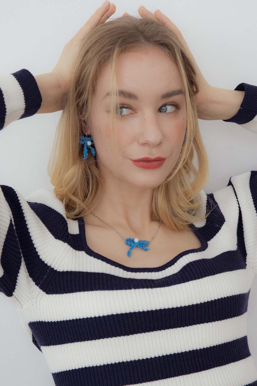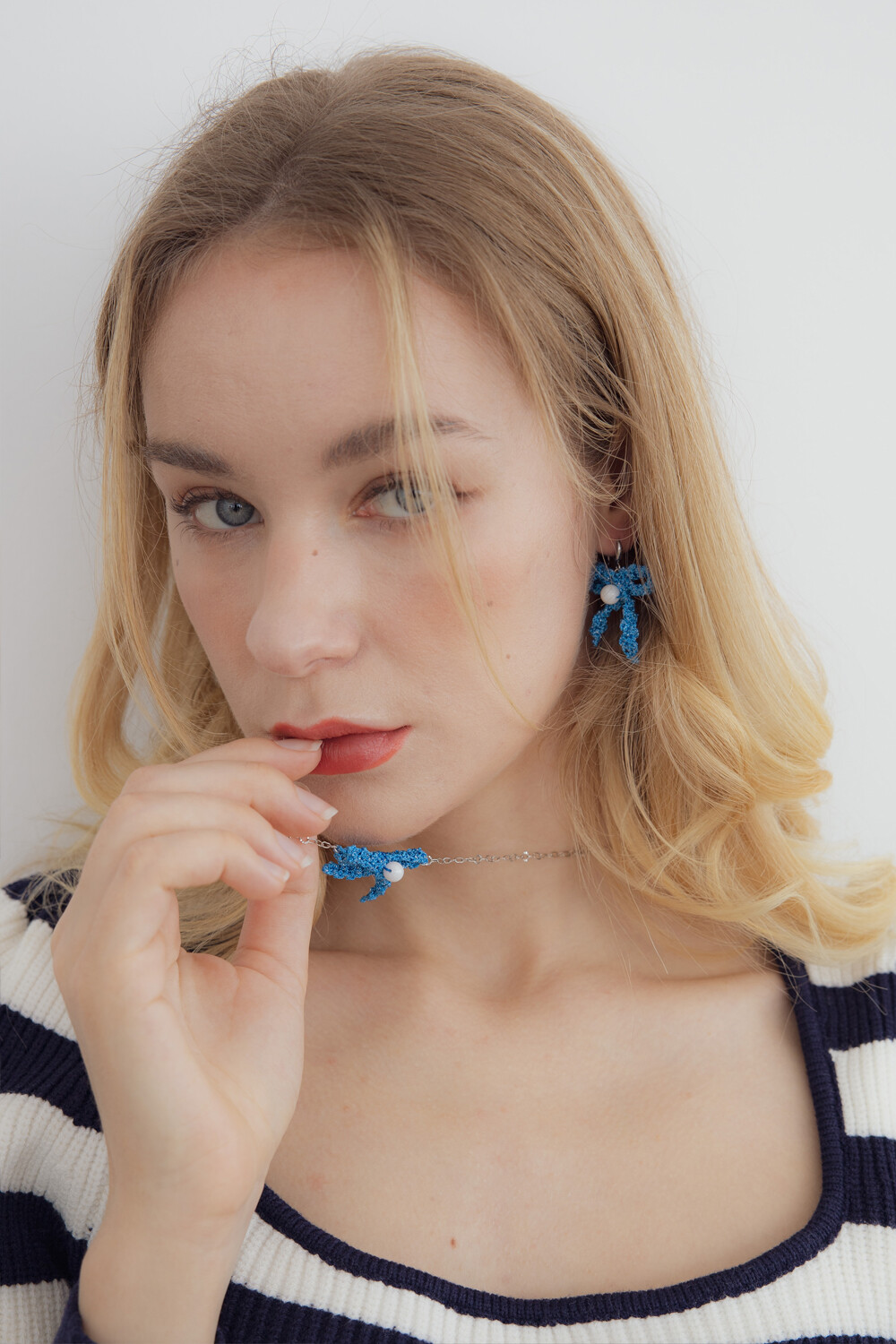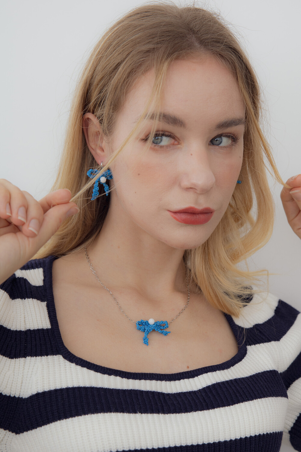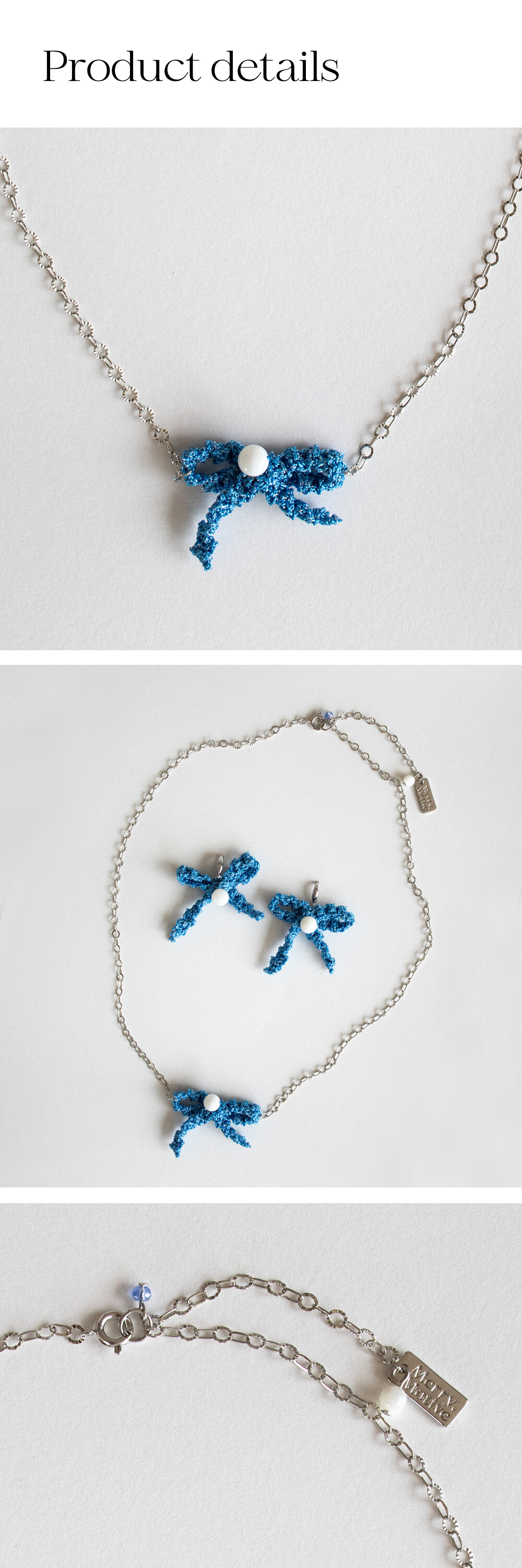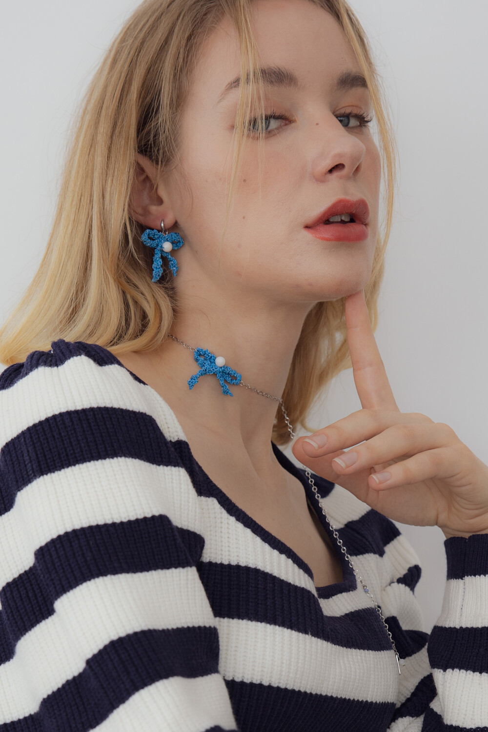 Blue ribbon knit pendant necklace