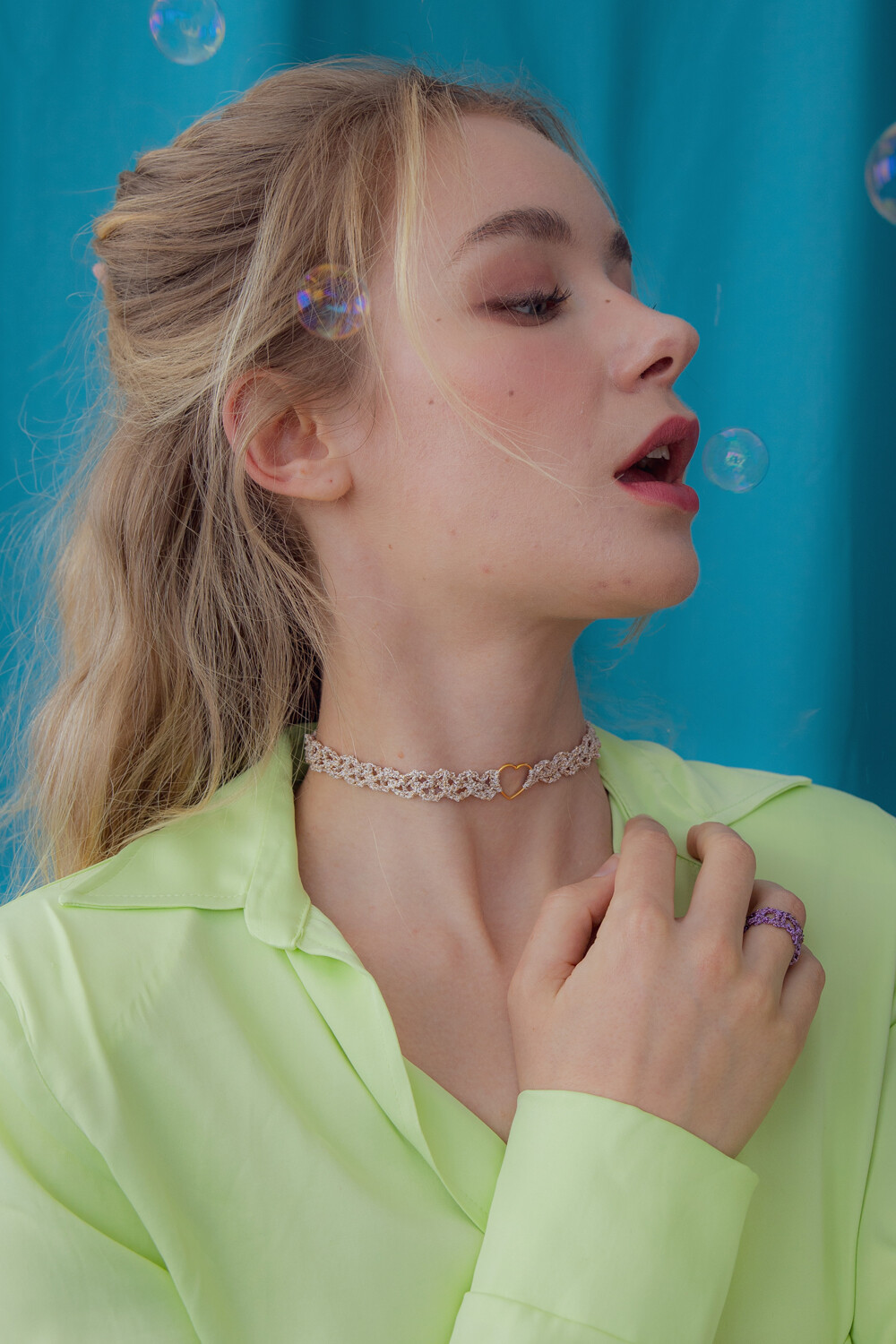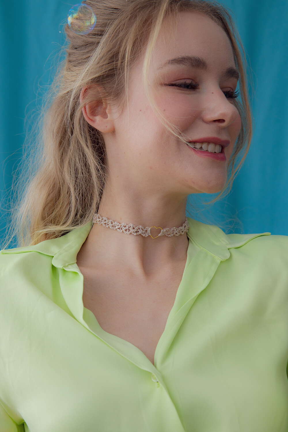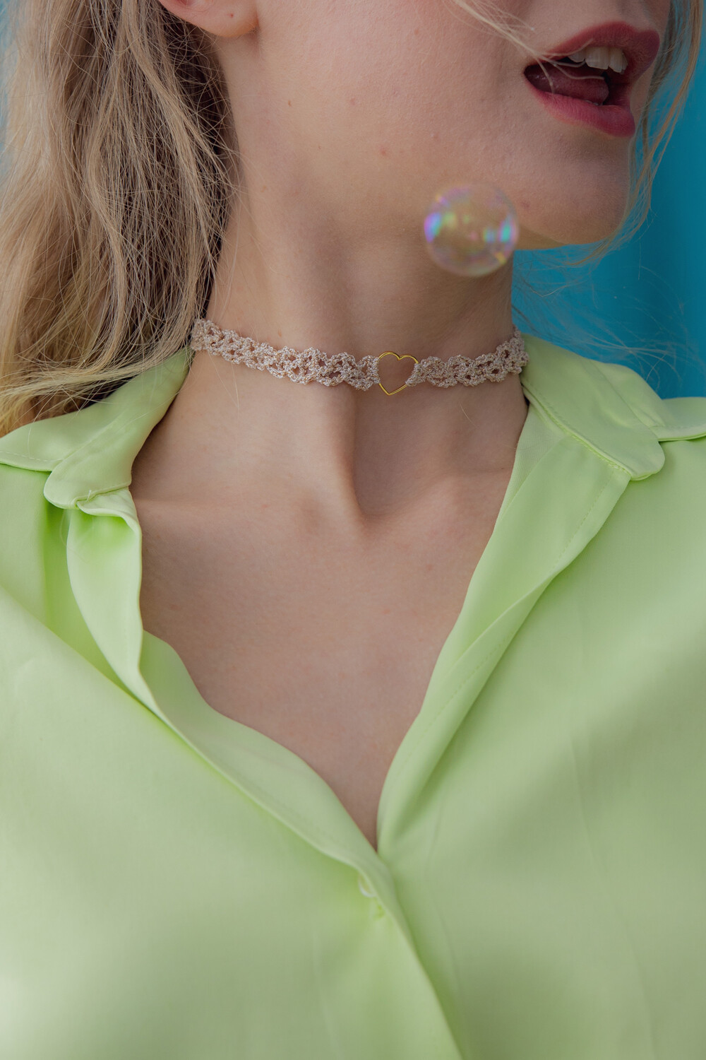 Heart center lace chain necklace