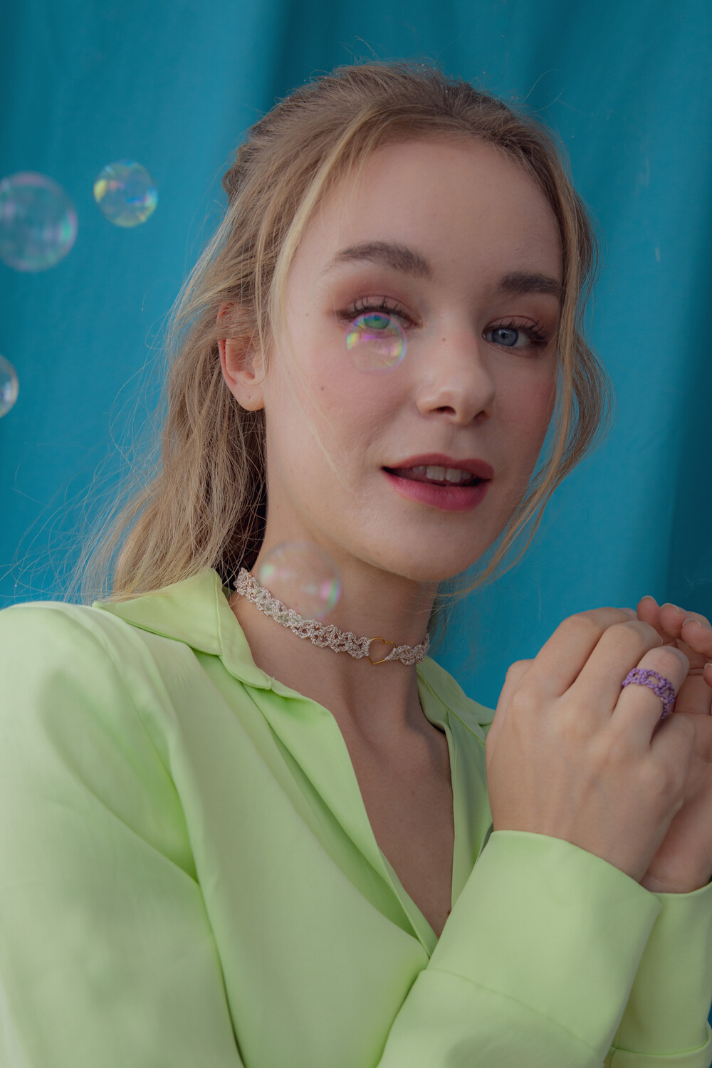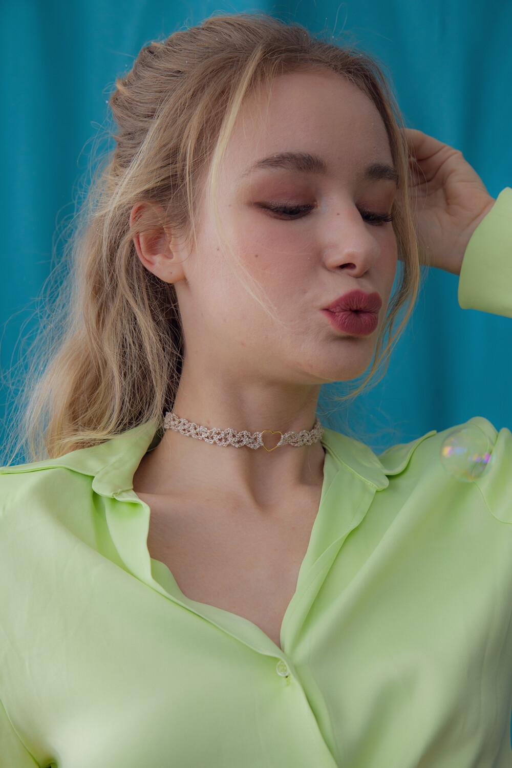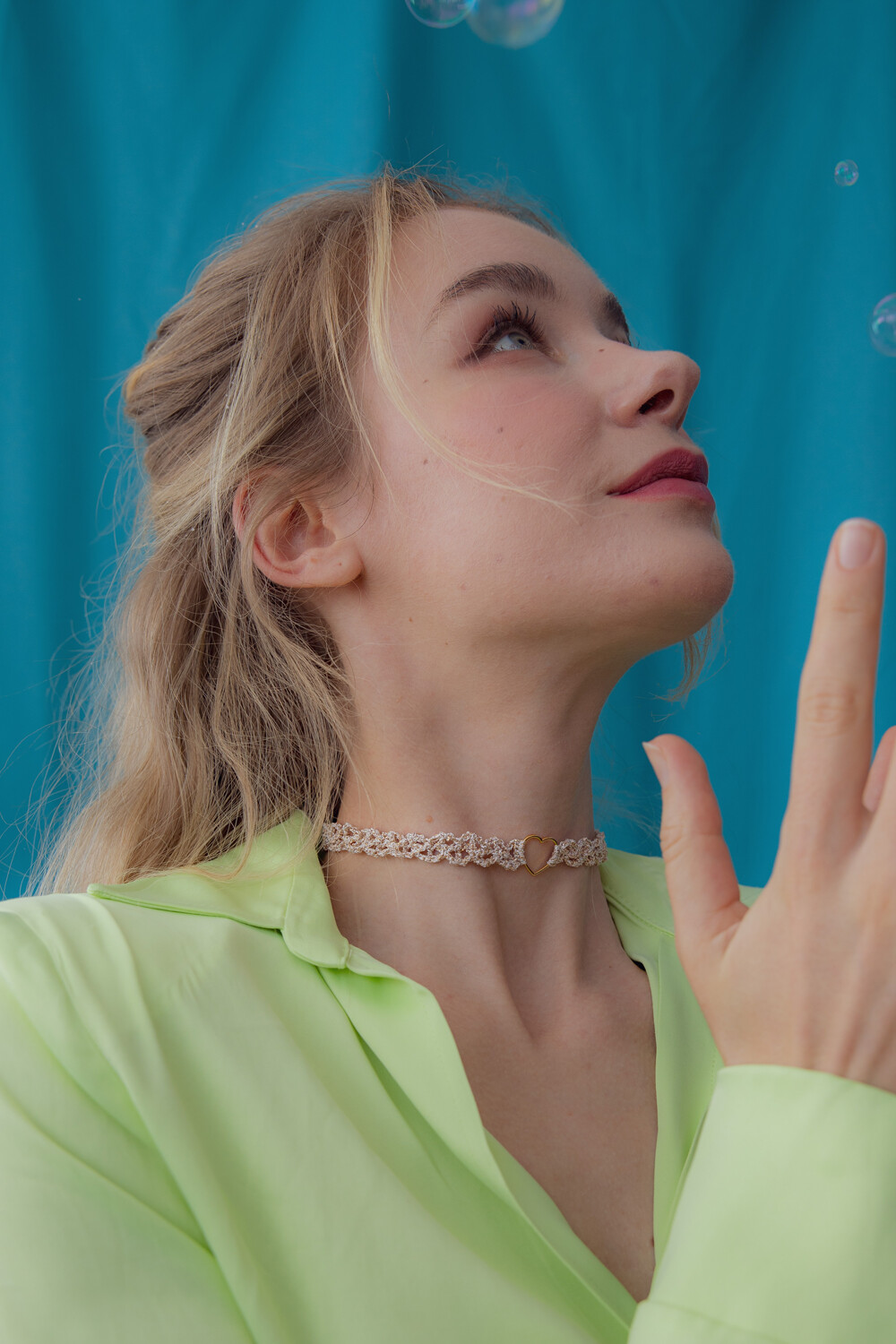 Heart center lace chain necklace