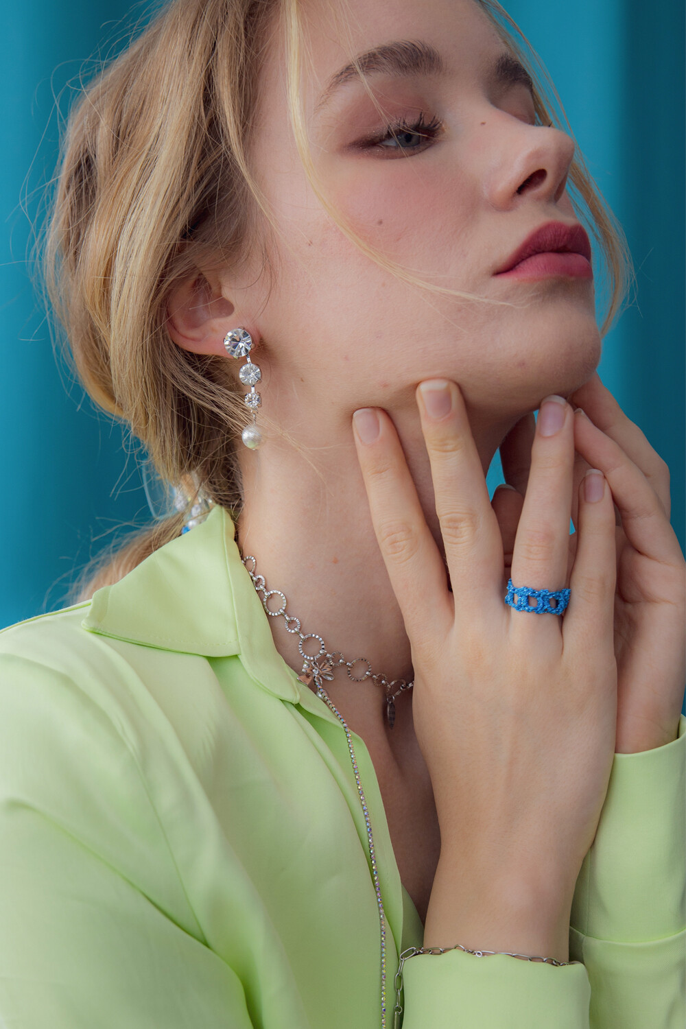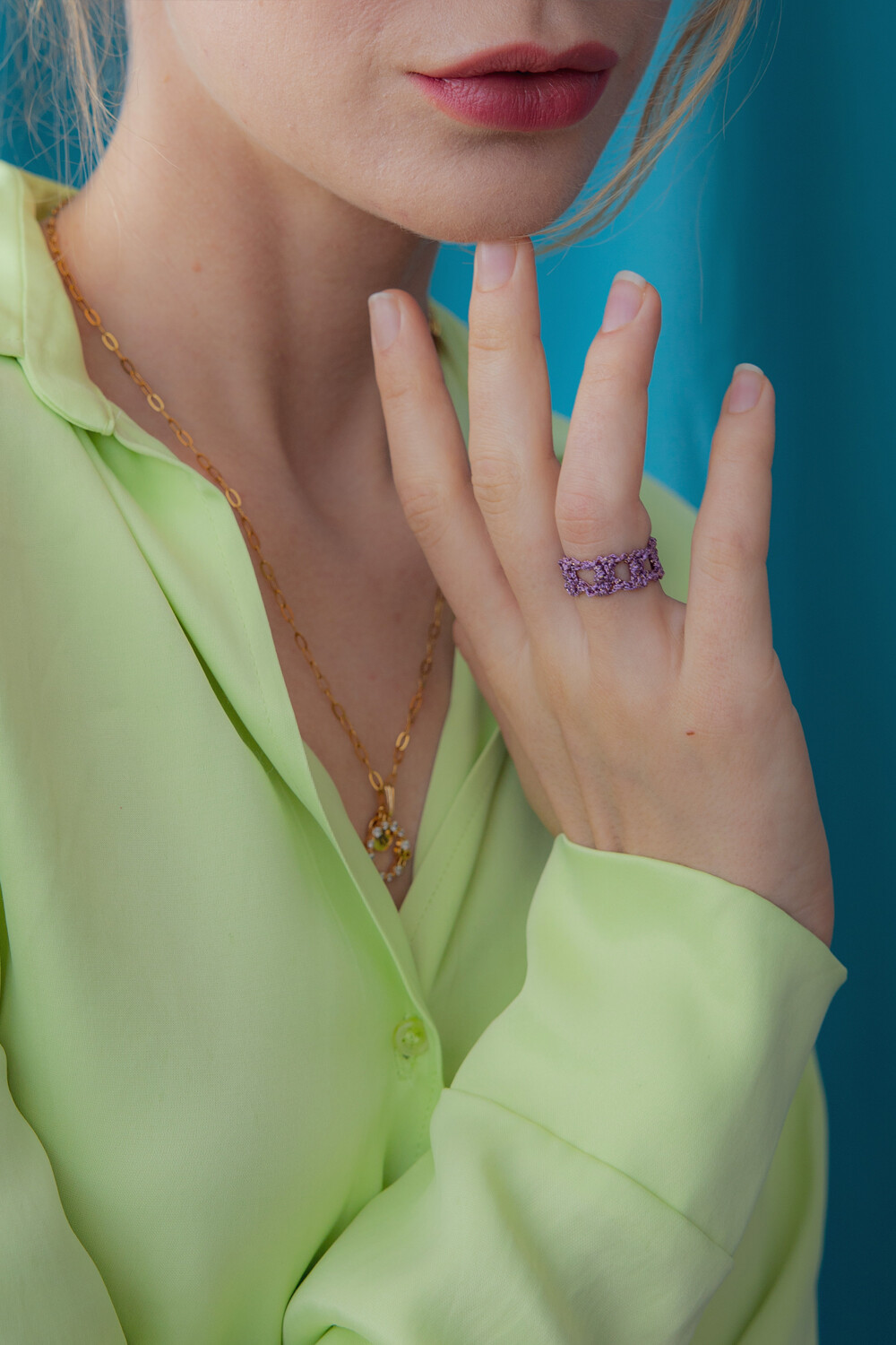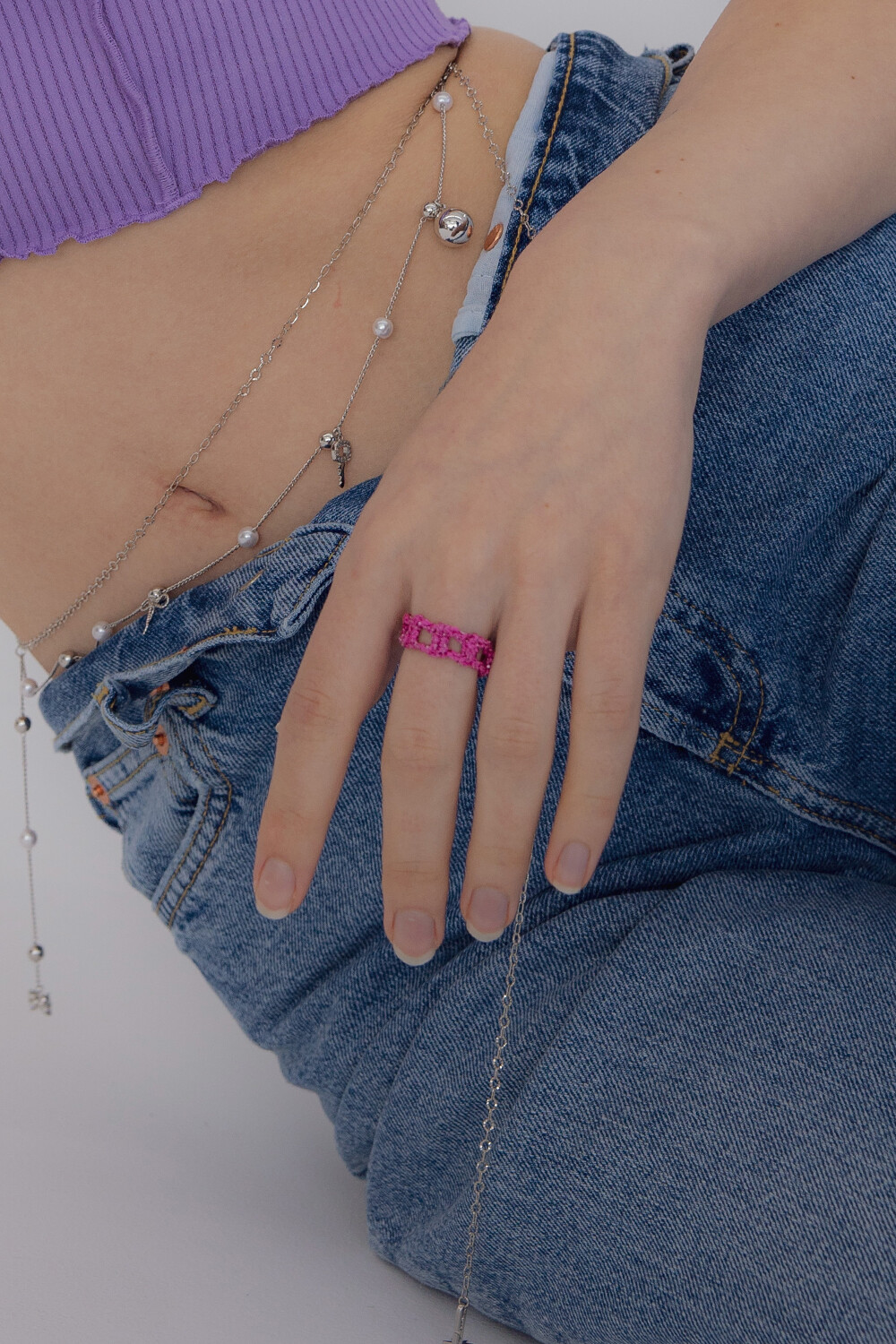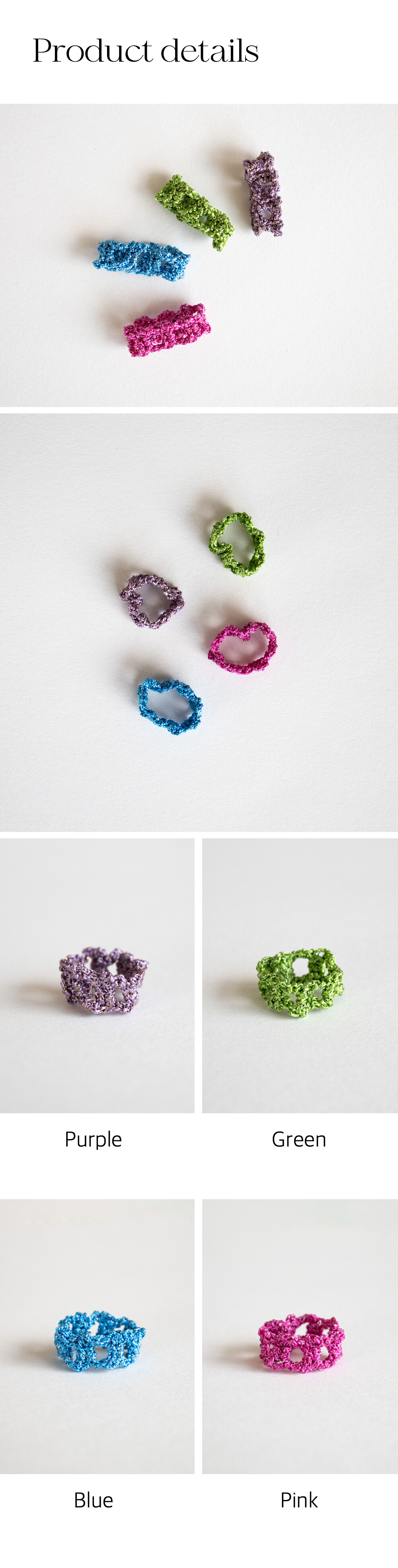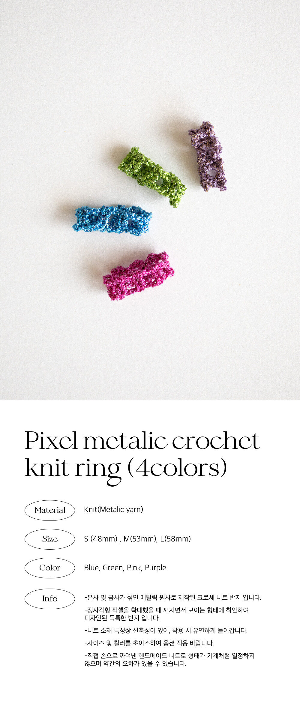 Pixel metallic crochet knit ring(4colors)