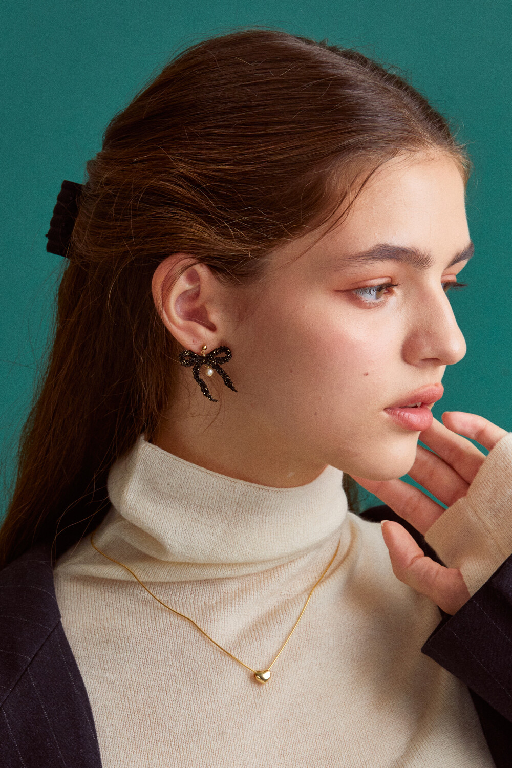 Romantic black ribbon earring