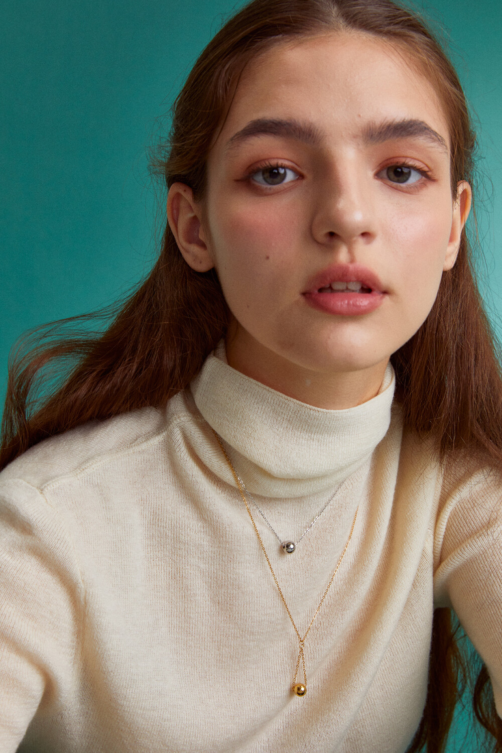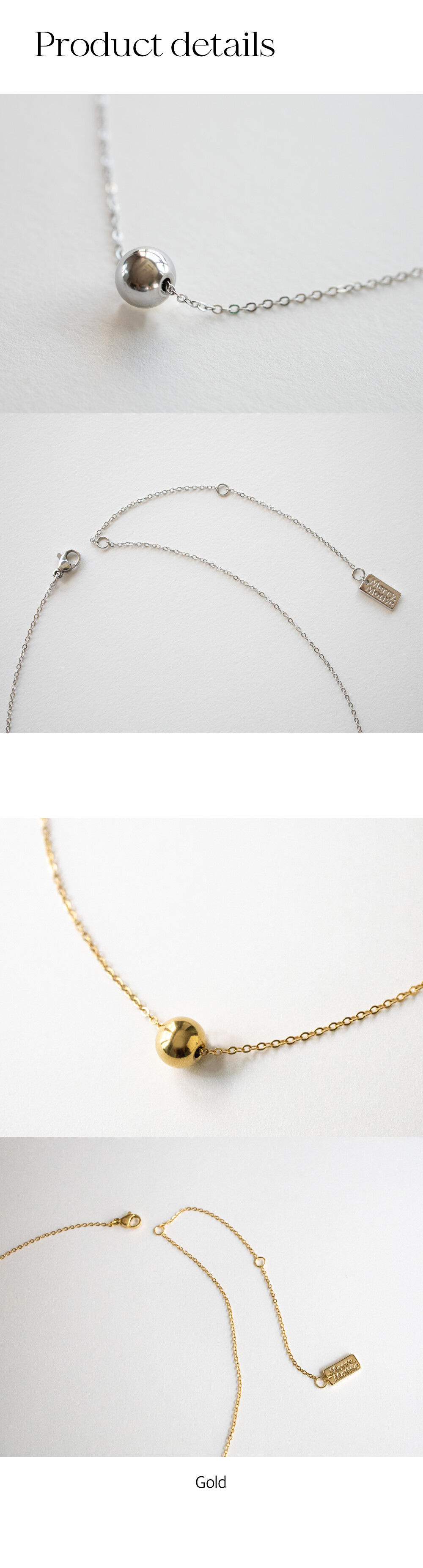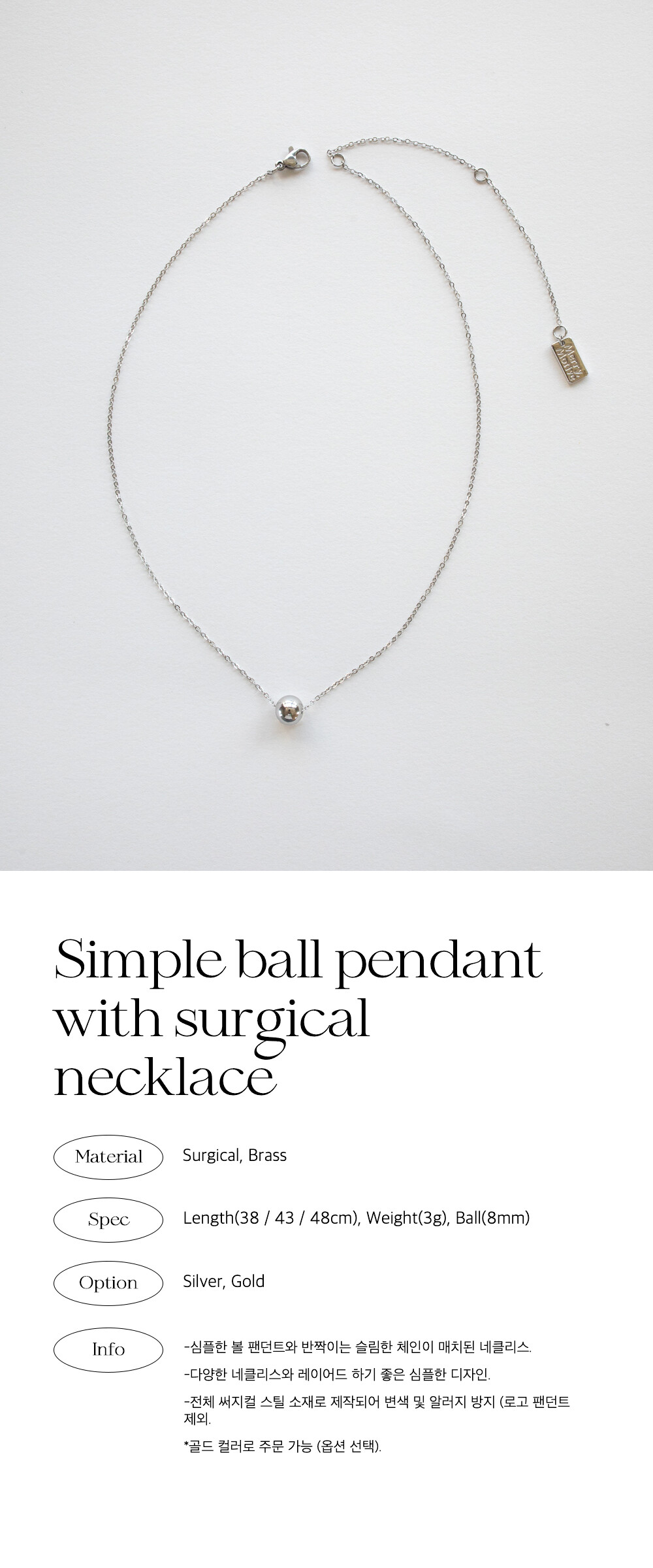 Simple ball pendant with surgical necklace (2colors)