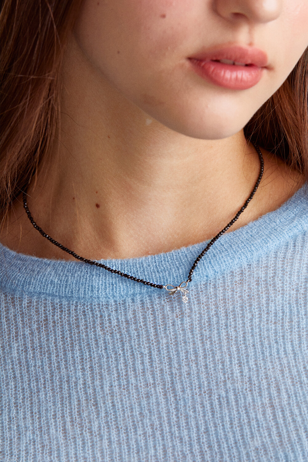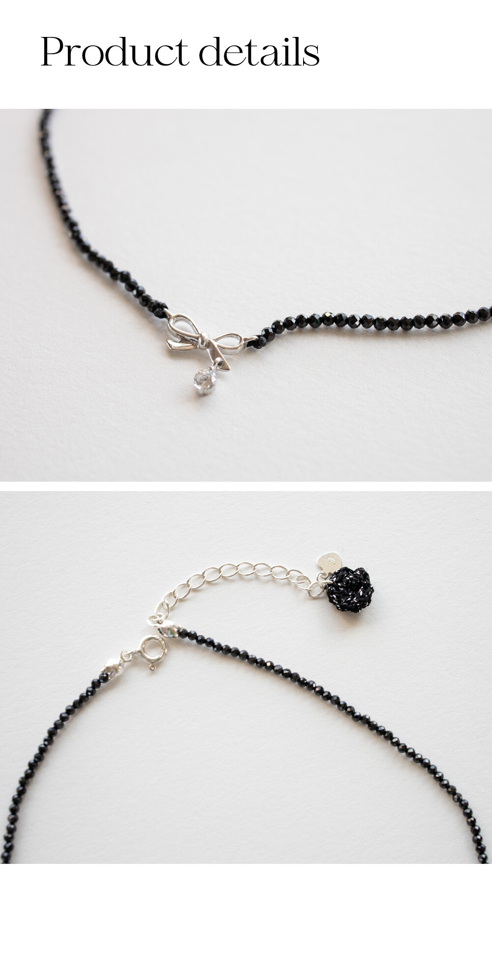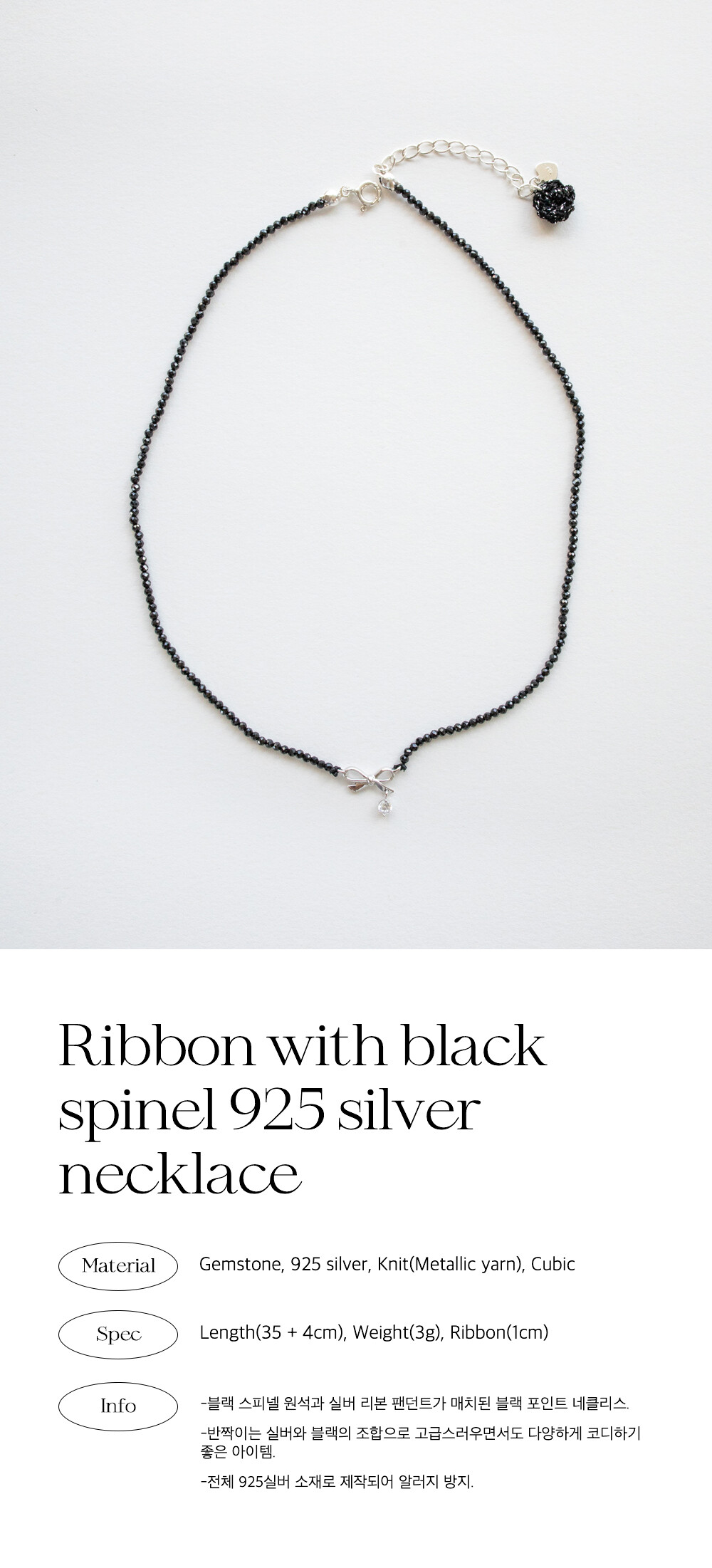 Ribbon with black spinel 925 silver necklace