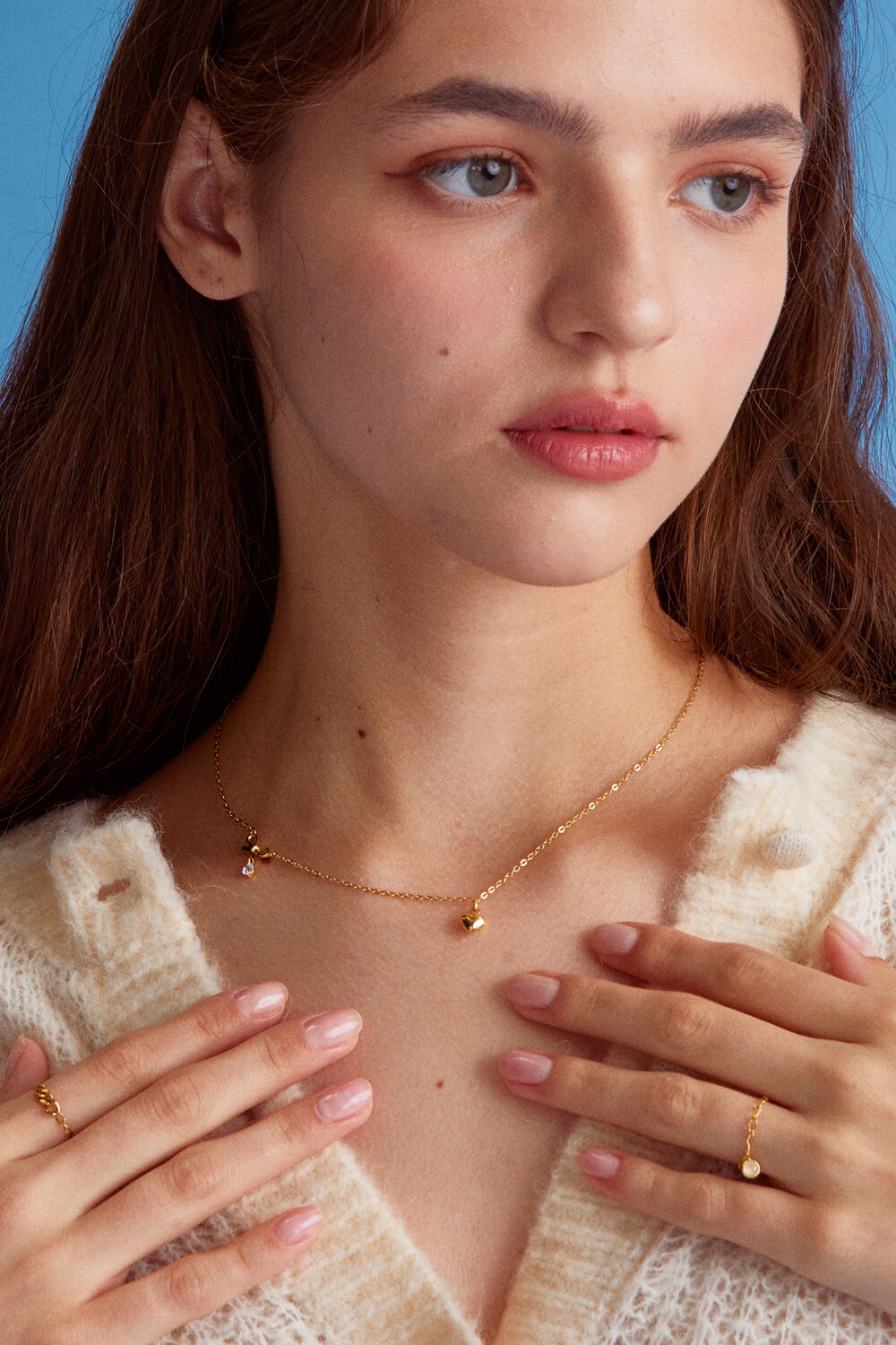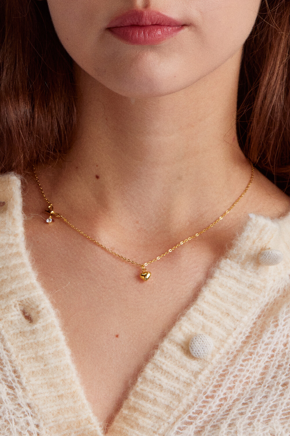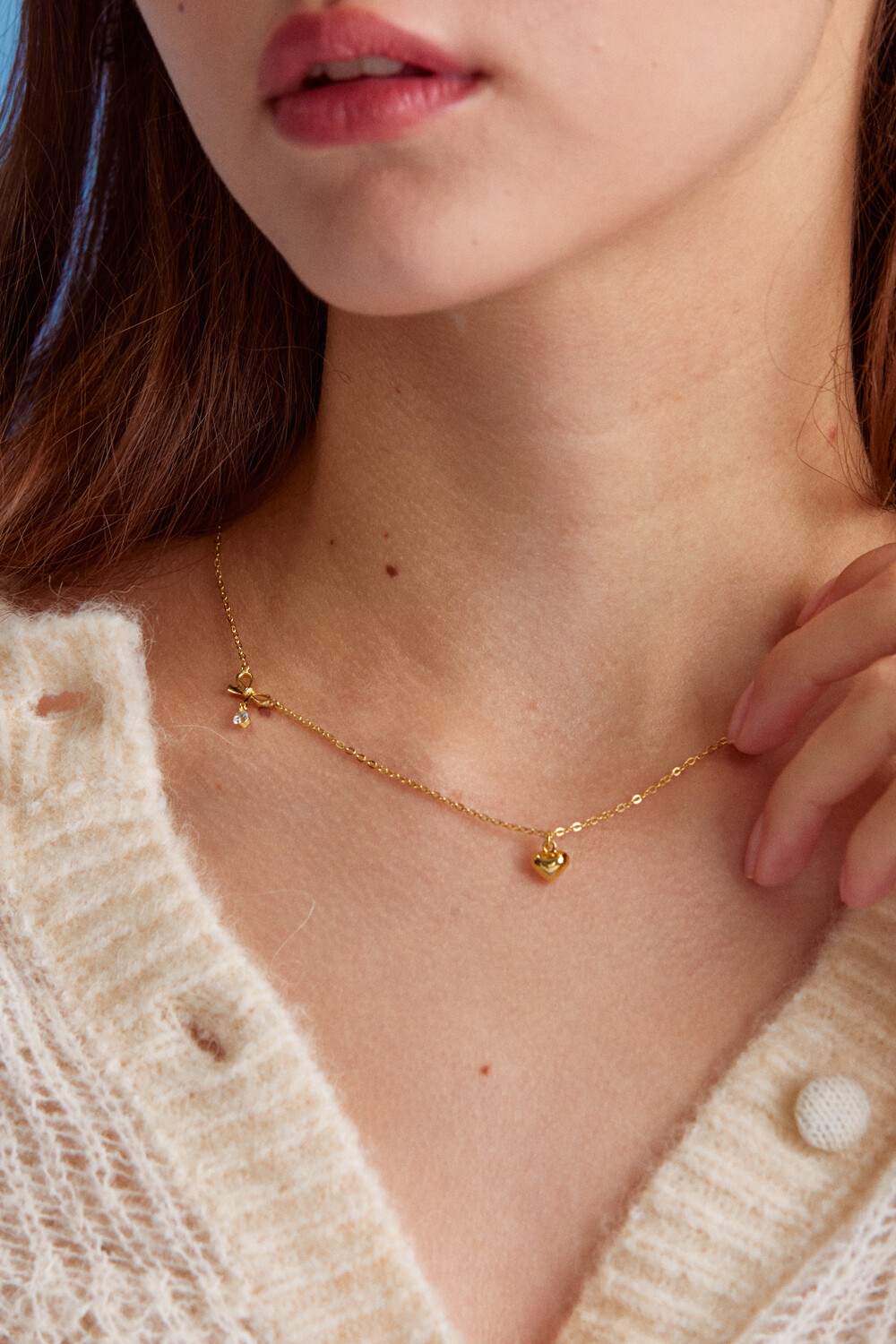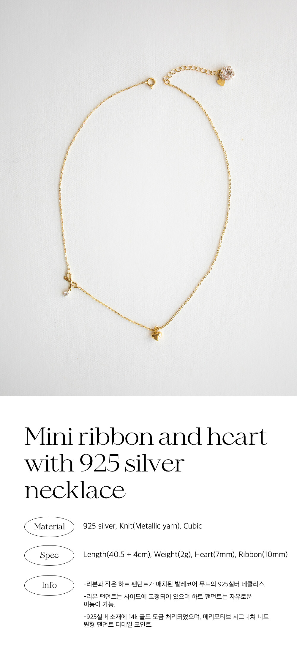 Mini ribbon and heart with 925 silver necklace