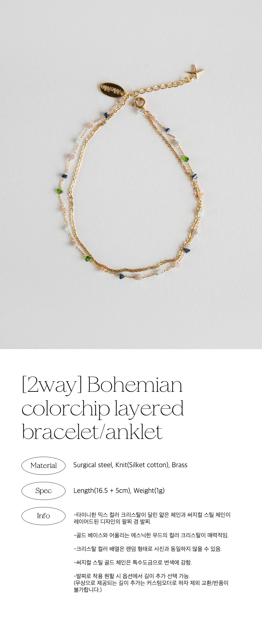 [2way] Bohemian colorchip layered bracelet/anklet
