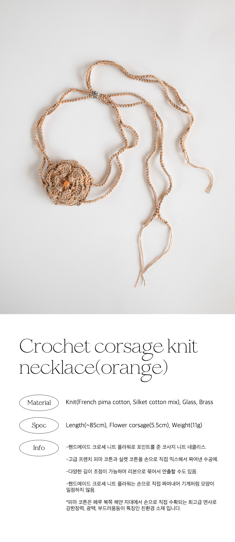 Crochet corsage knit necklace (orange)