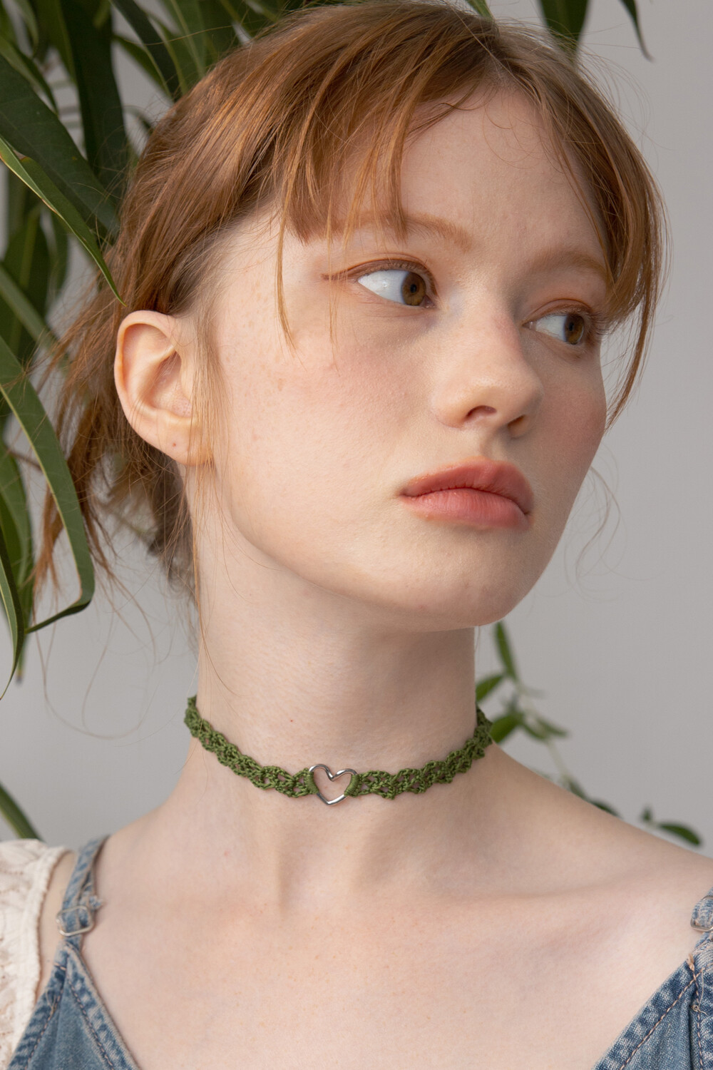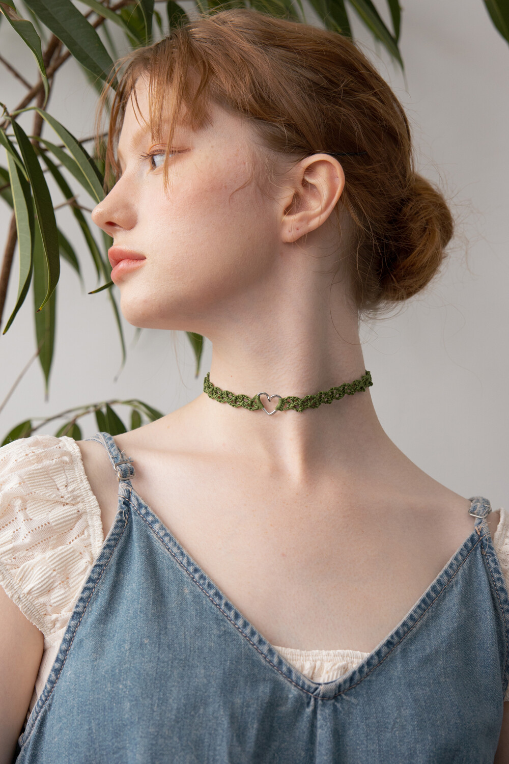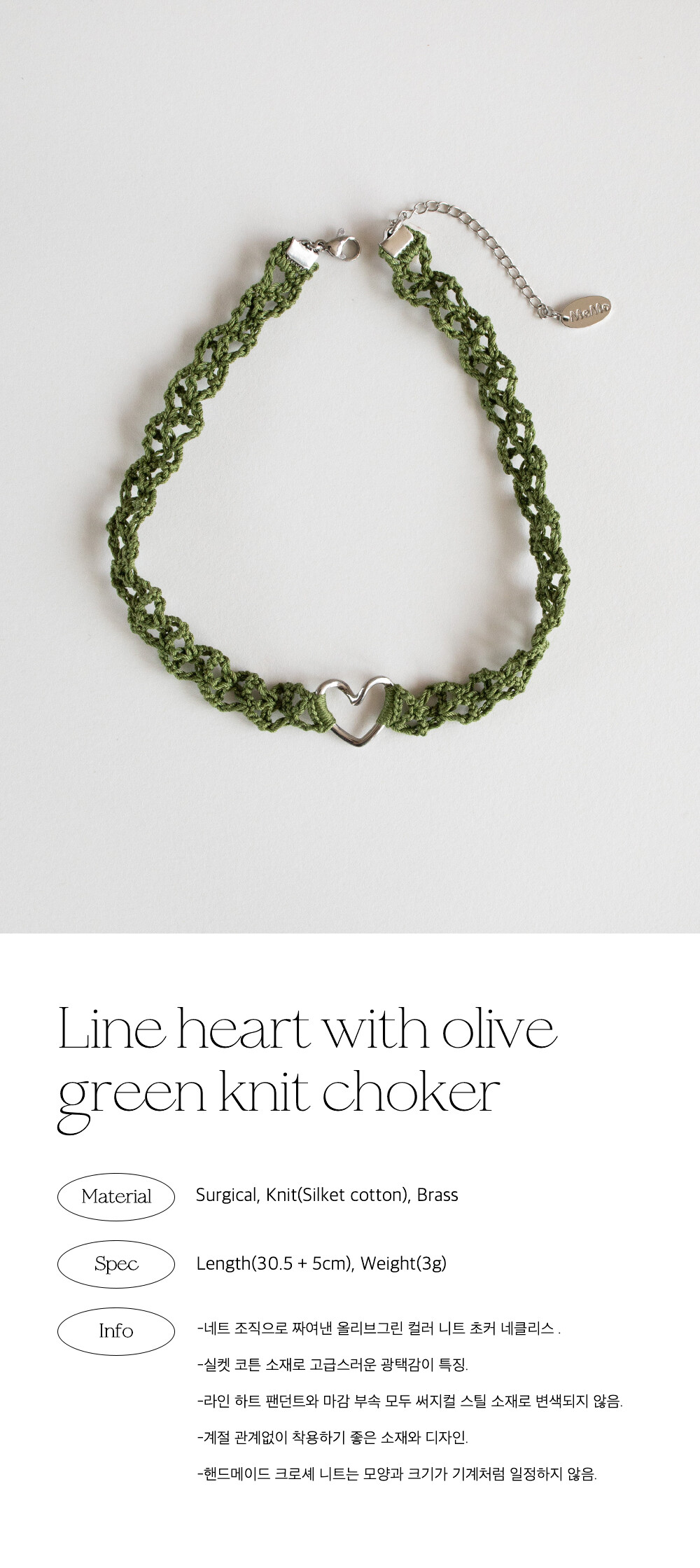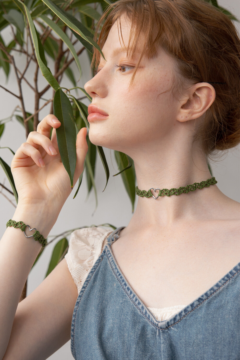 Line heart with olive green knit choker