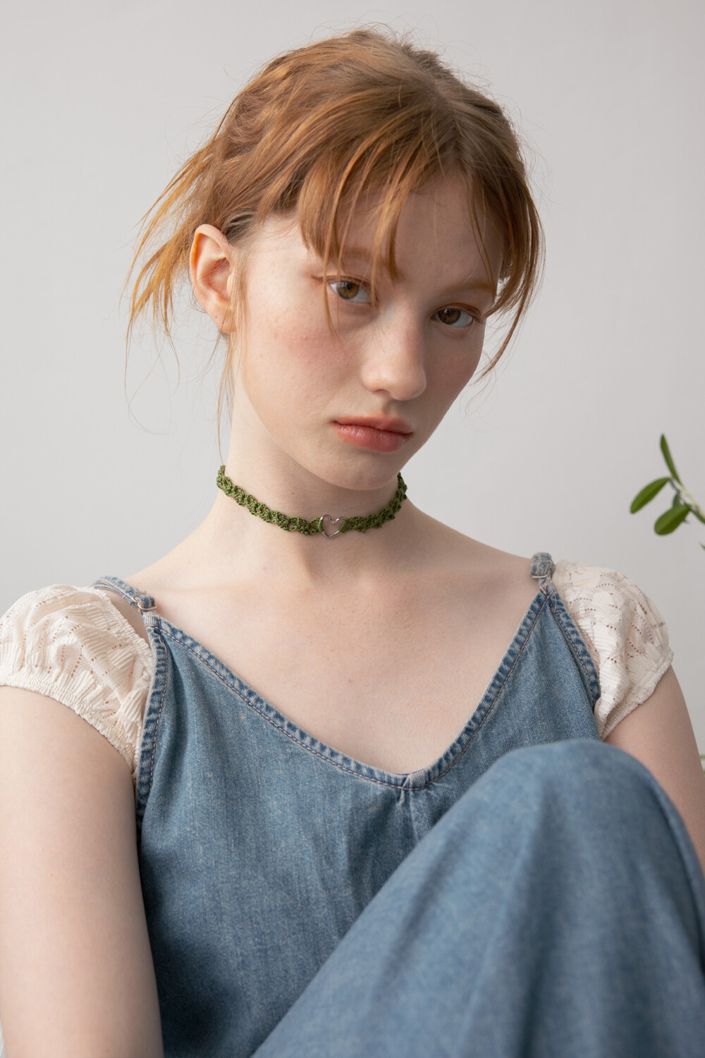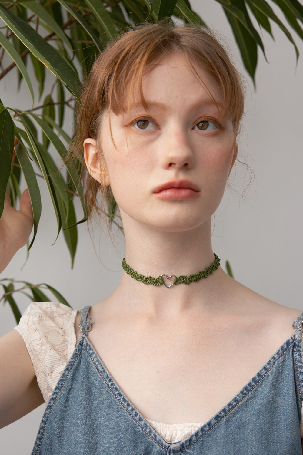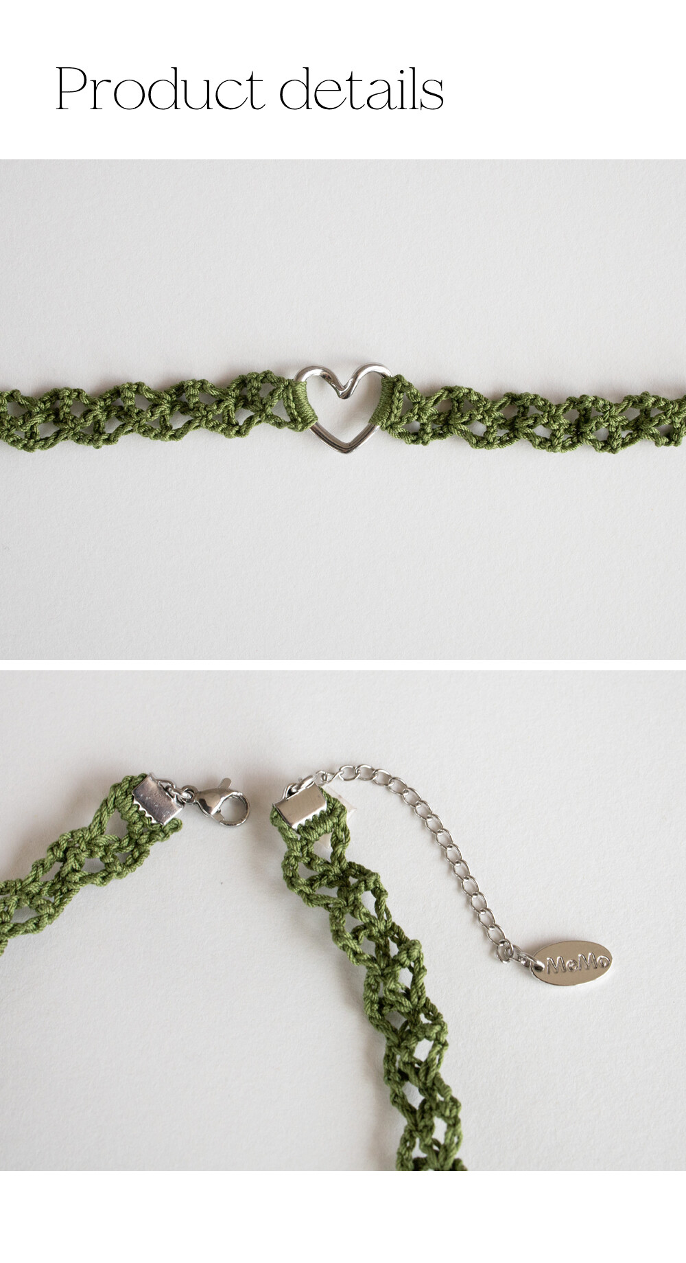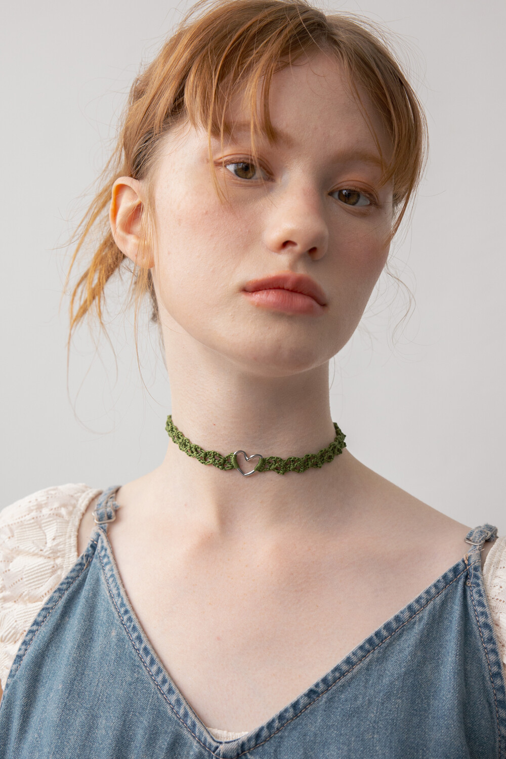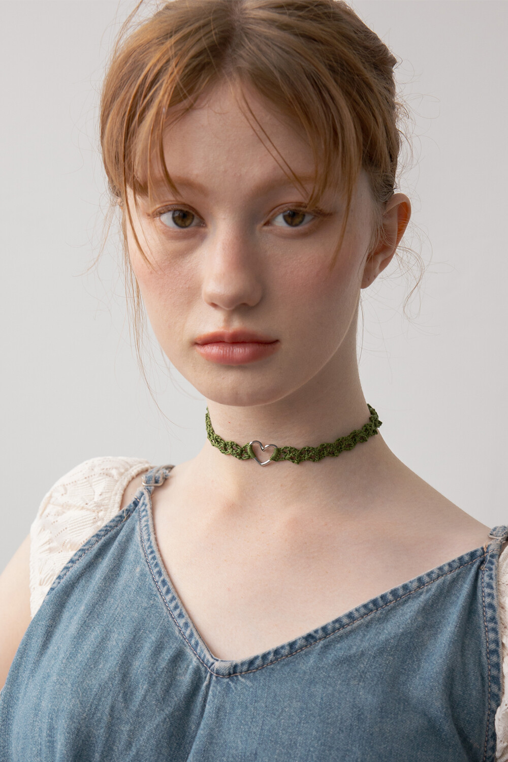 Line heart with olive green knit choker