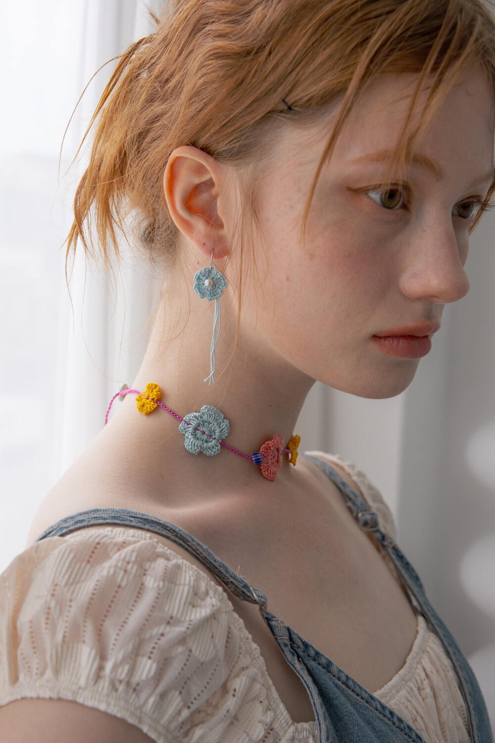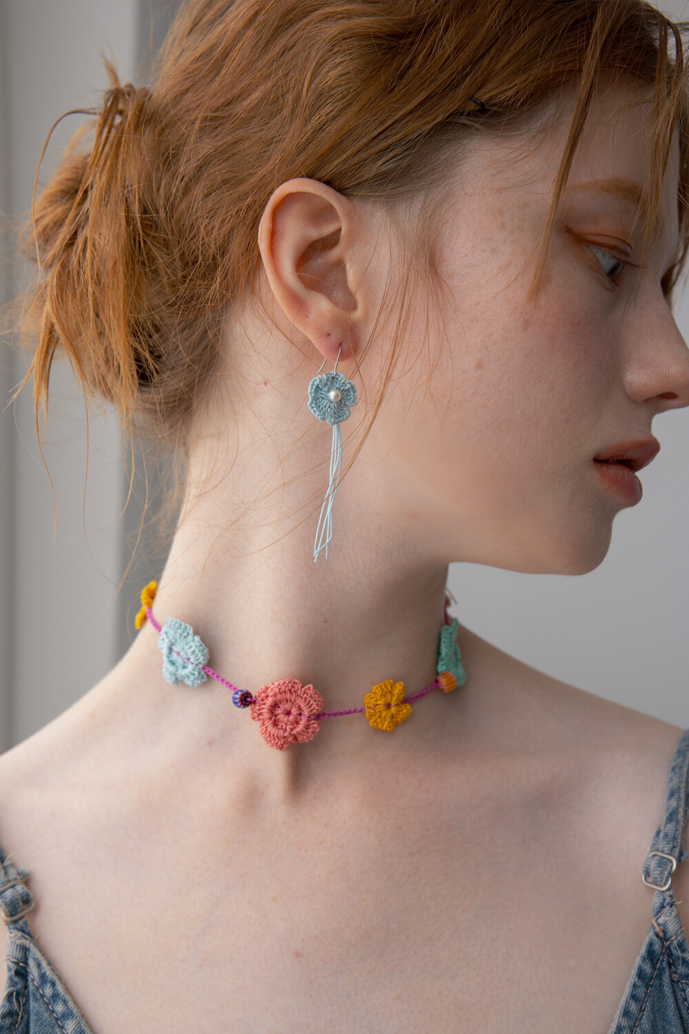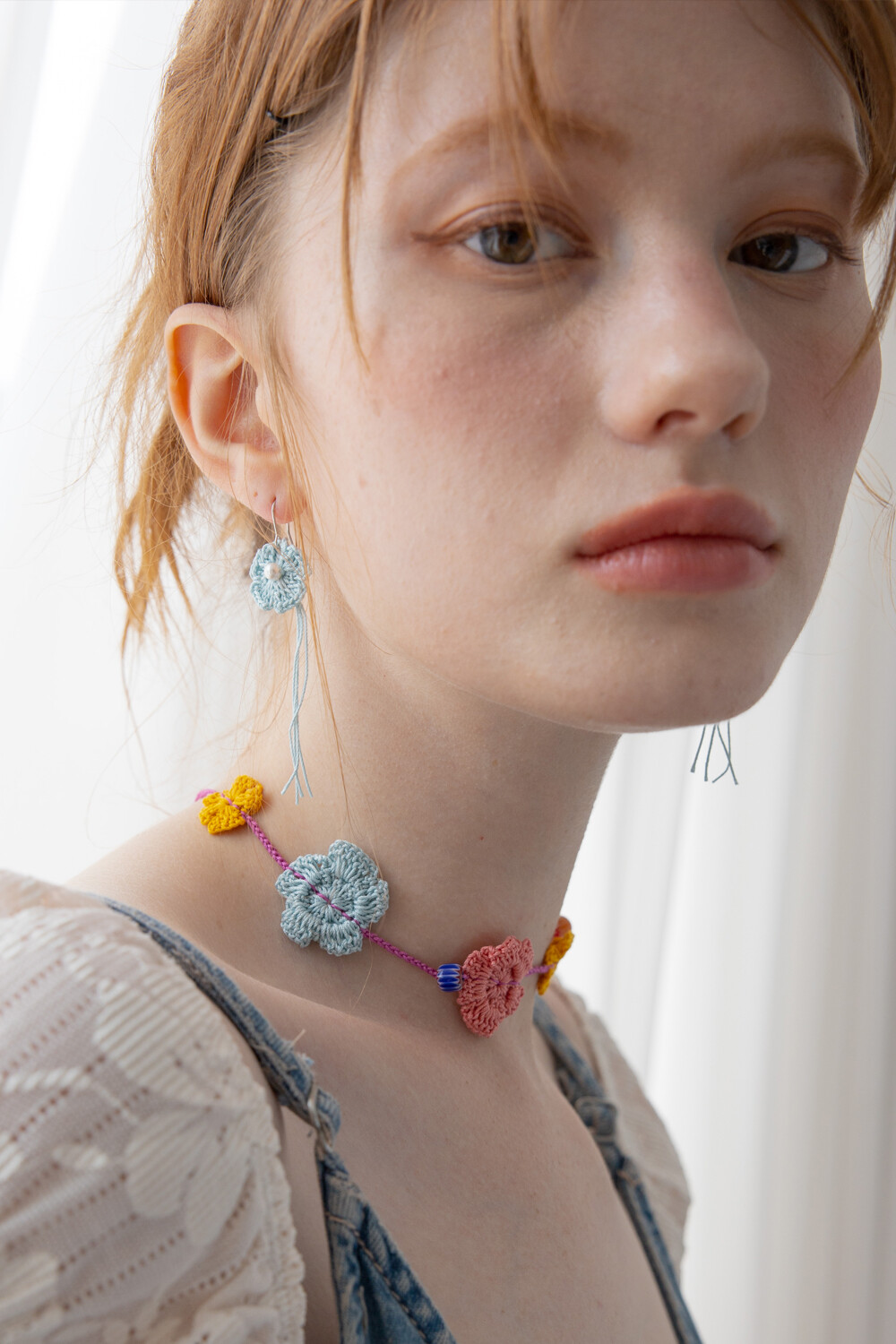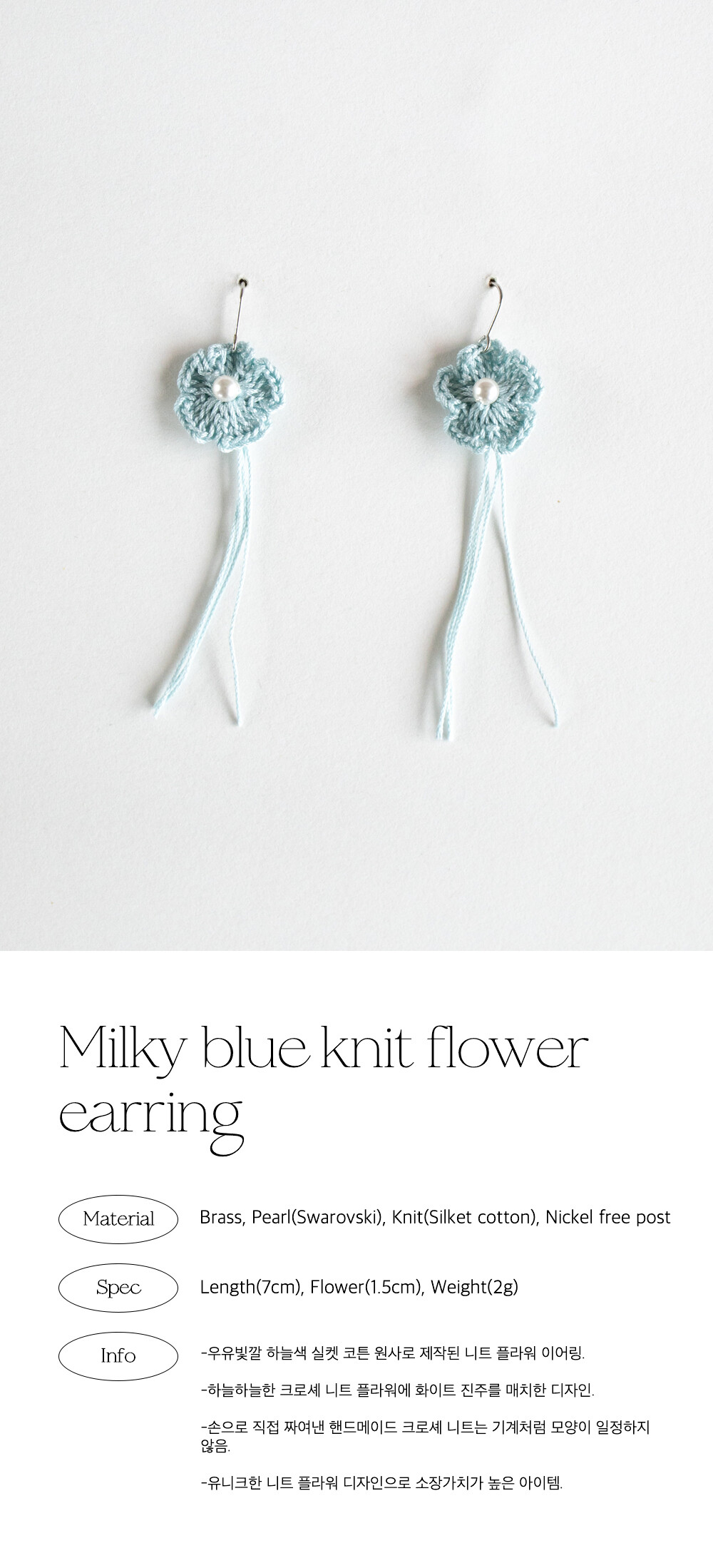 Milky blue knit flower earring