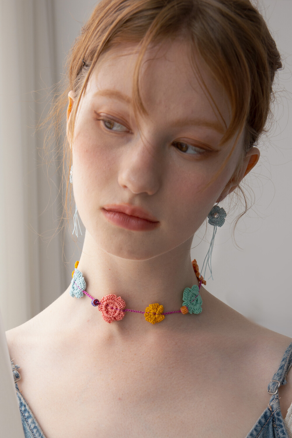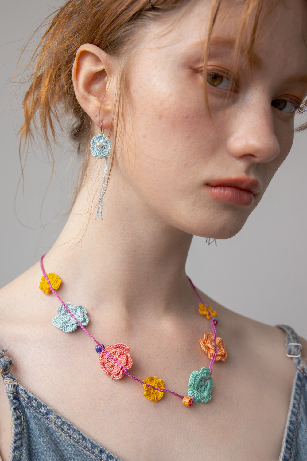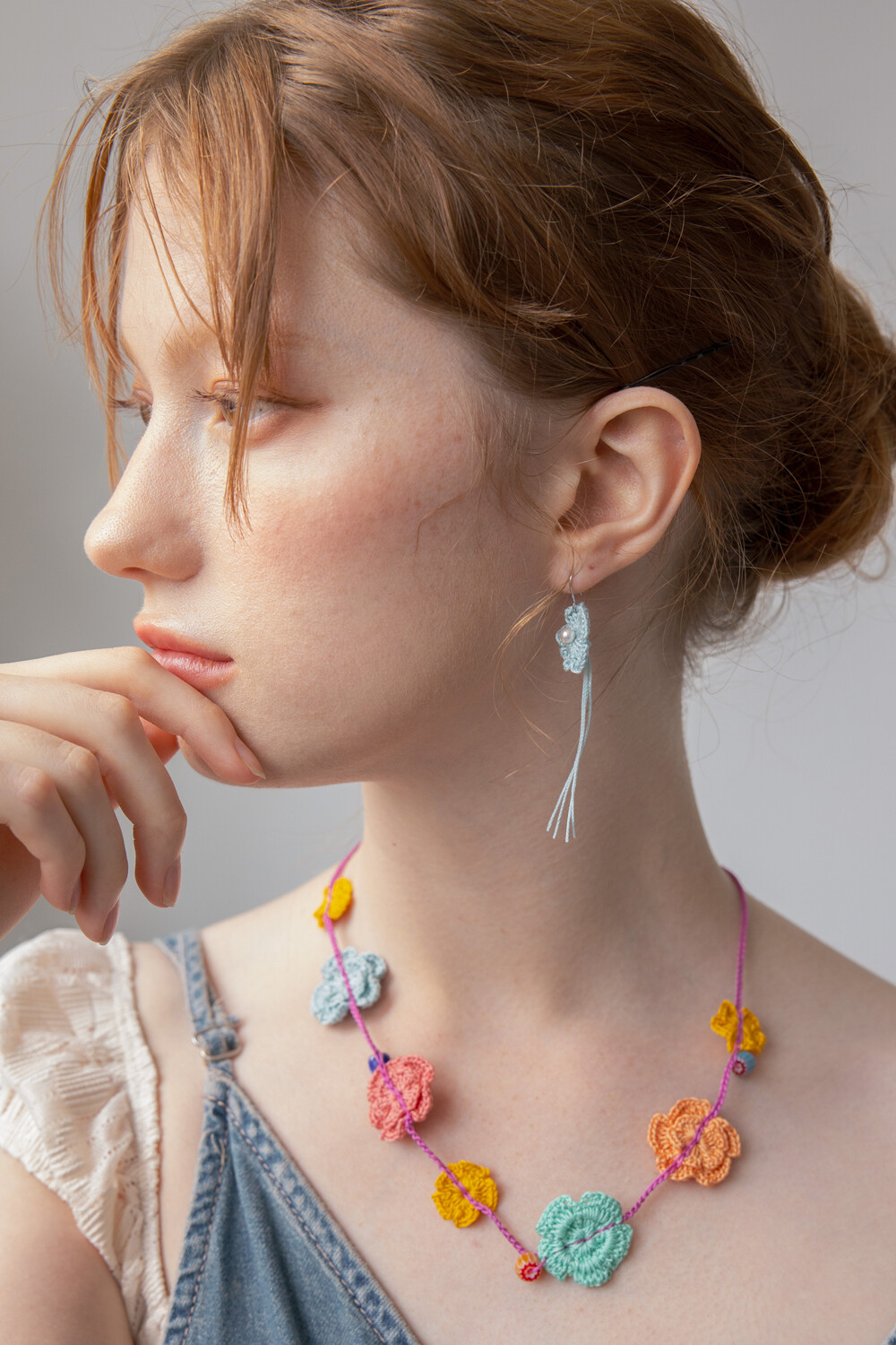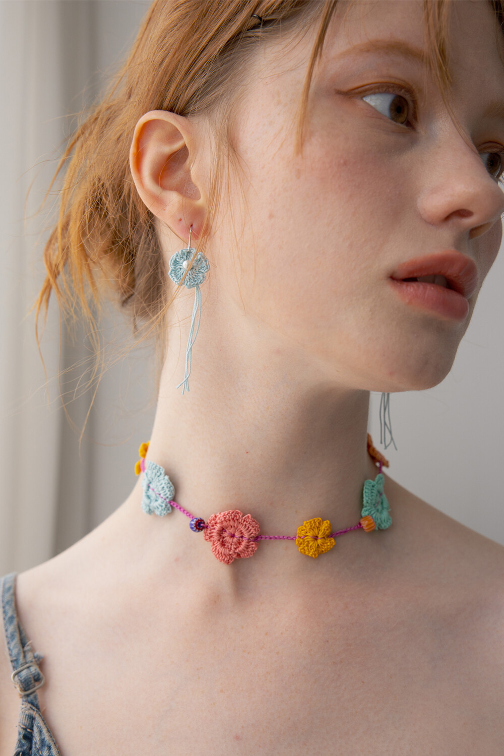 Milky blue knit flower earring