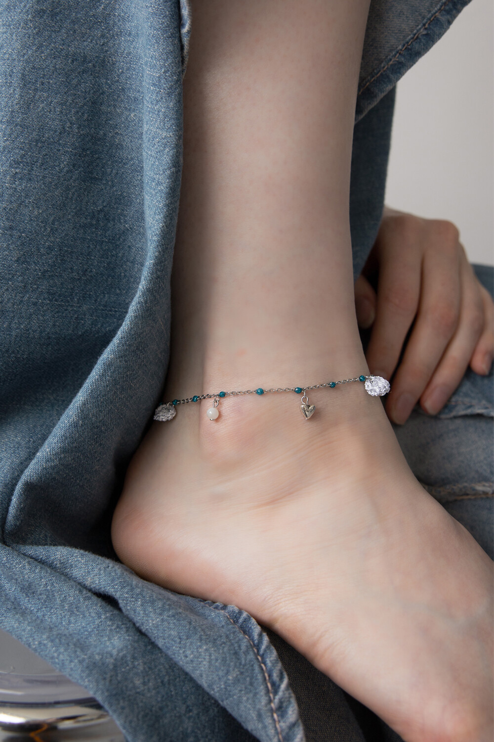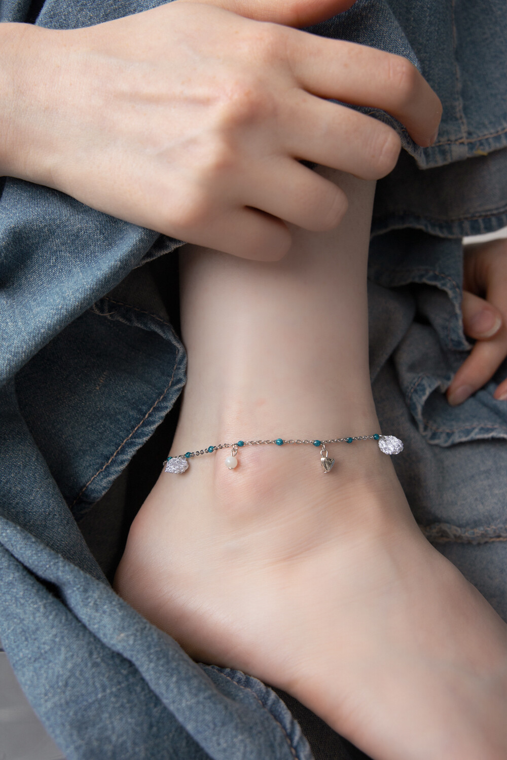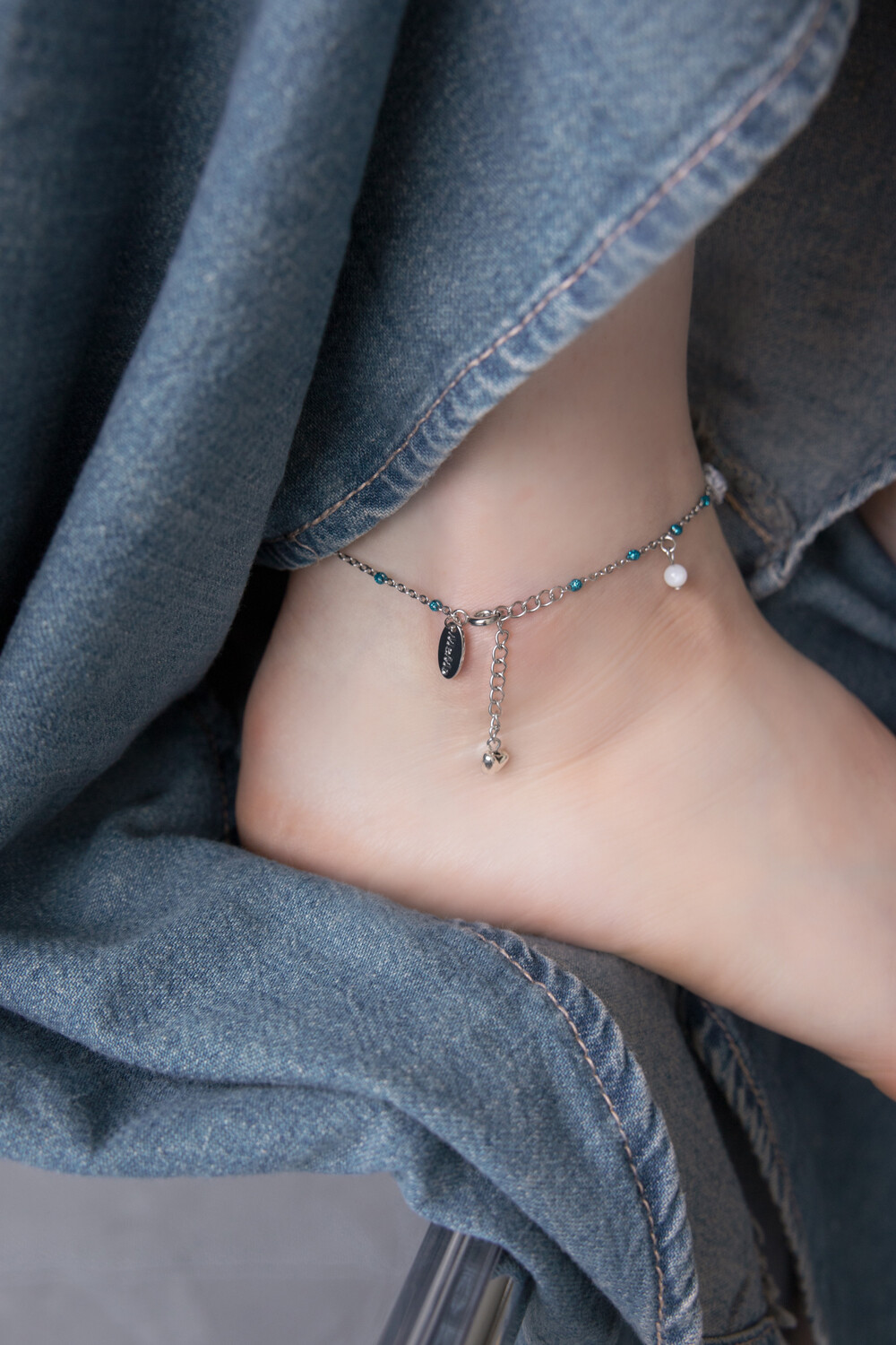 Gypsy mood blue pearl chain anklet