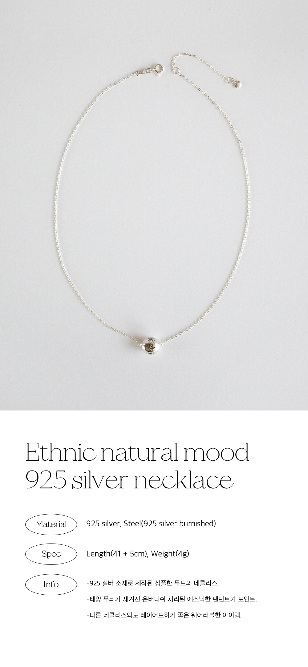Ethnic natural mood 925 silver necklace