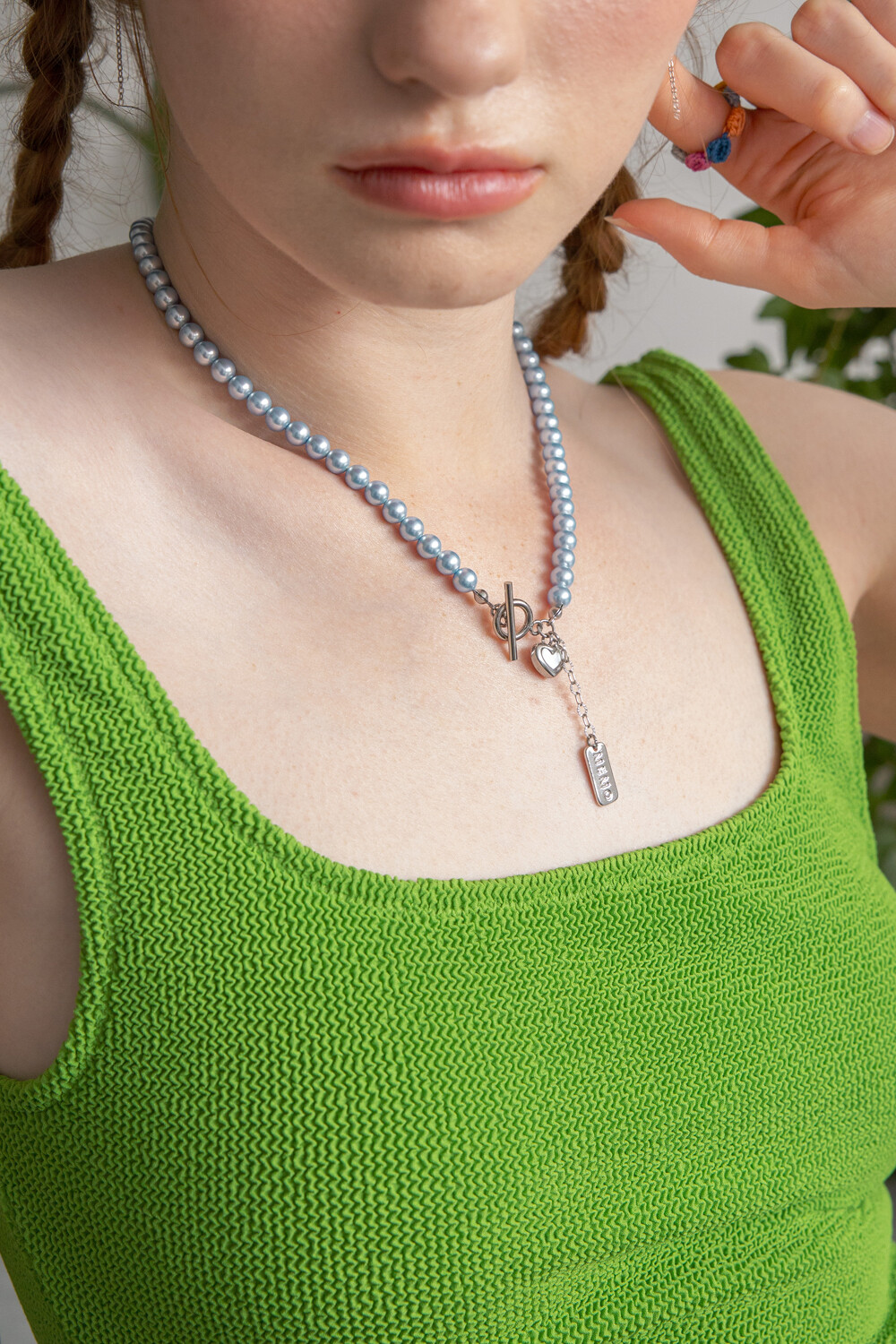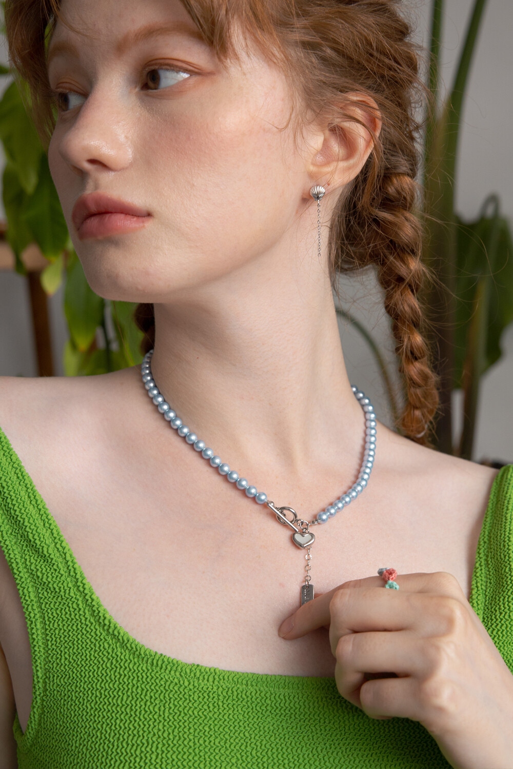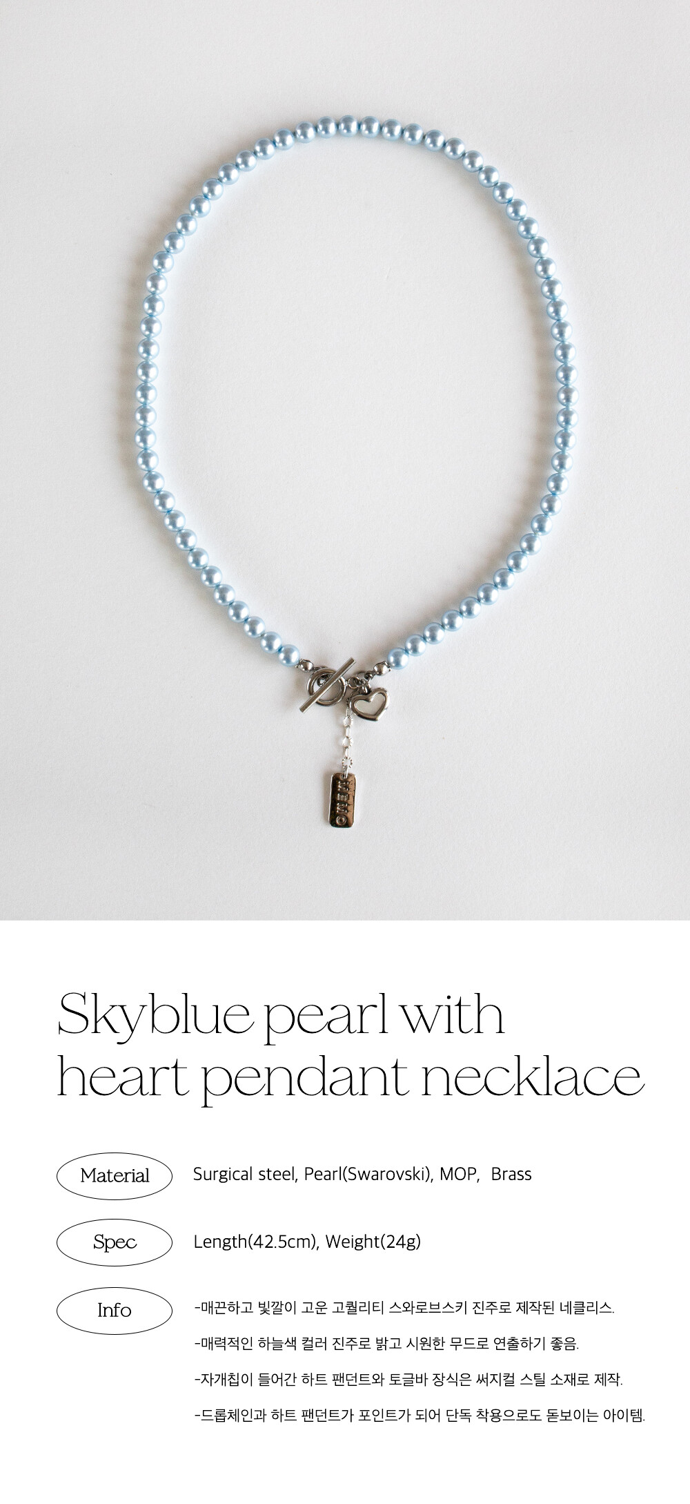 Skyblue pearl with heart pendant necklace