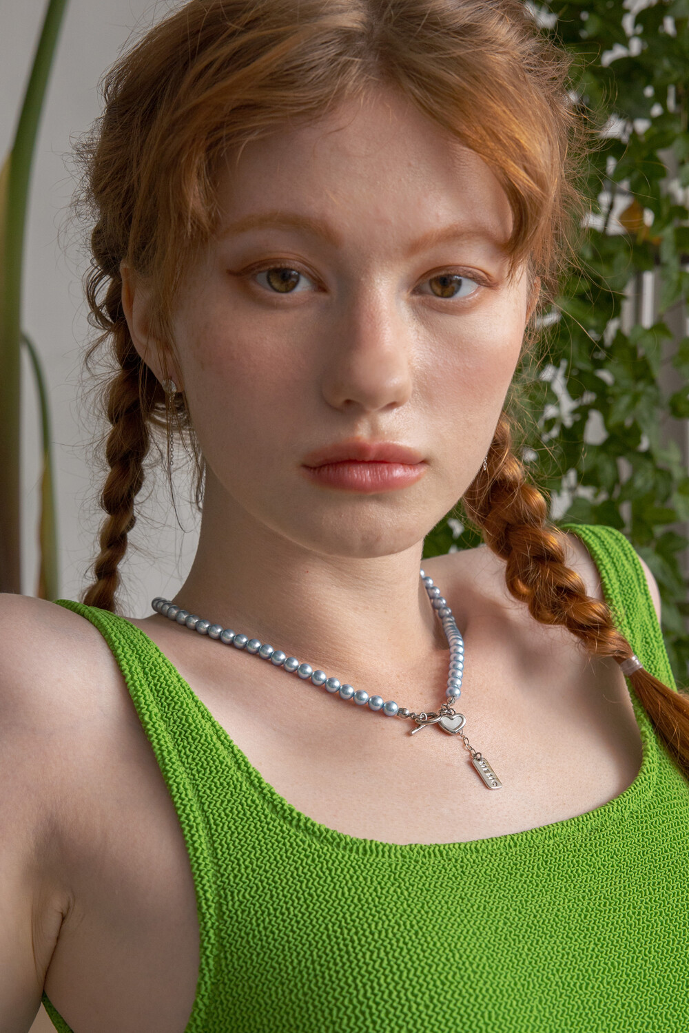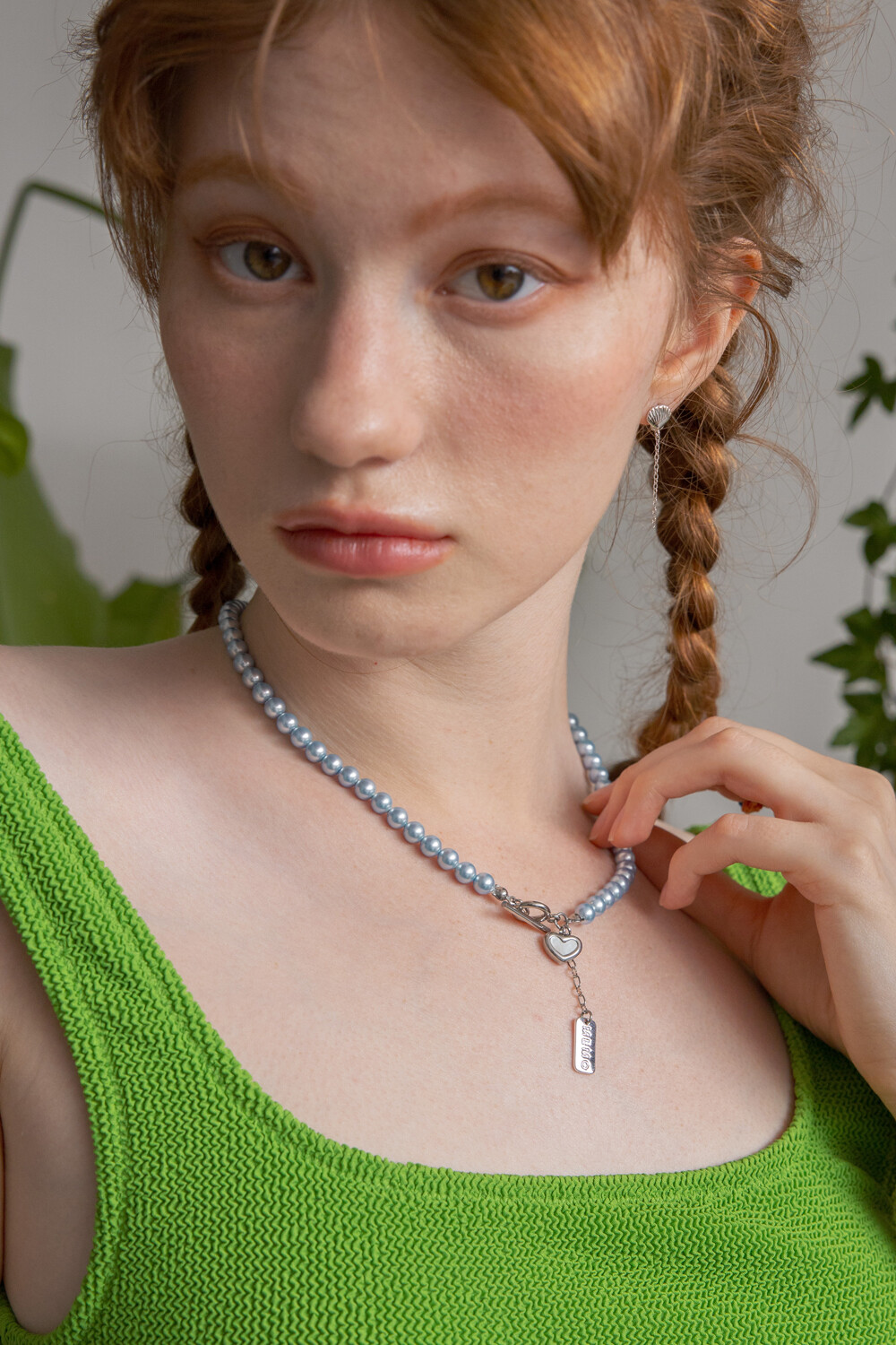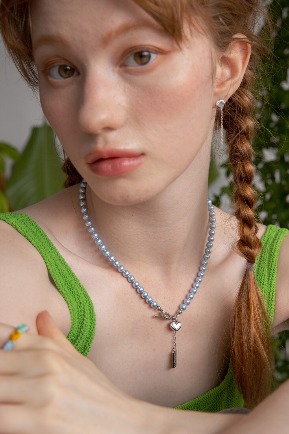 Skyblue pearl with heart pendant necklace