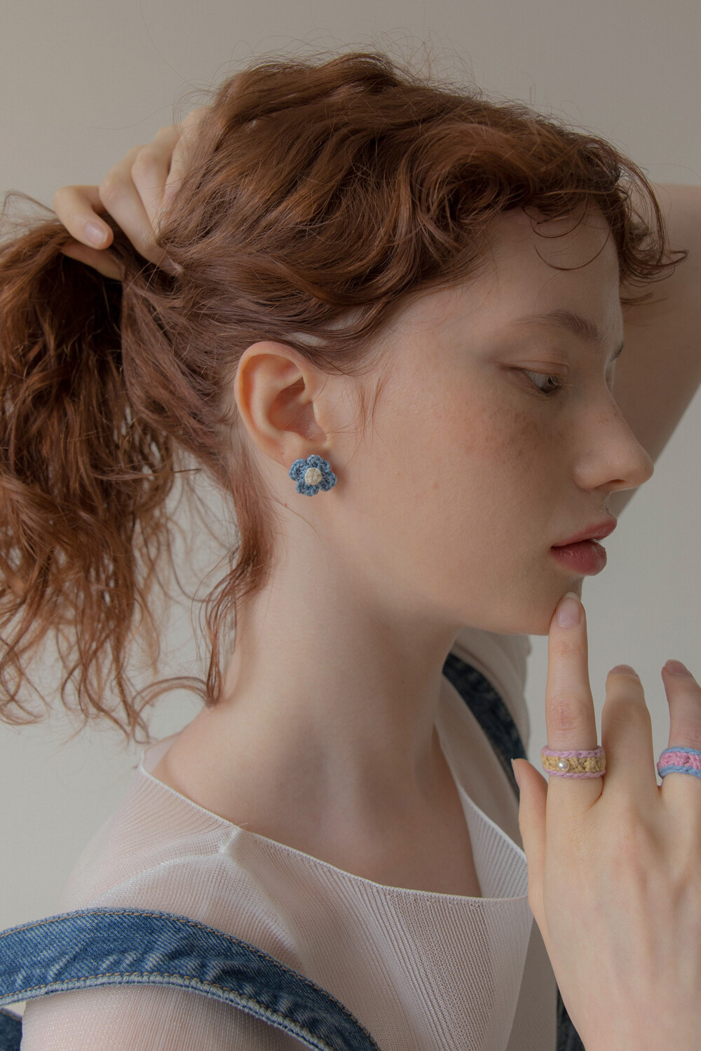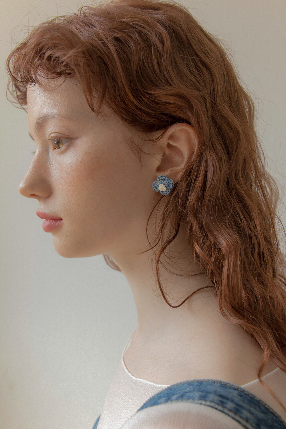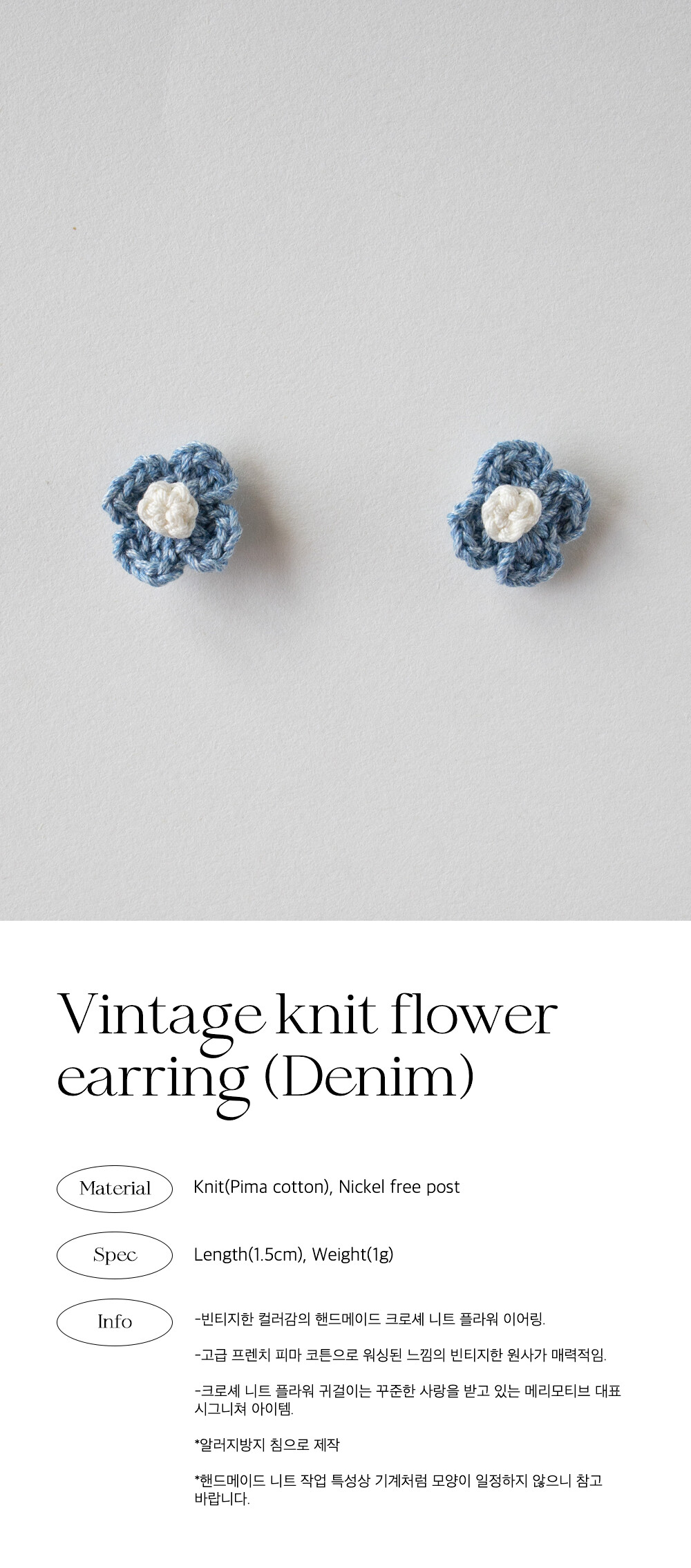 Vintage knit flower earring (Denim)