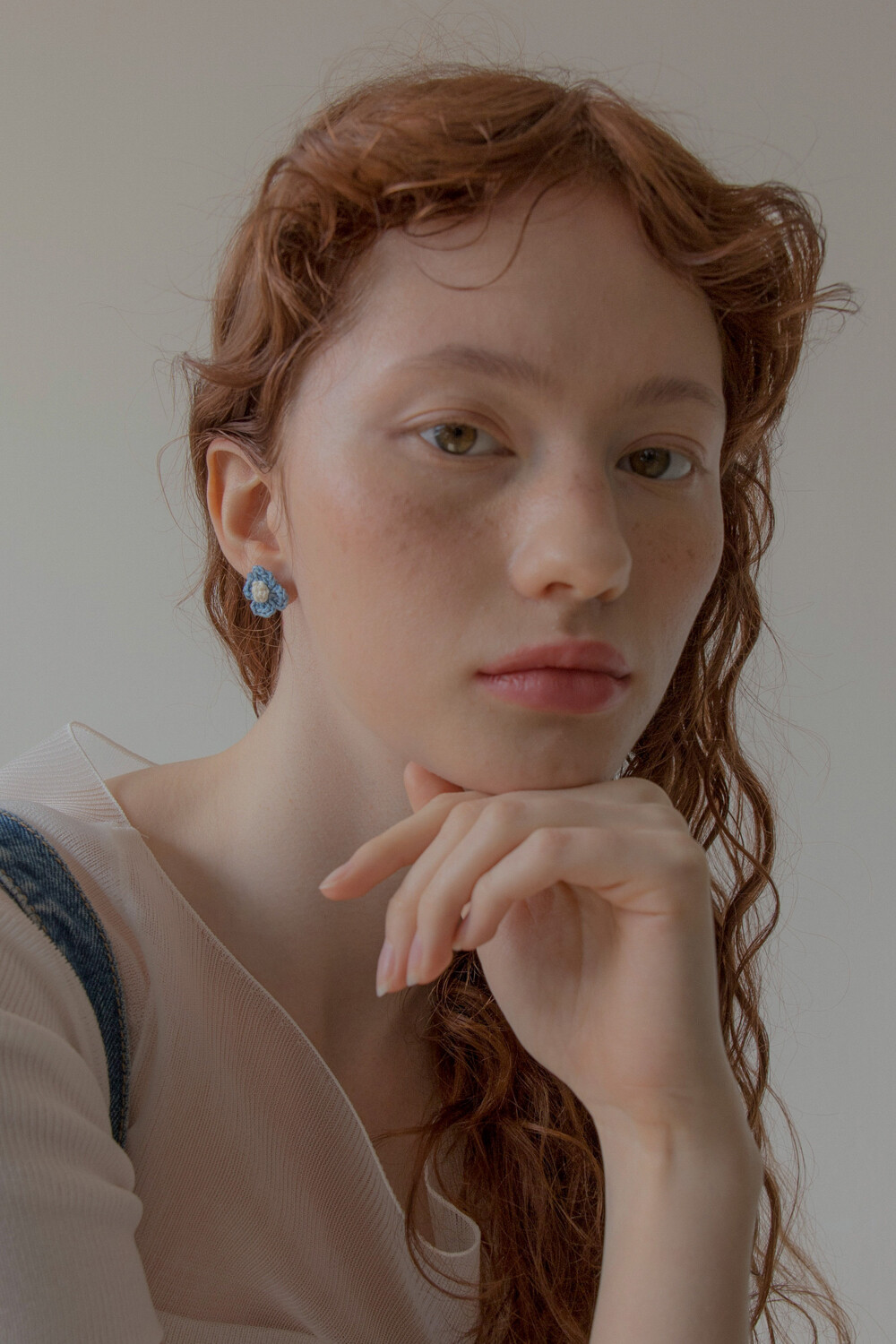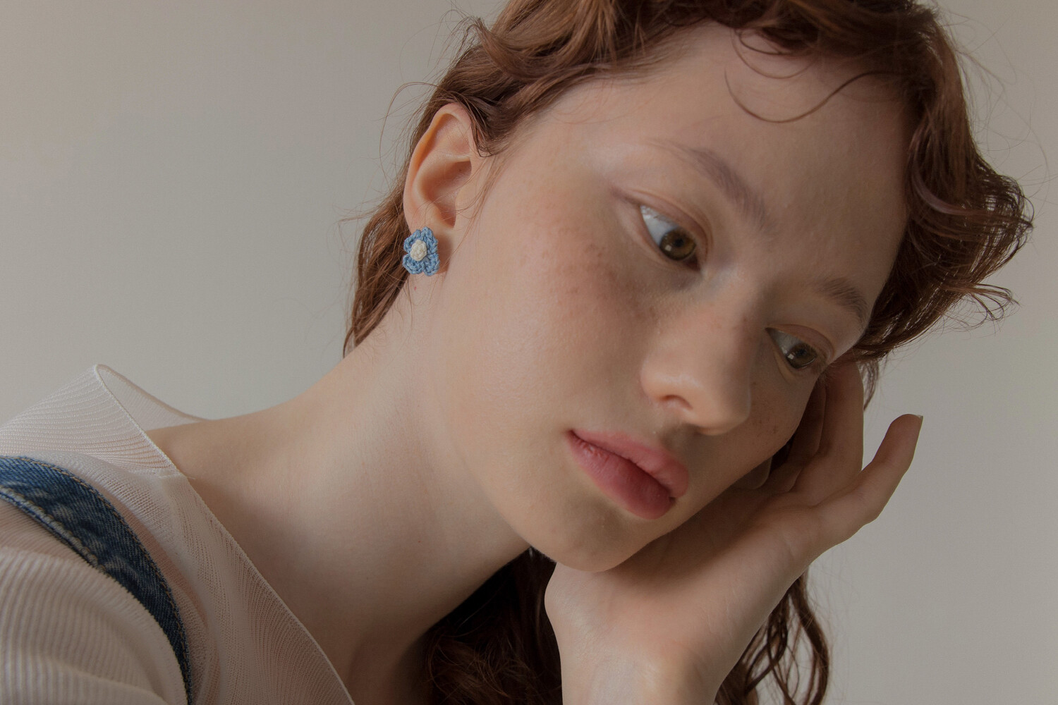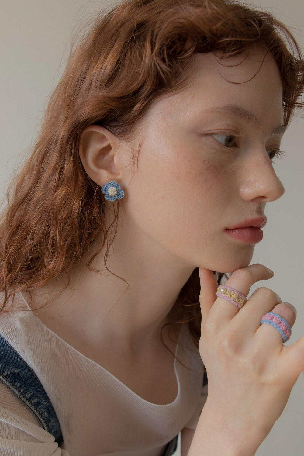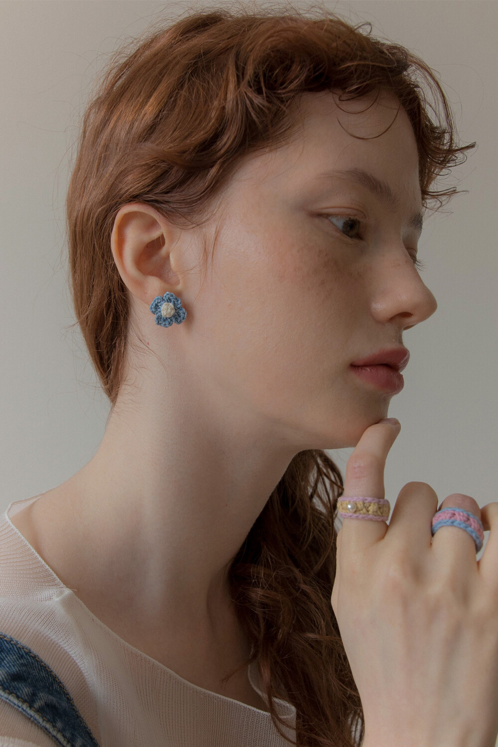 Vintage knit flower earring (Denim)