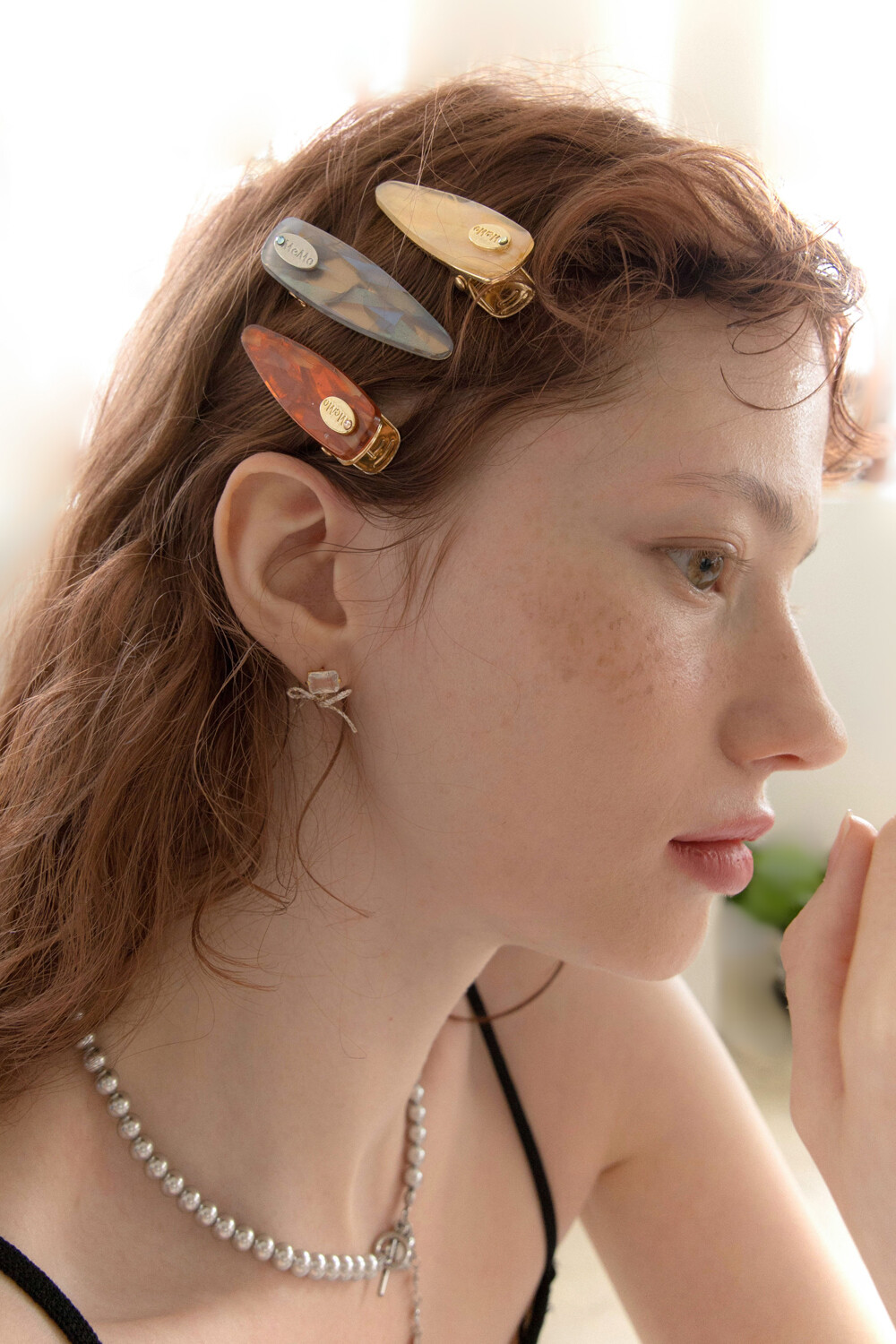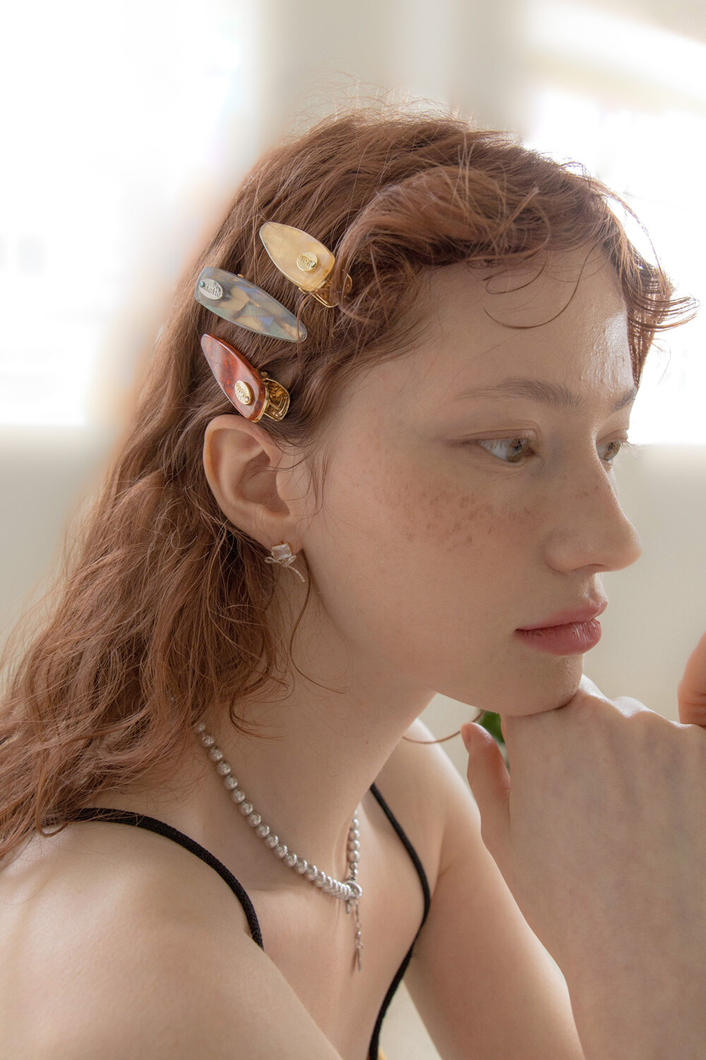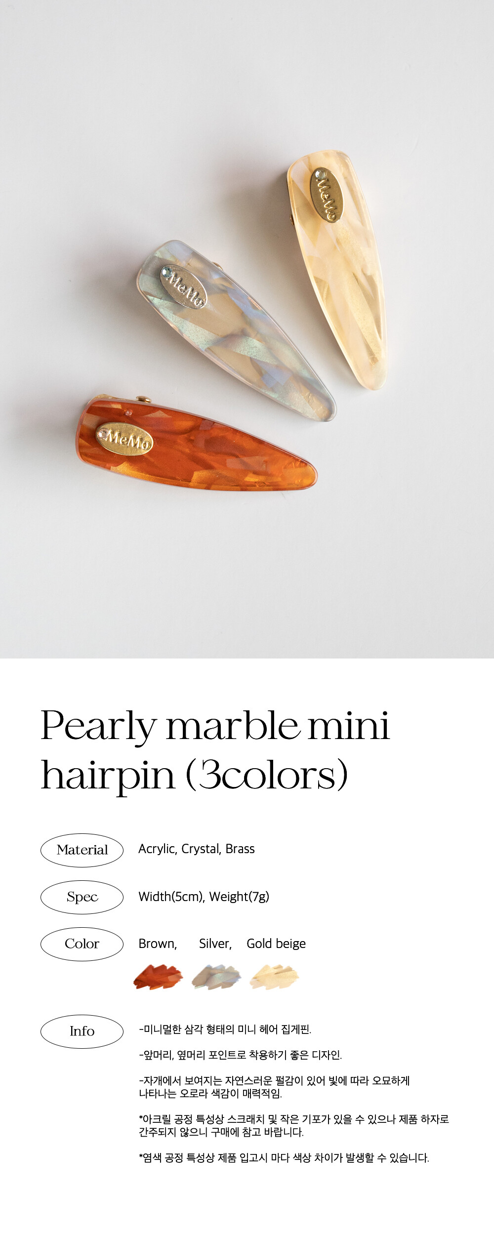 Pearly marble mini hairpin (3colors)