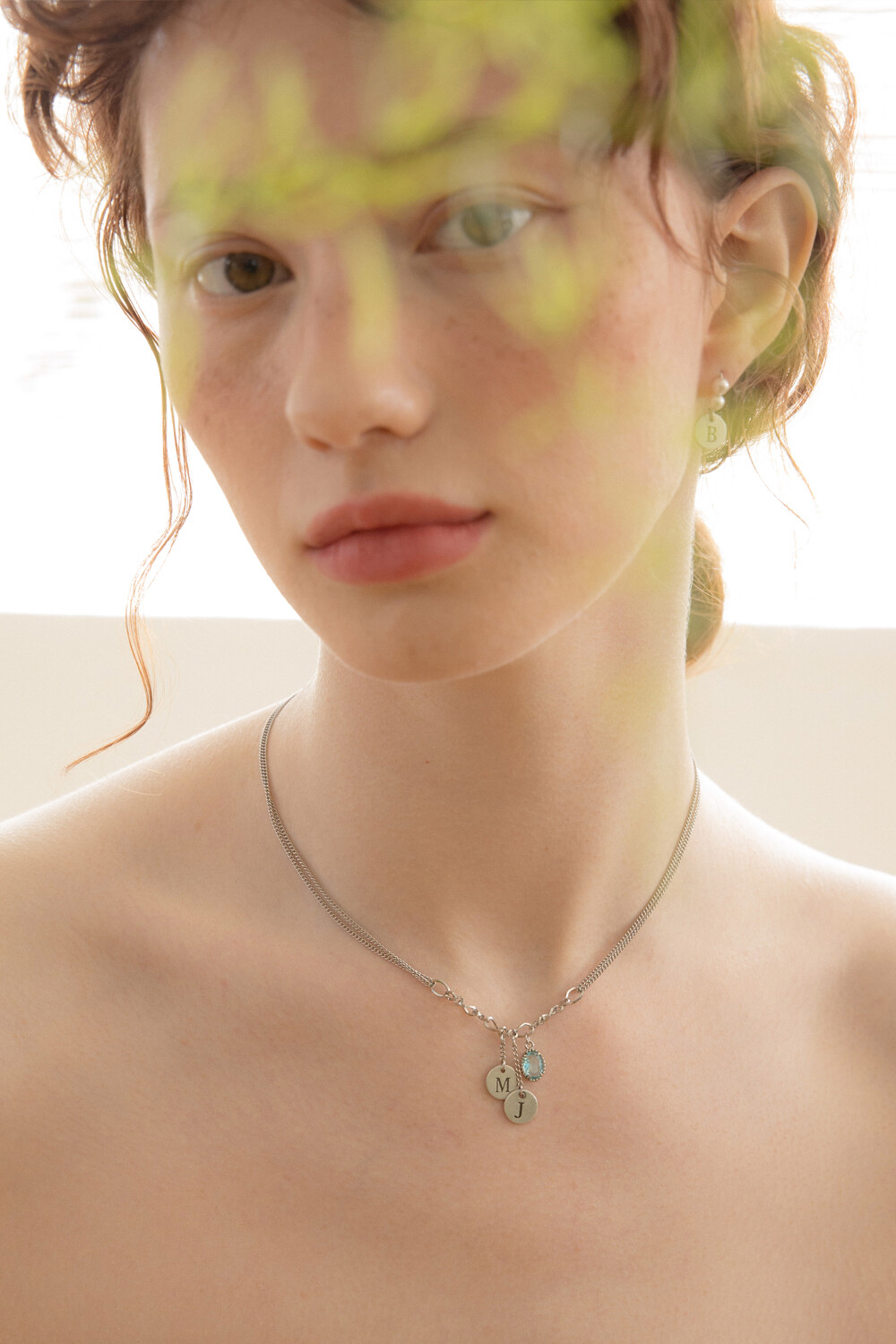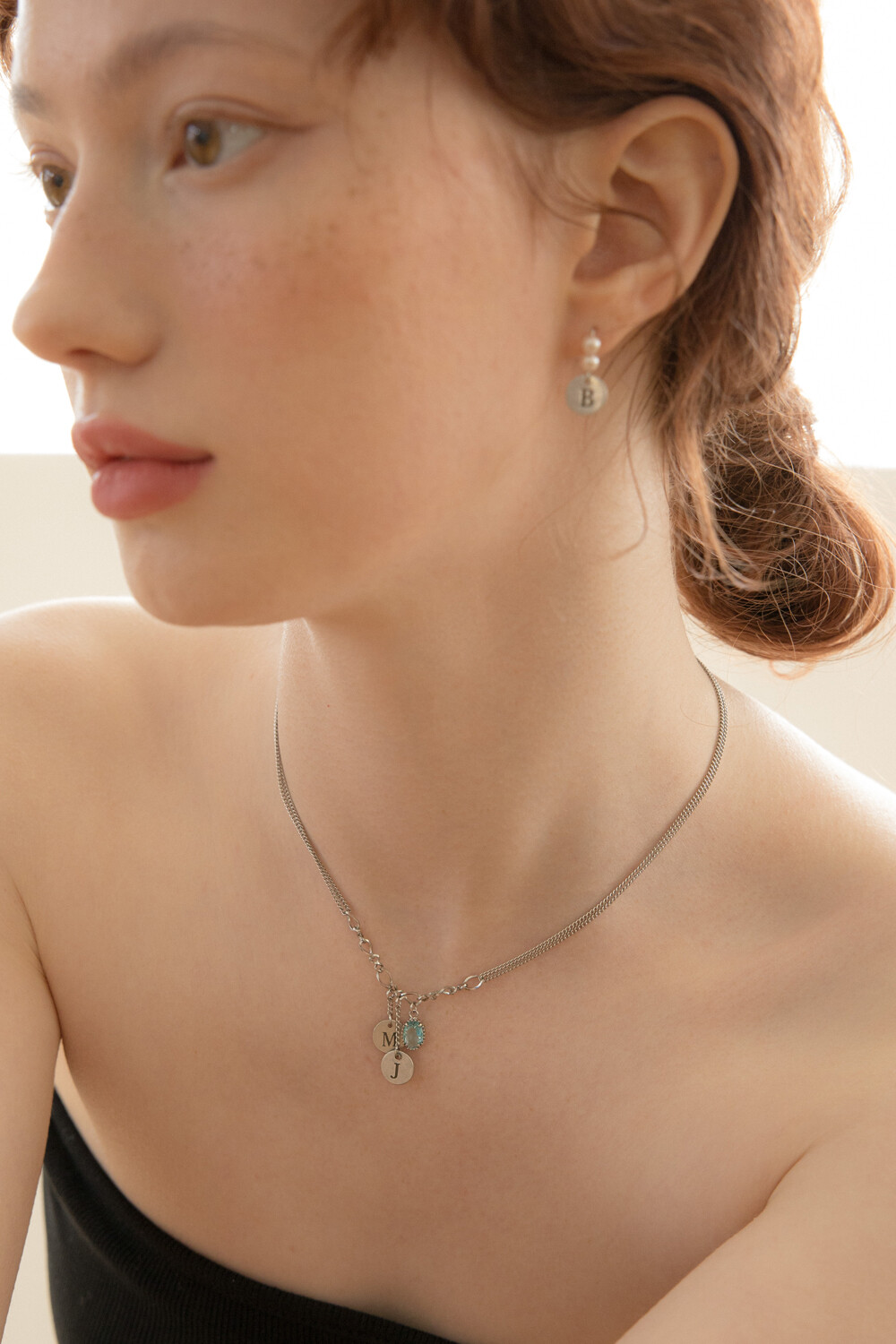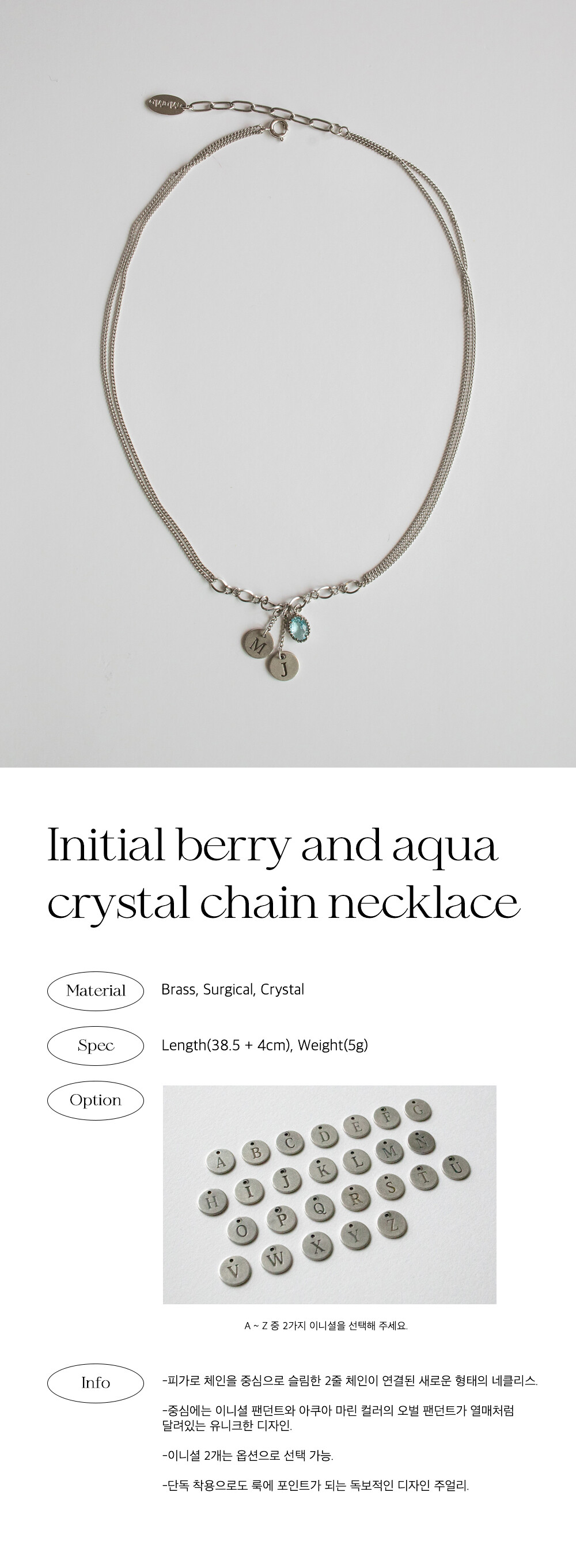 Initial berry and aqua crystal chain necklace