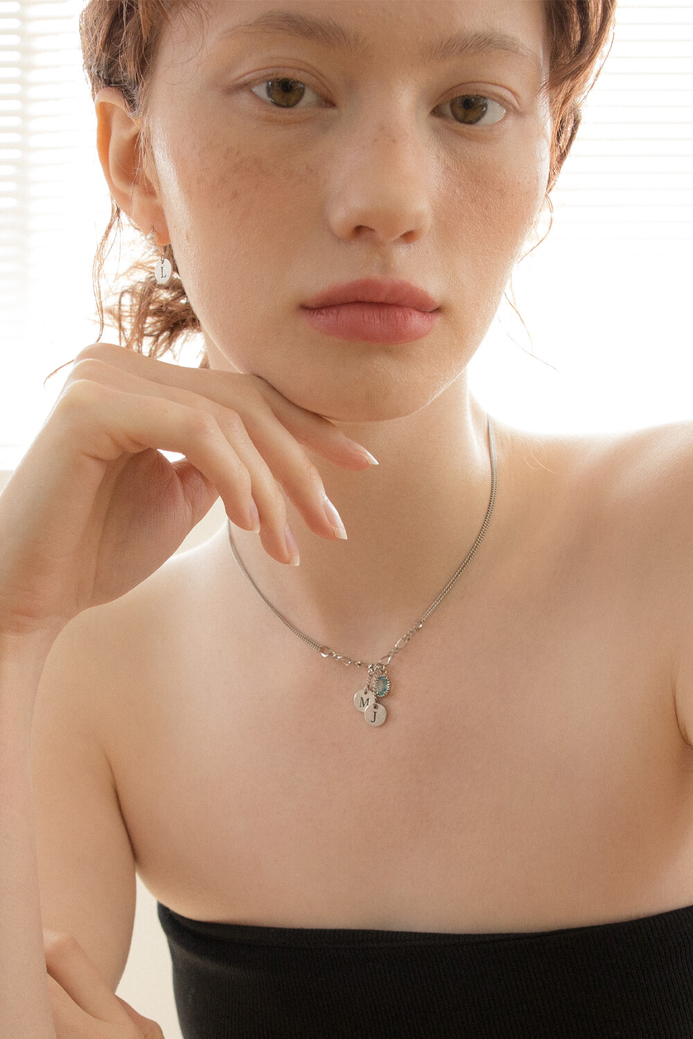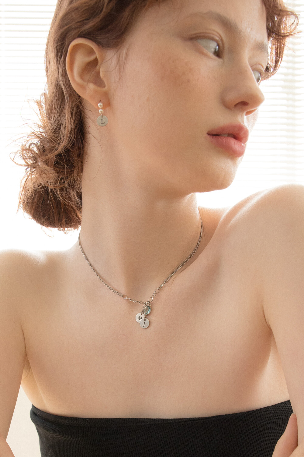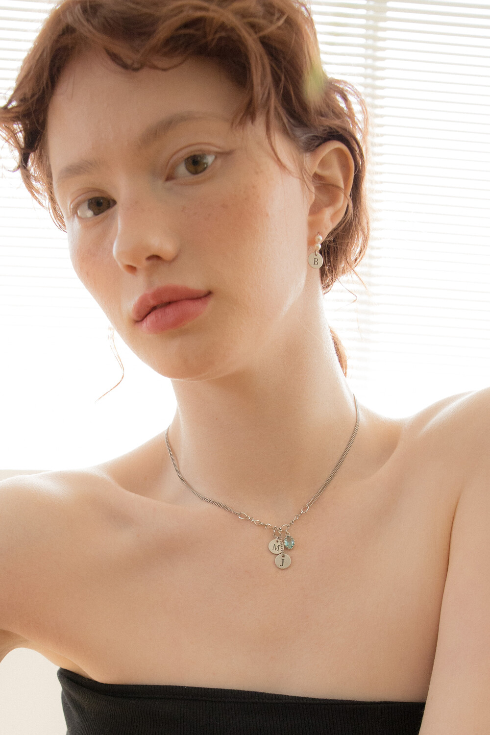 Initial berry and aqua crystal chain necklace