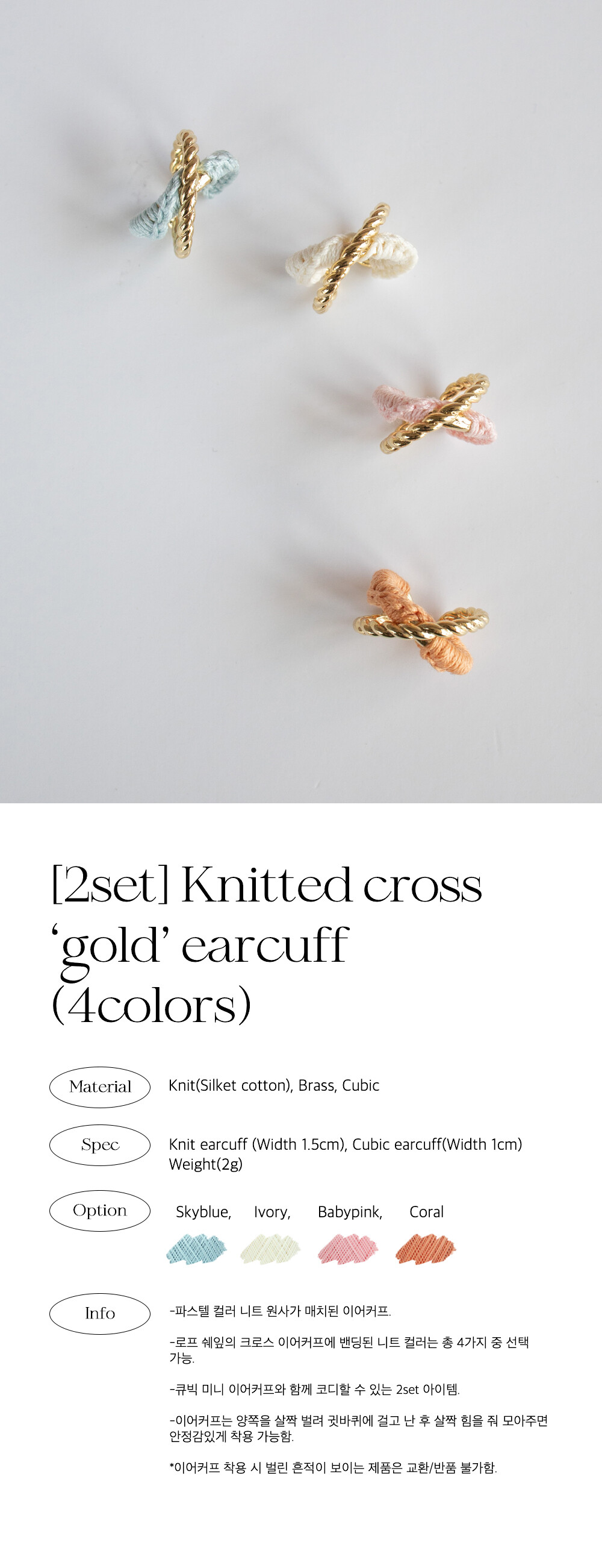 [2set] Knitted cross 'gold' earcuff (4colors)