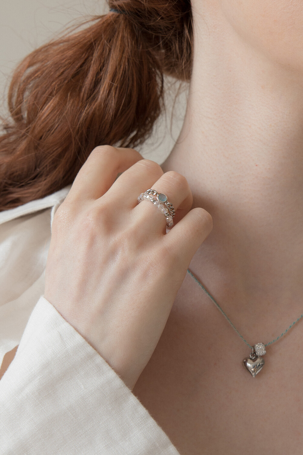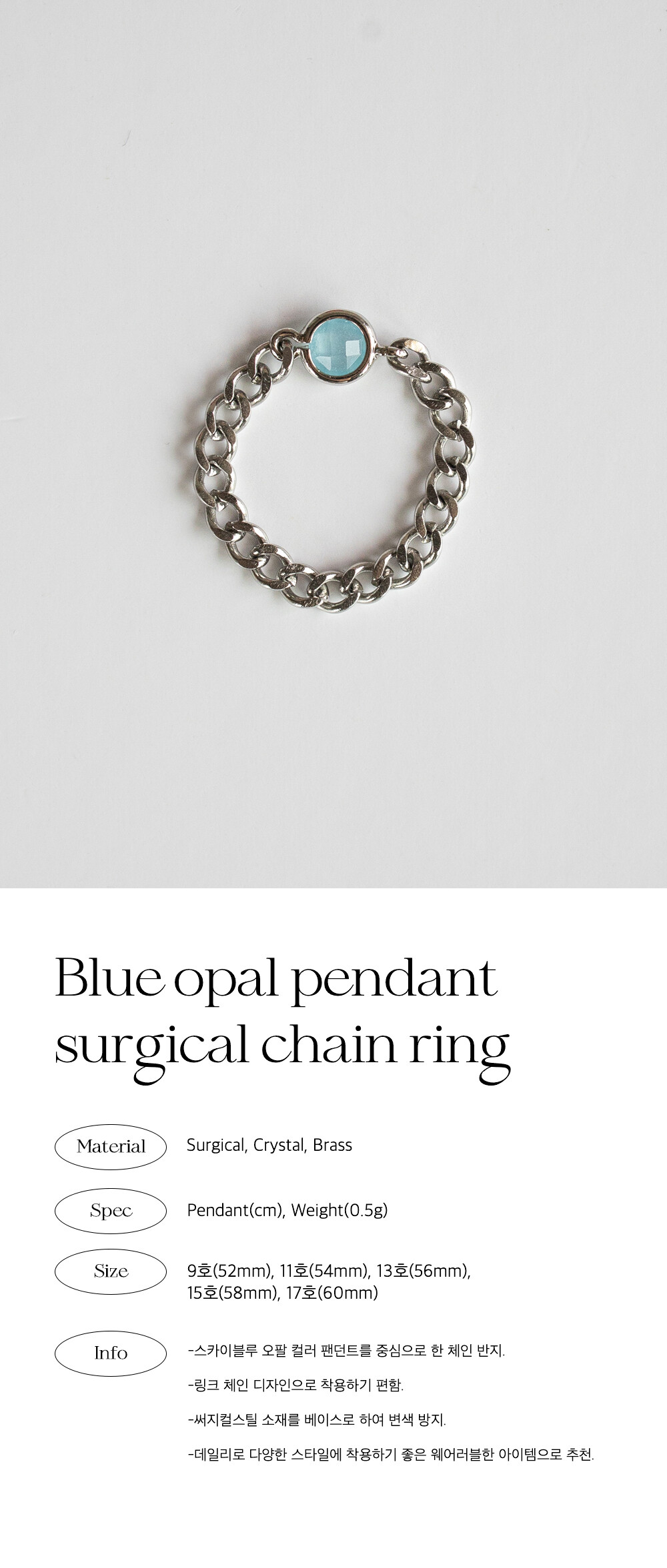 Blue opal pendant surgical chain ring