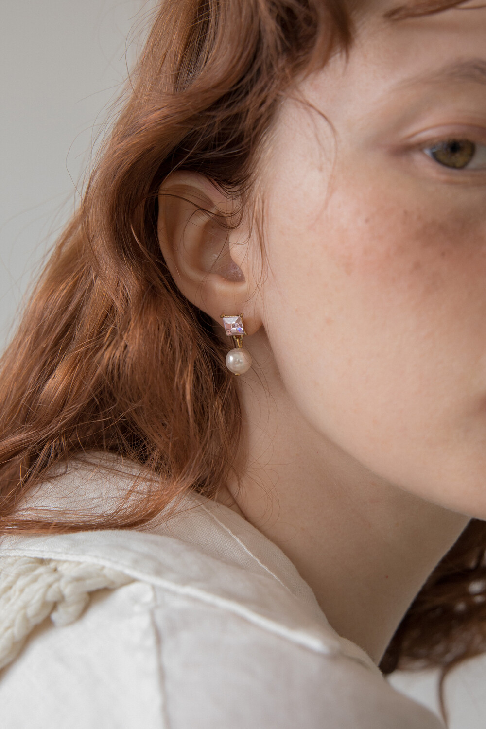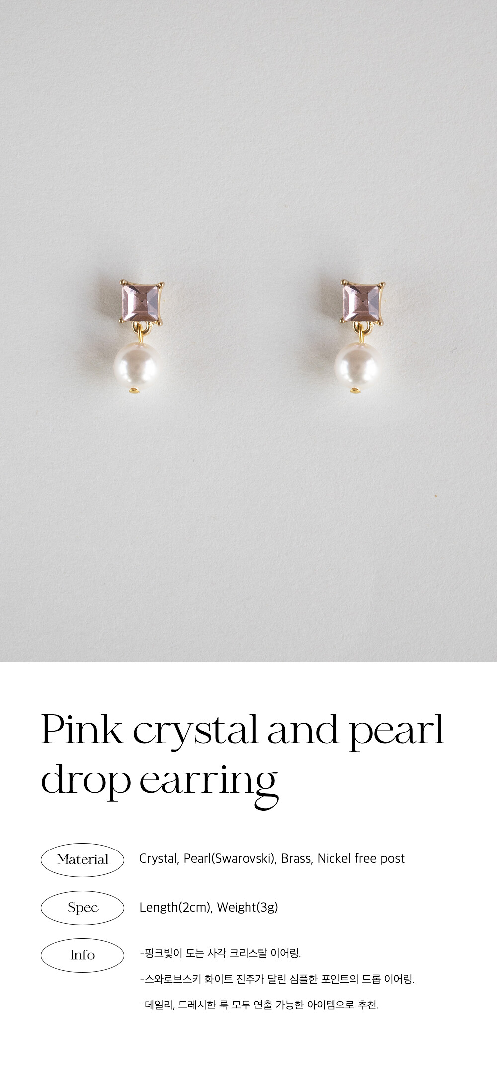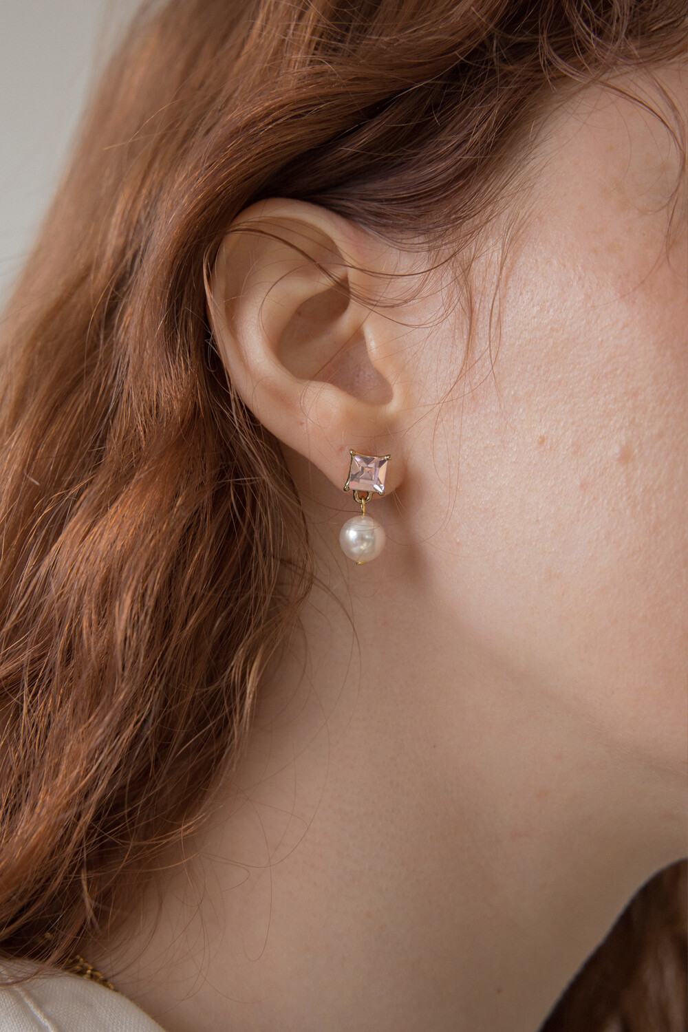 Pink crystal and pearl drop earring