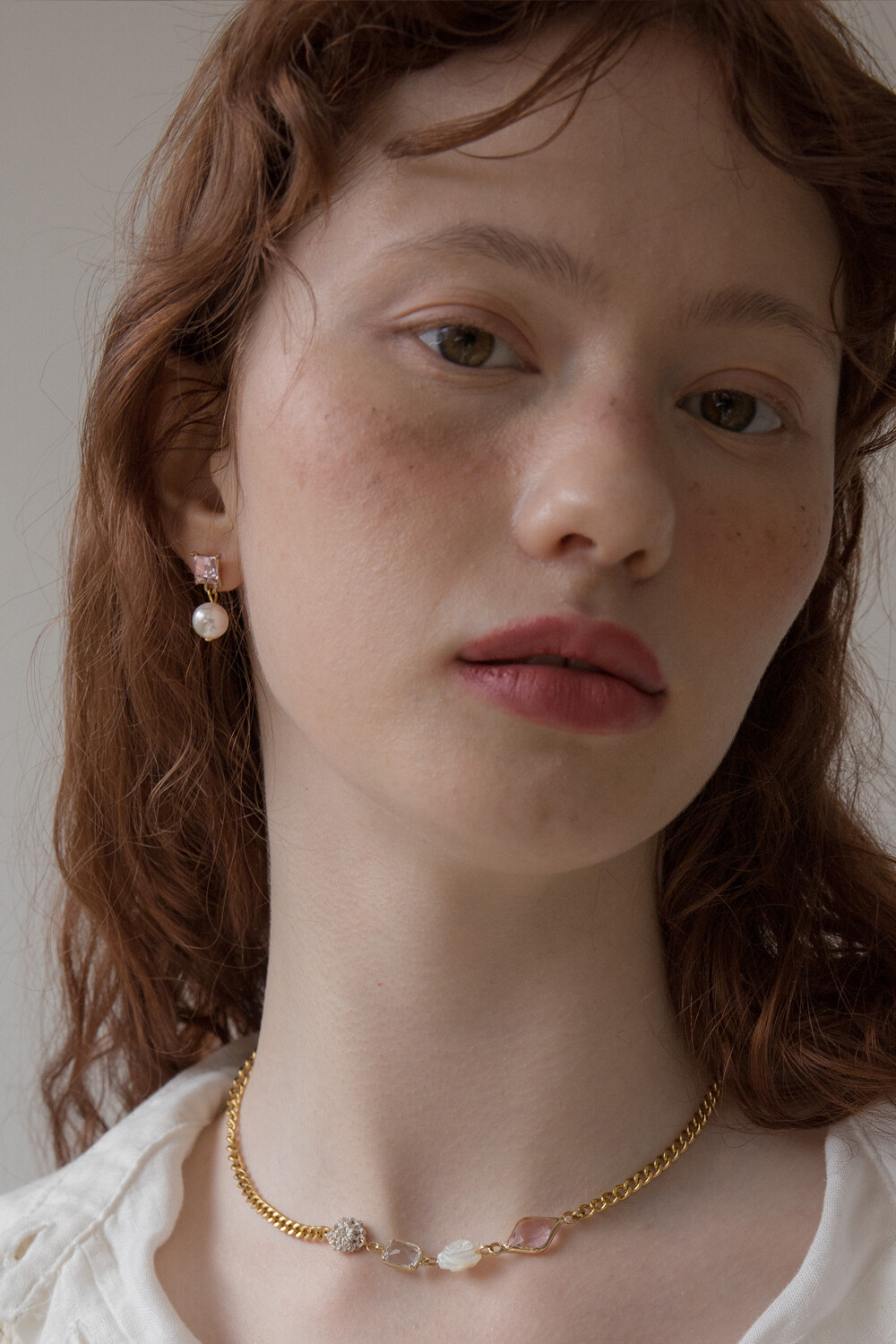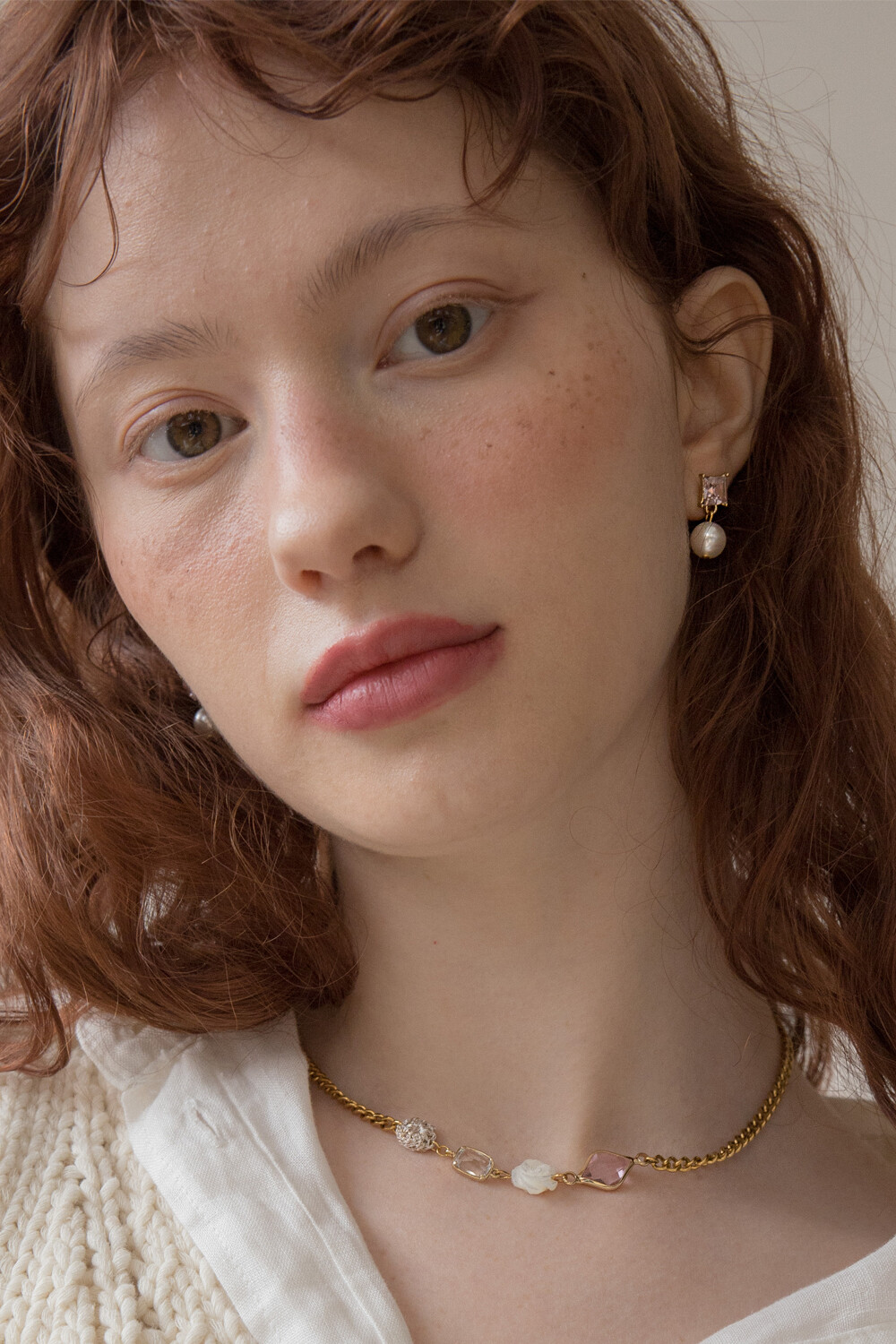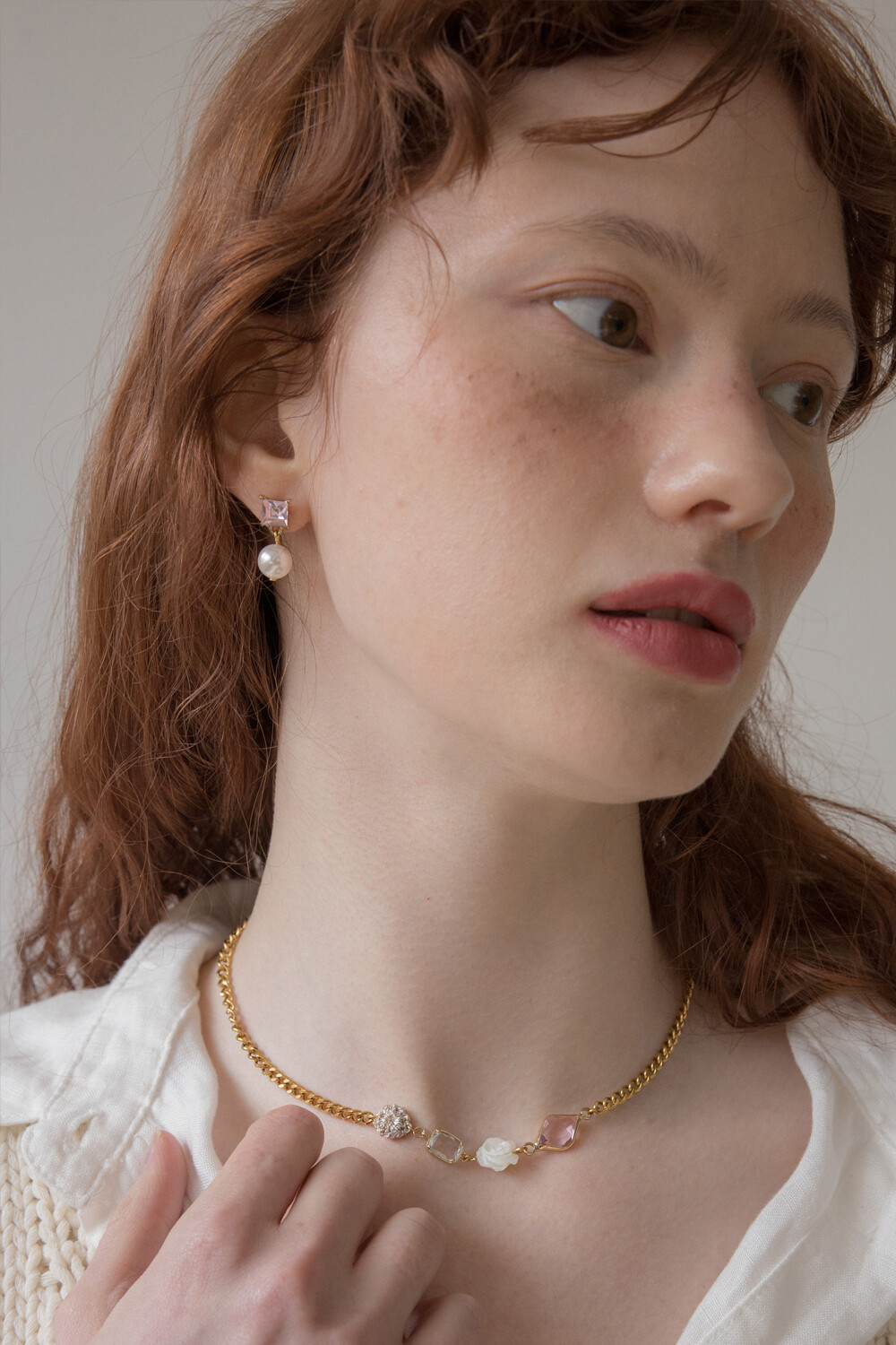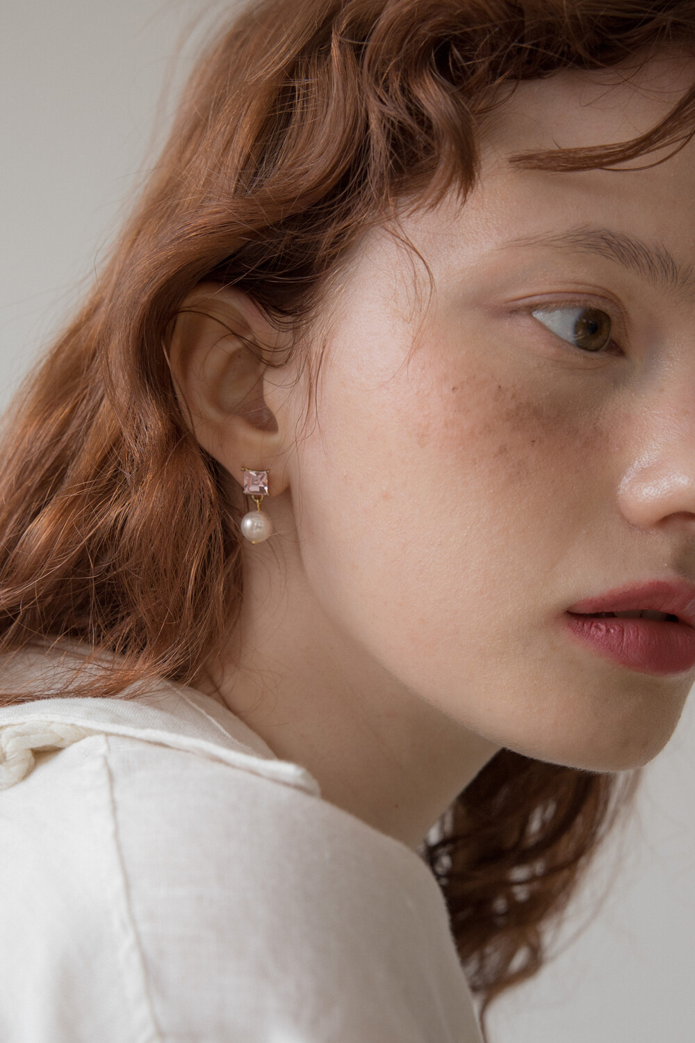 Pink crystal and pearl drop earring