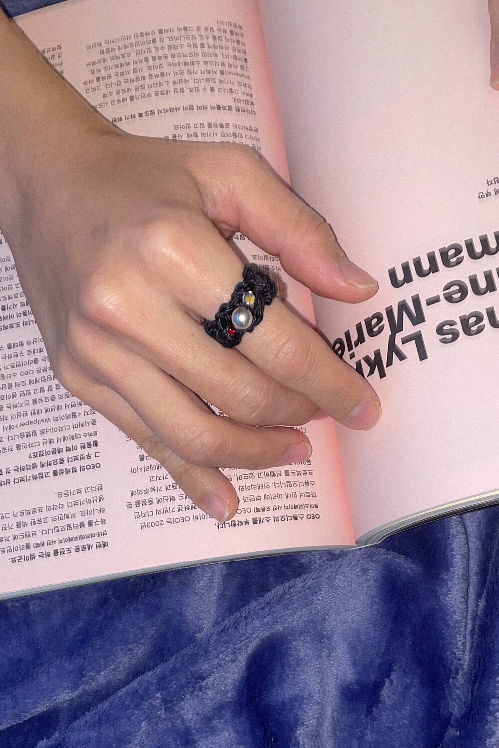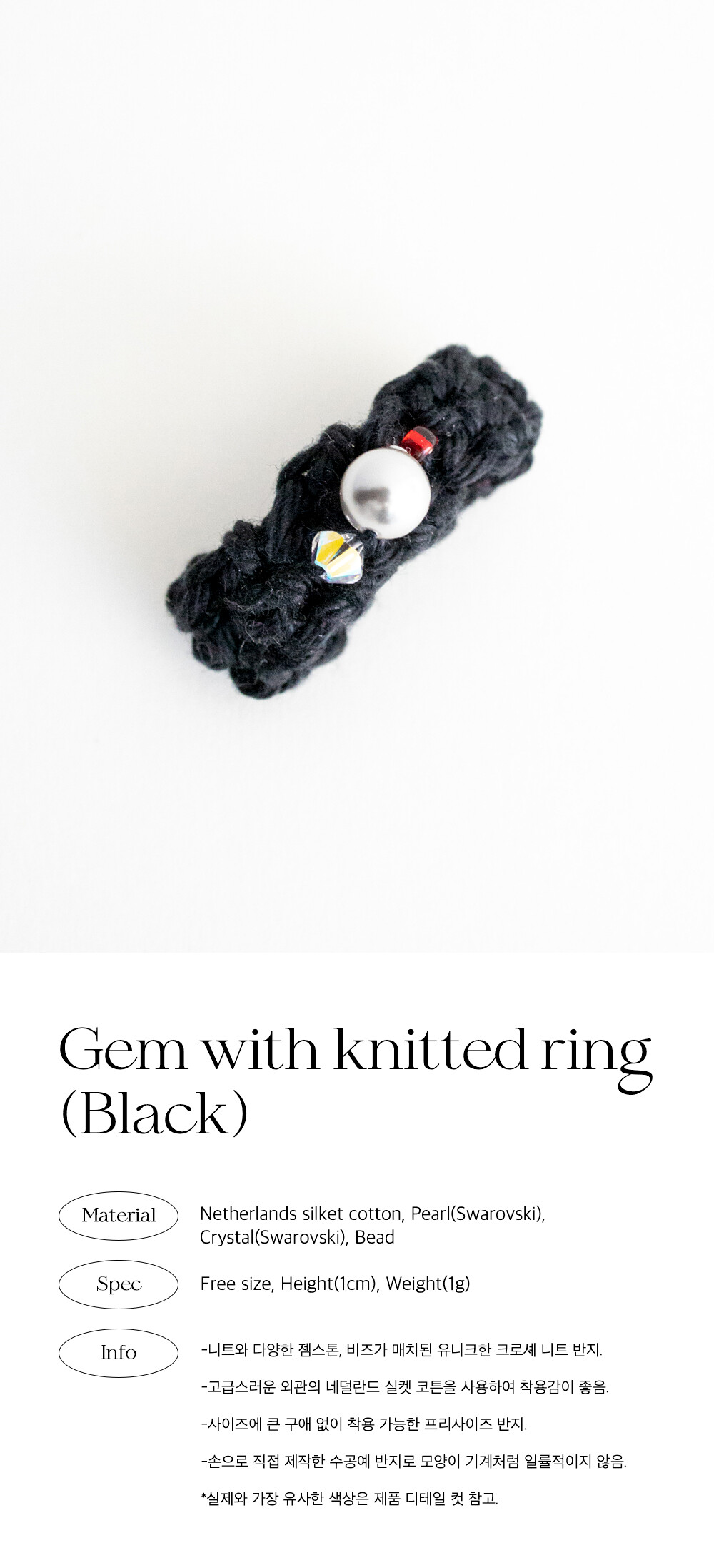 Gem with knitted ring (Black)