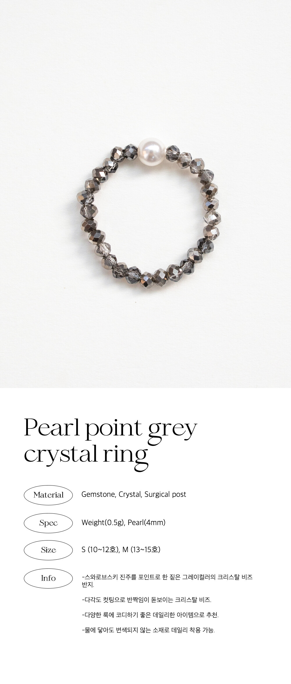 Pearl point grey crystal ring