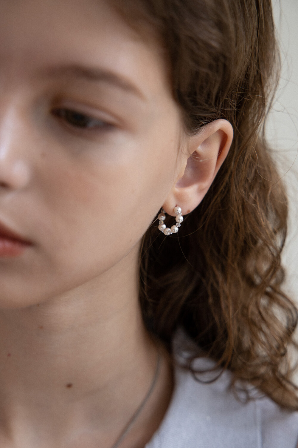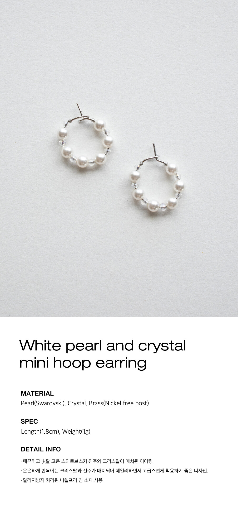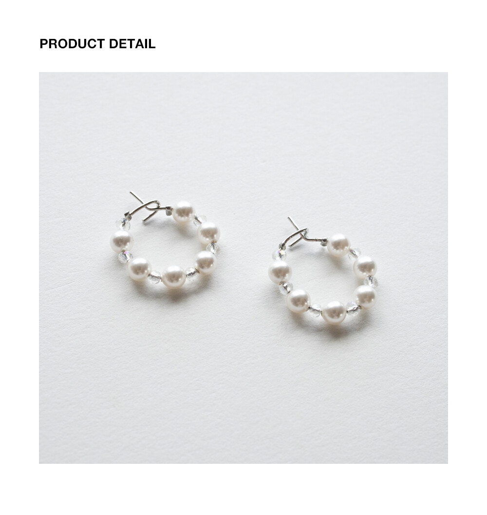 White pearl and crystal mini hoop earring
