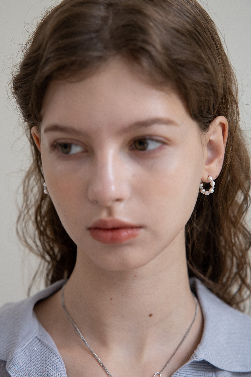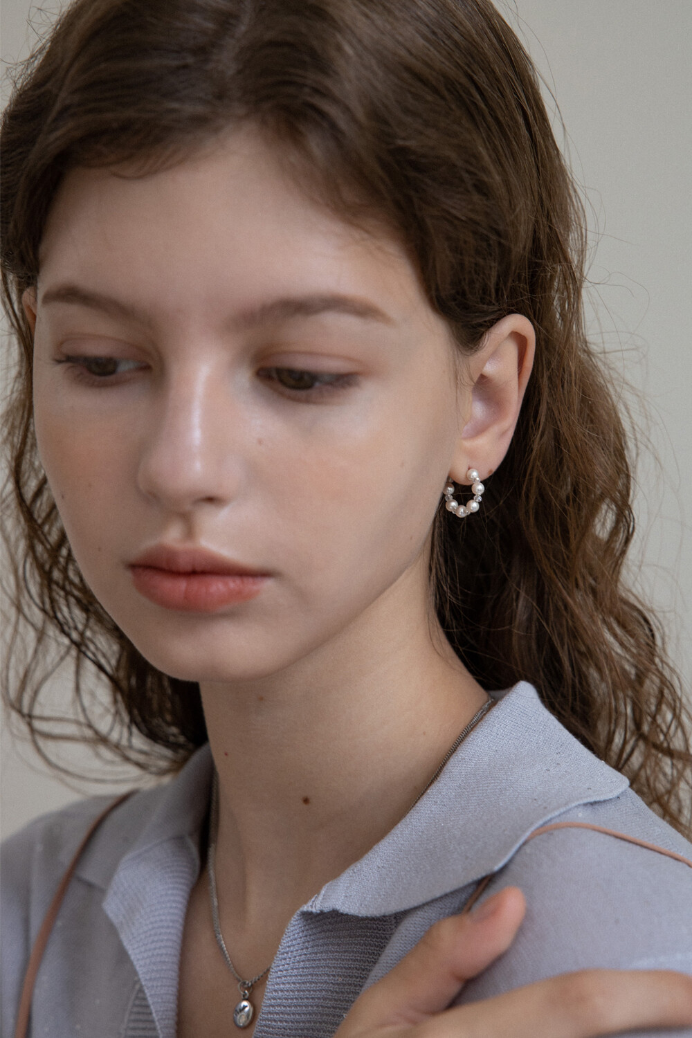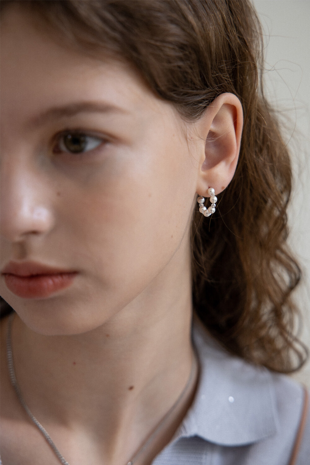 White pearl and crystal mini hoop earring