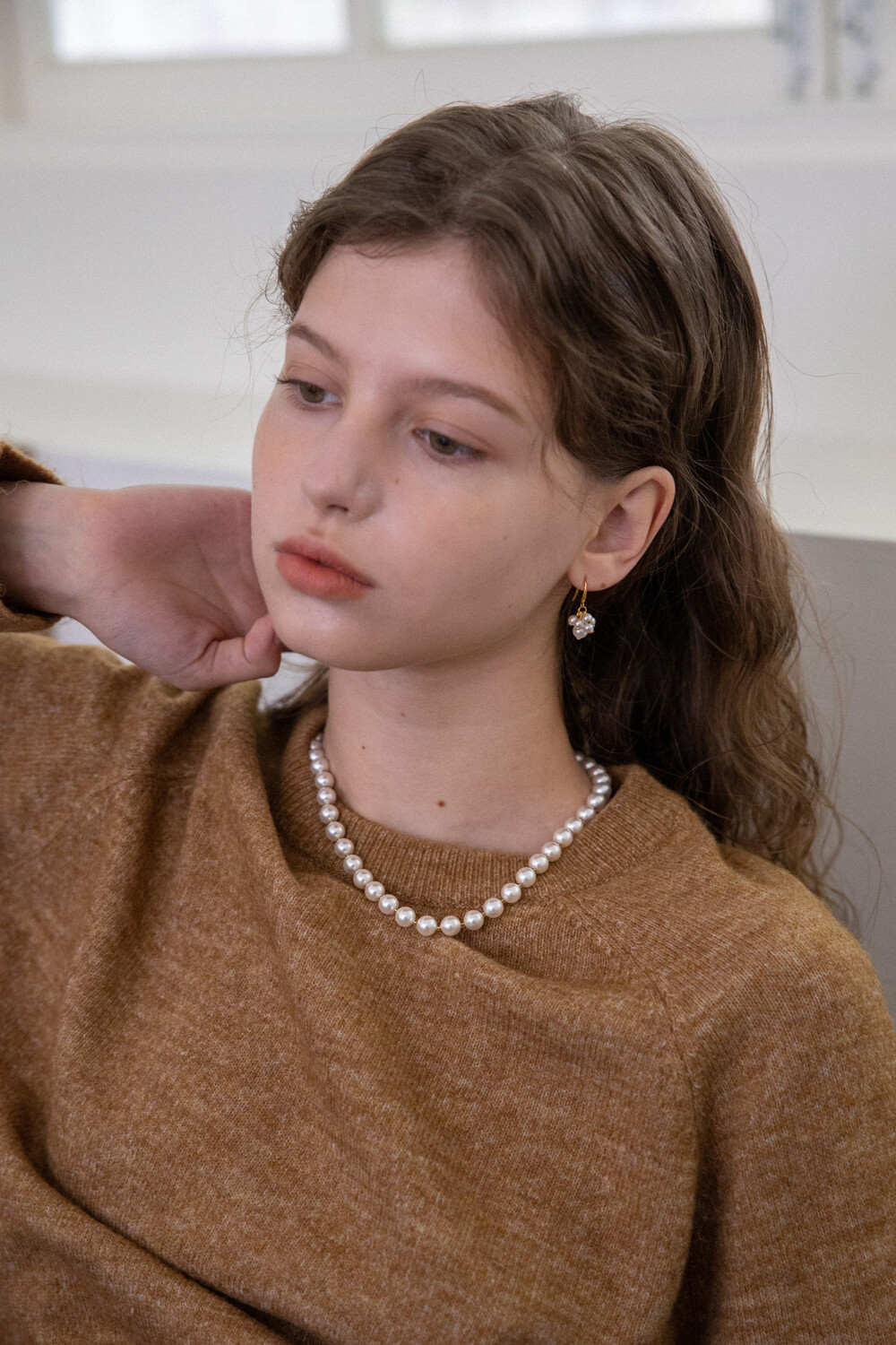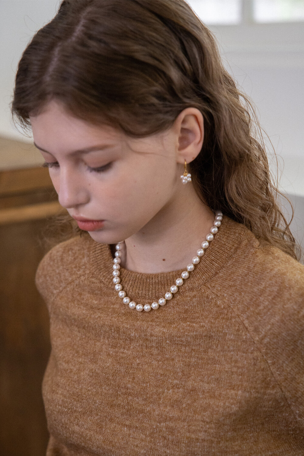 Voluminous white pearl necklace
