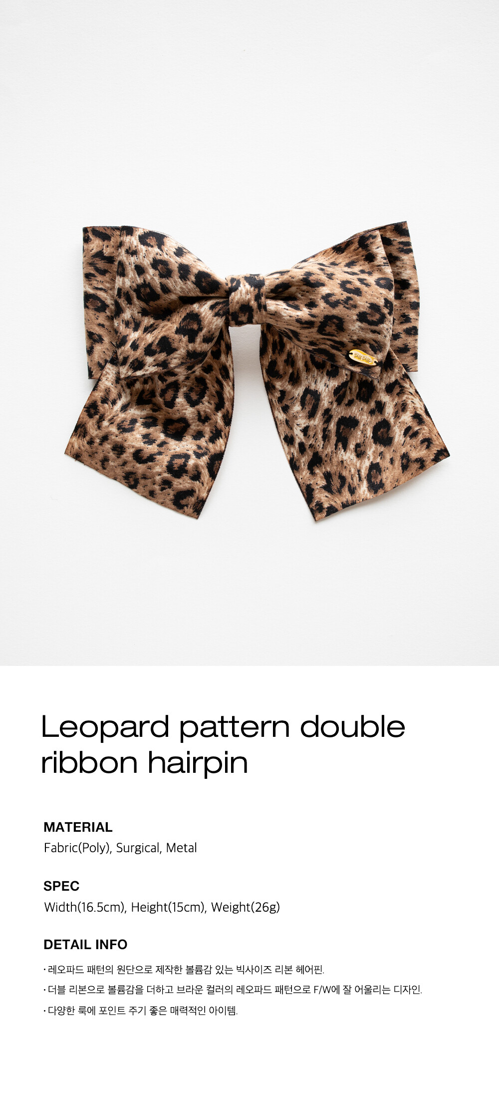 Leopard pattern double ribbon hairpin