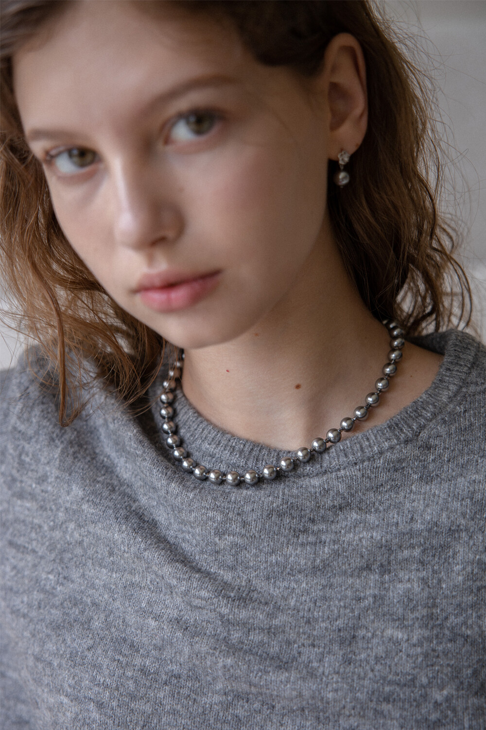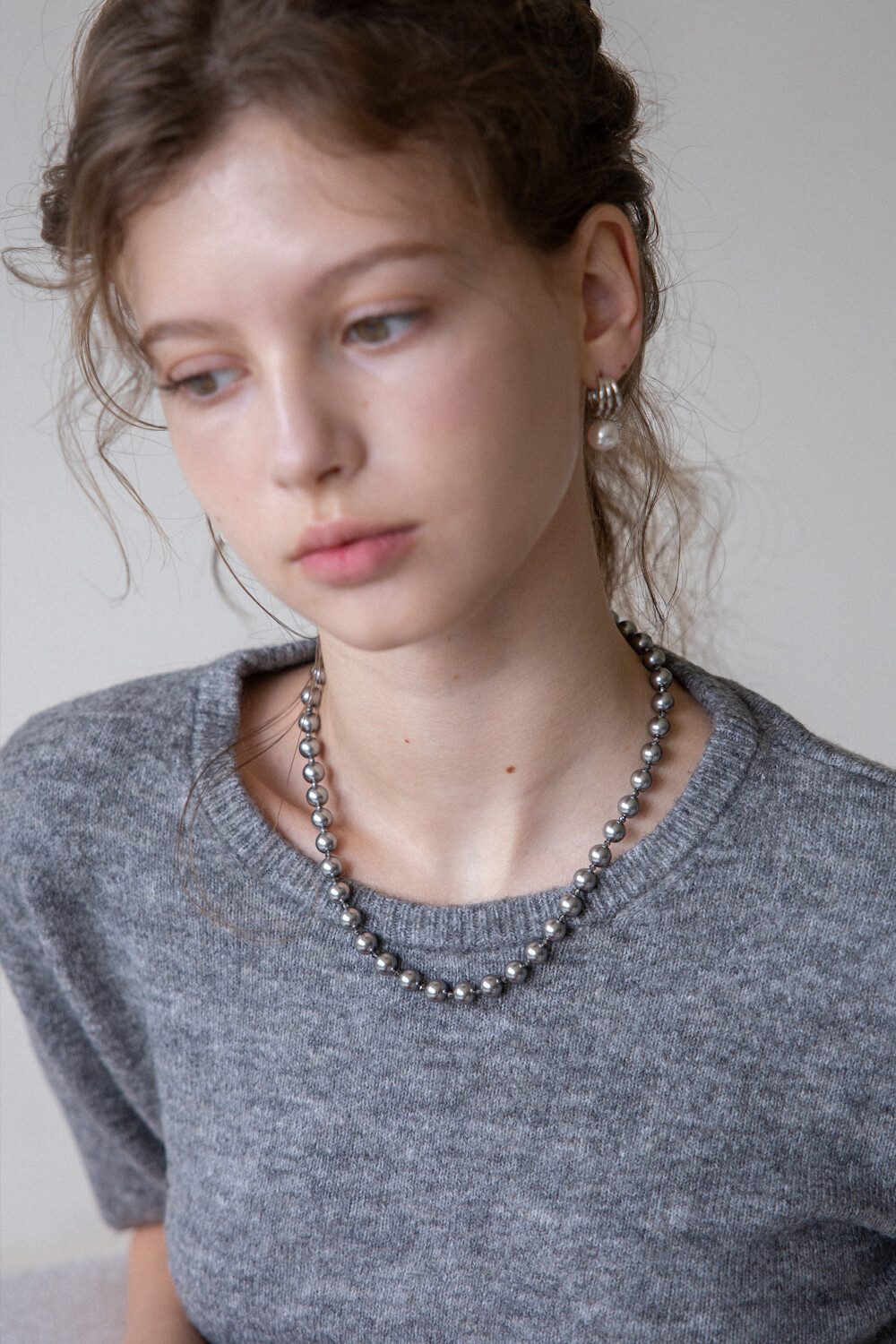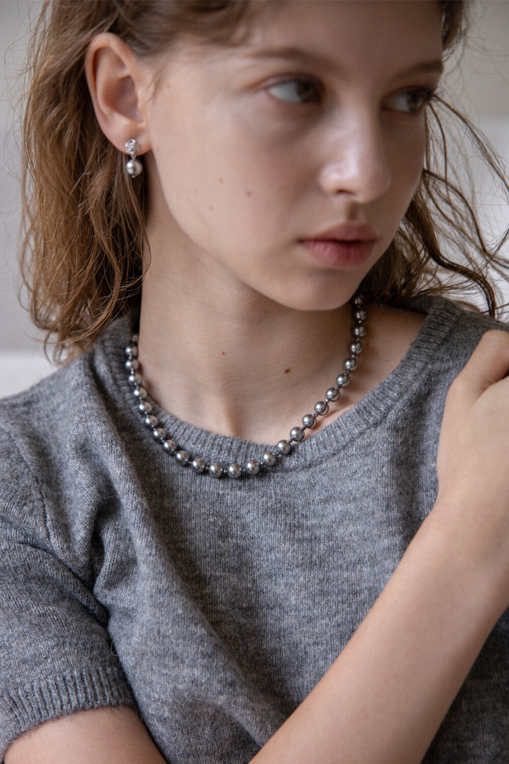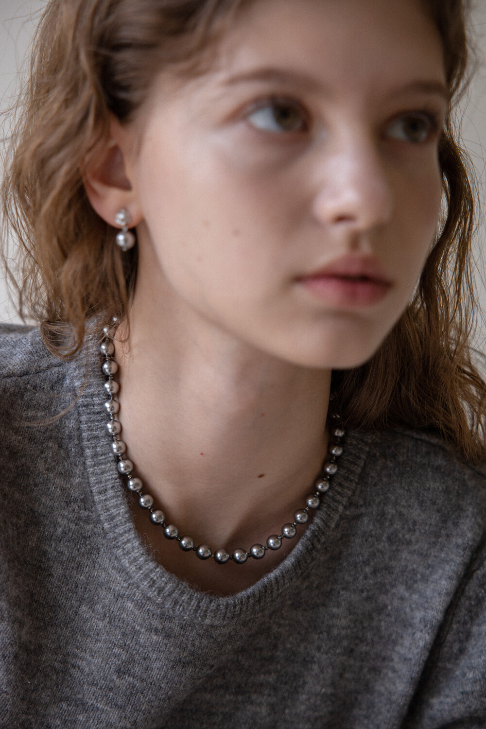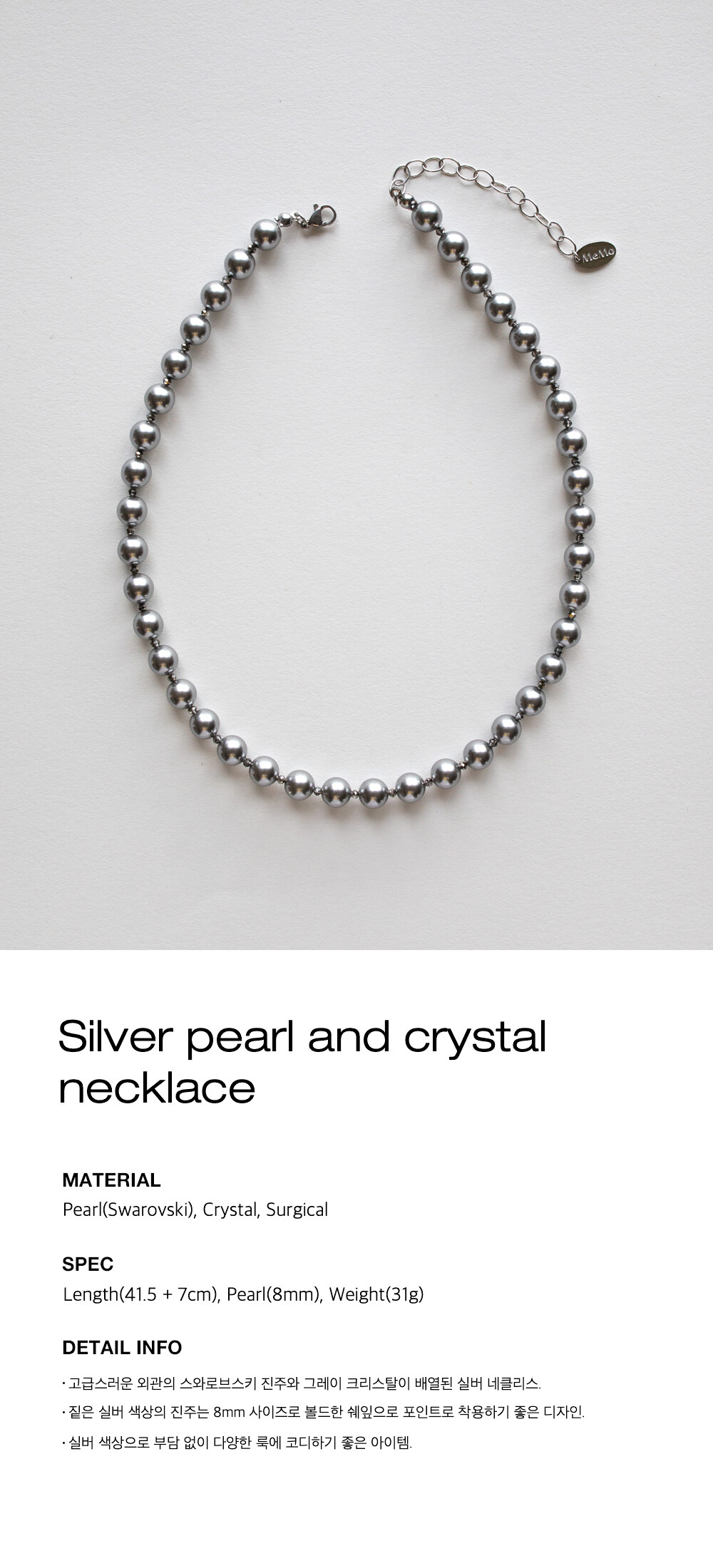 Silver pearl and crystal necklace
