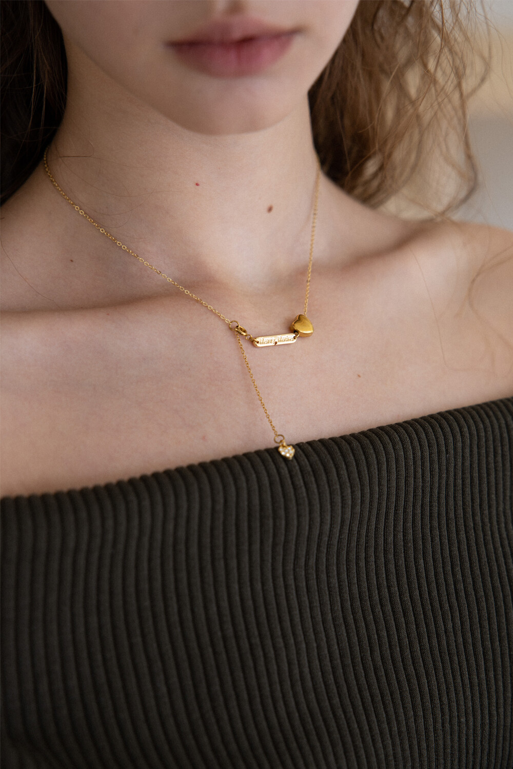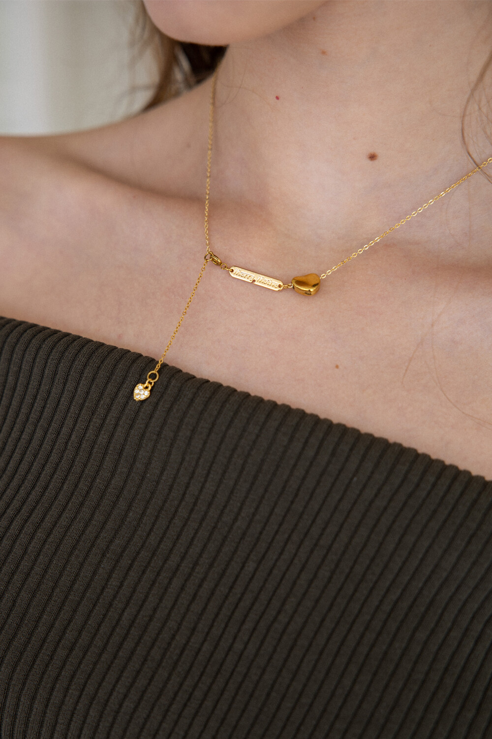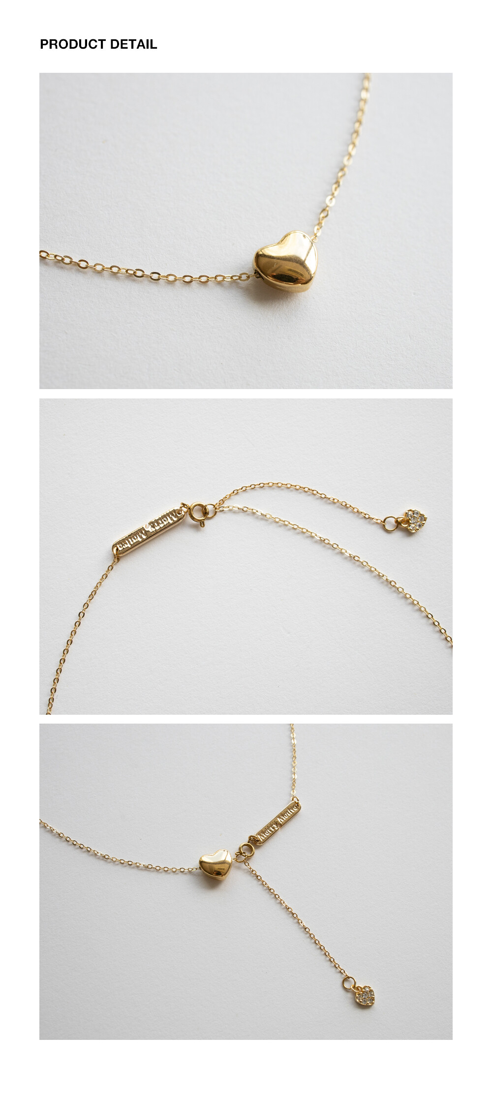 Gold heart point drop chain necklace