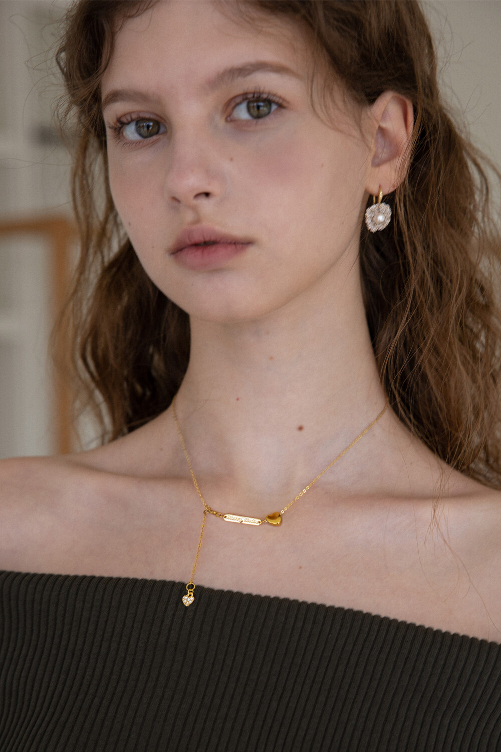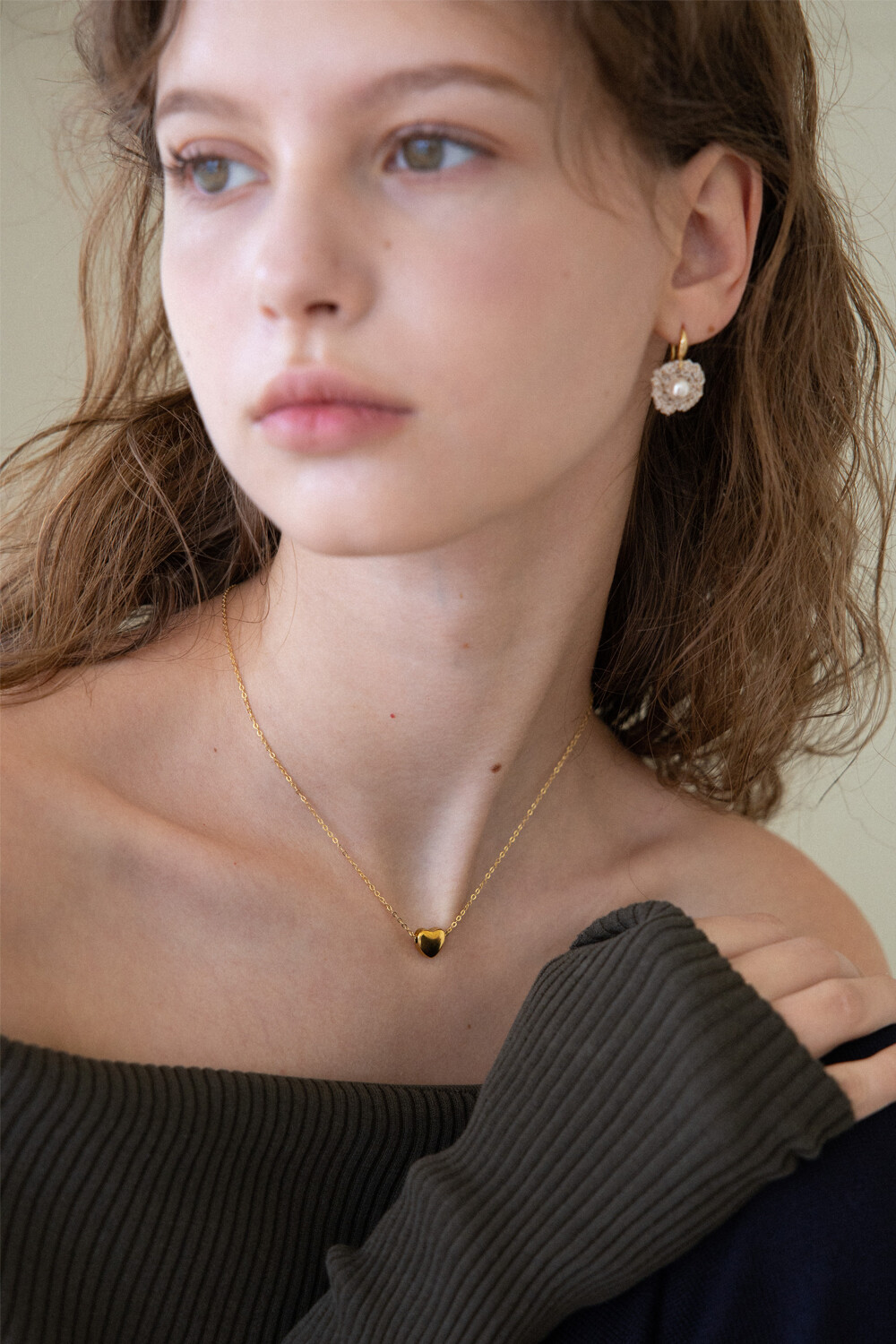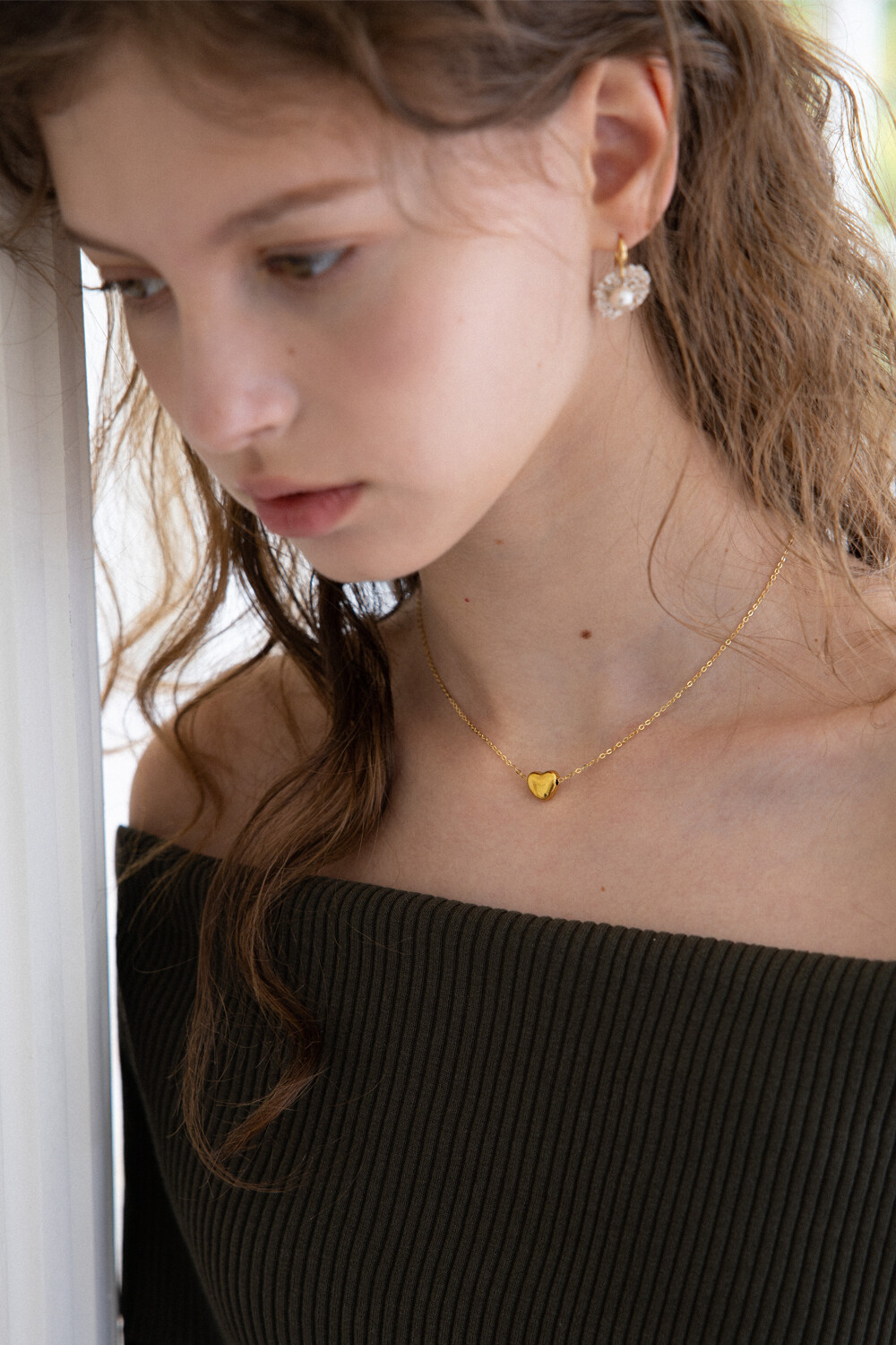 Gold heart point drop chain necklace