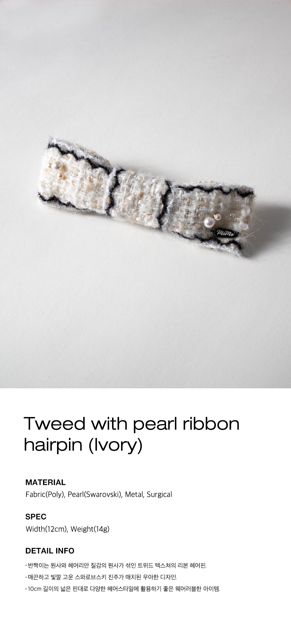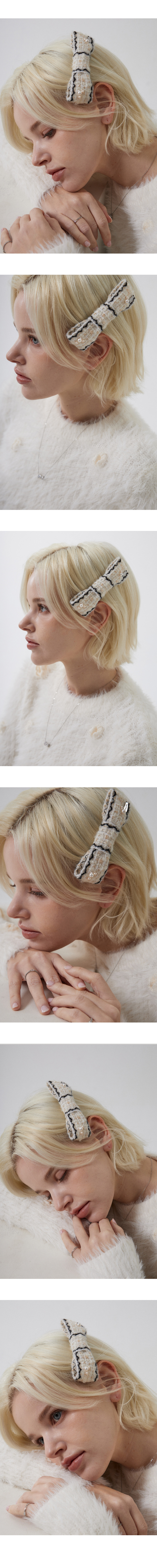 Tweed with pearl ribbon hairpin (Ivory)